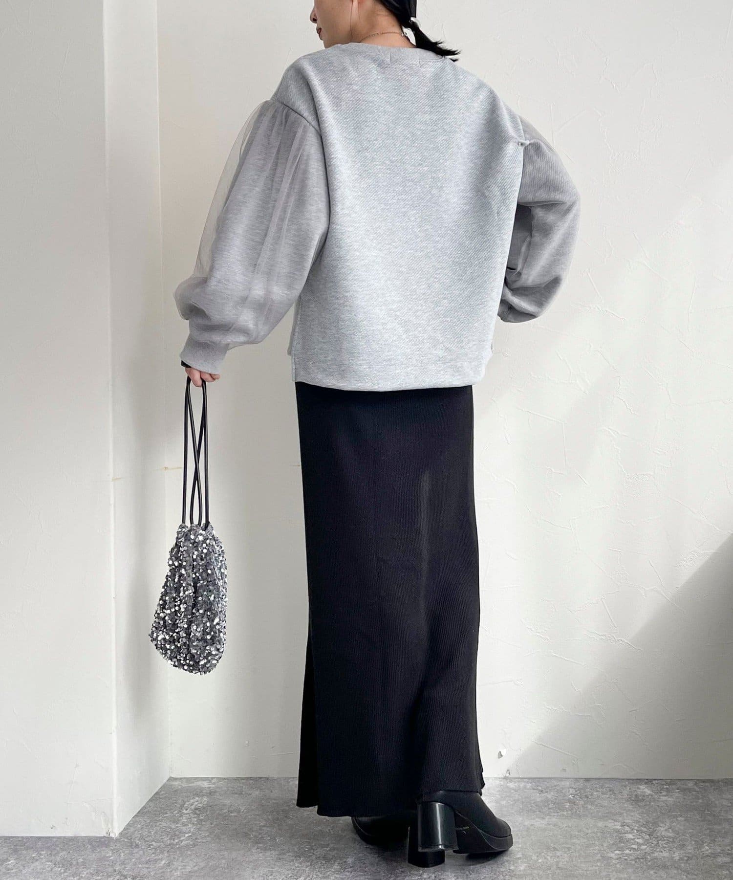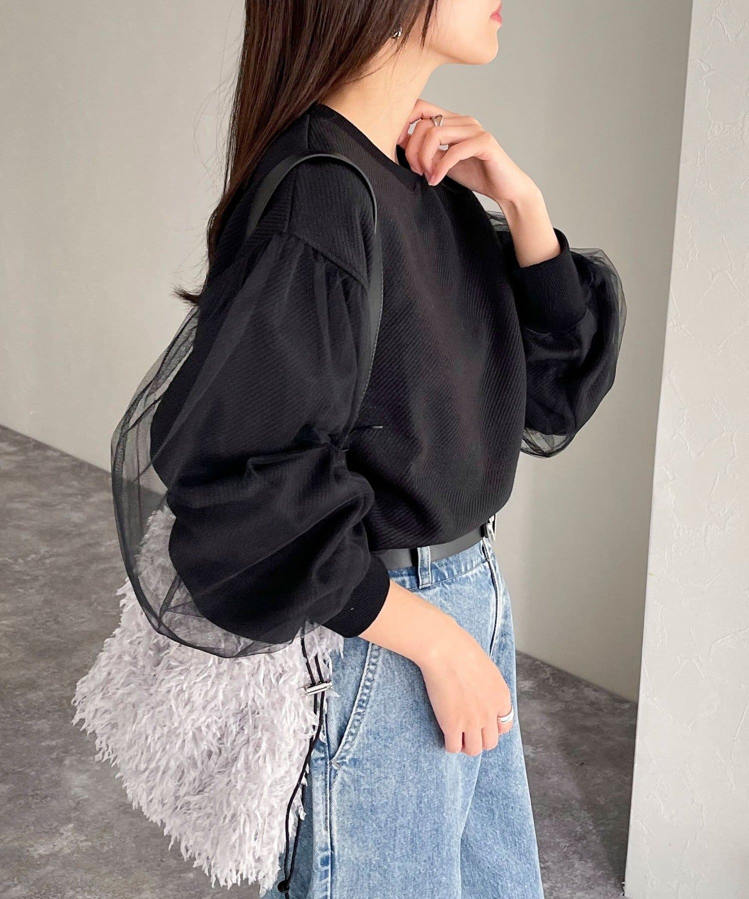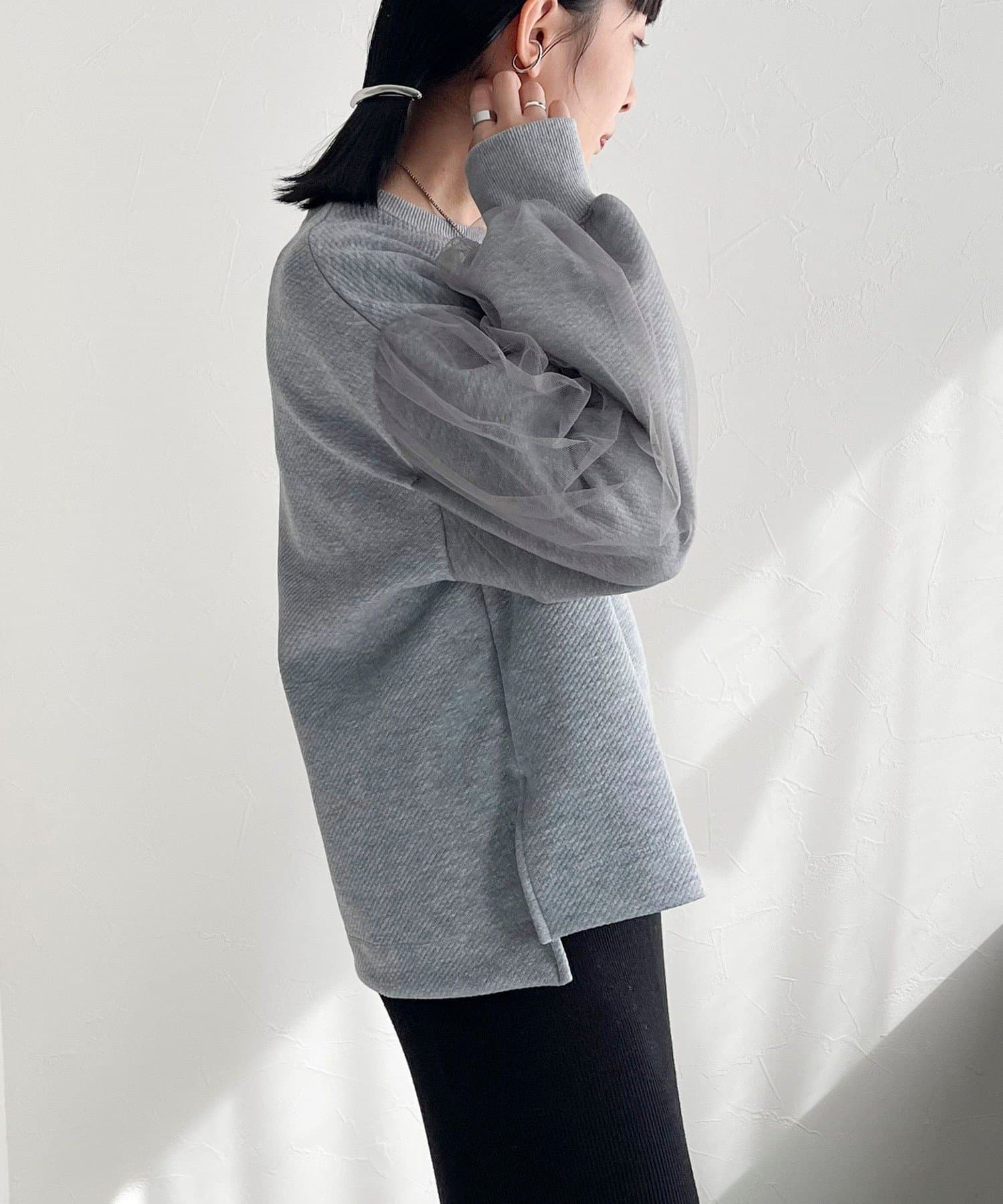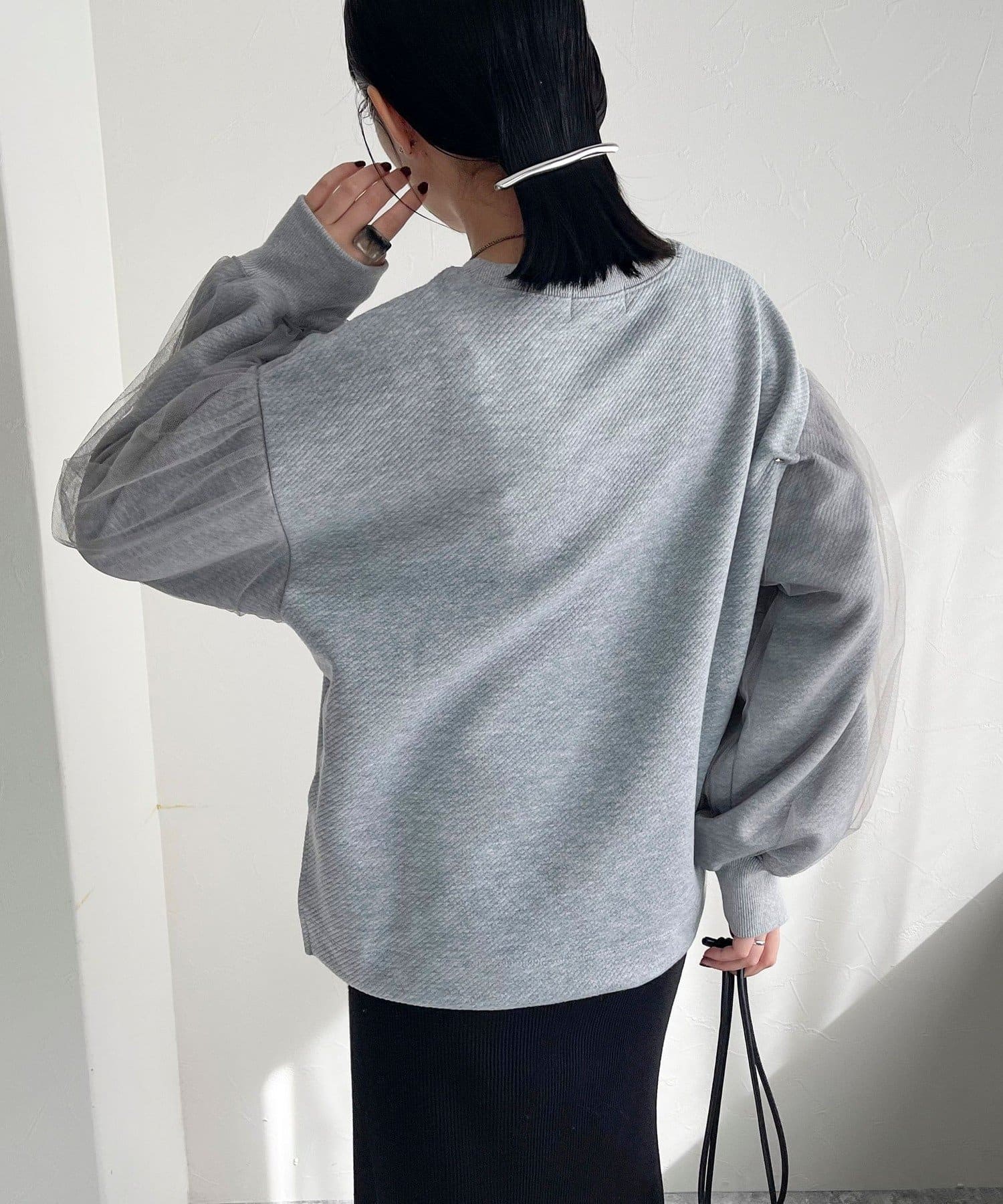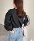 ・袖にチュールを重ねた1枚で着映えするカットソーです