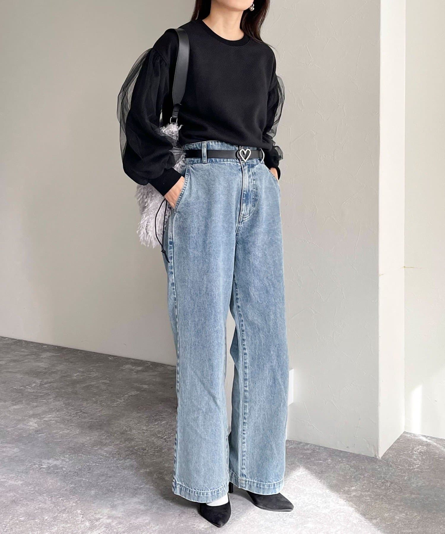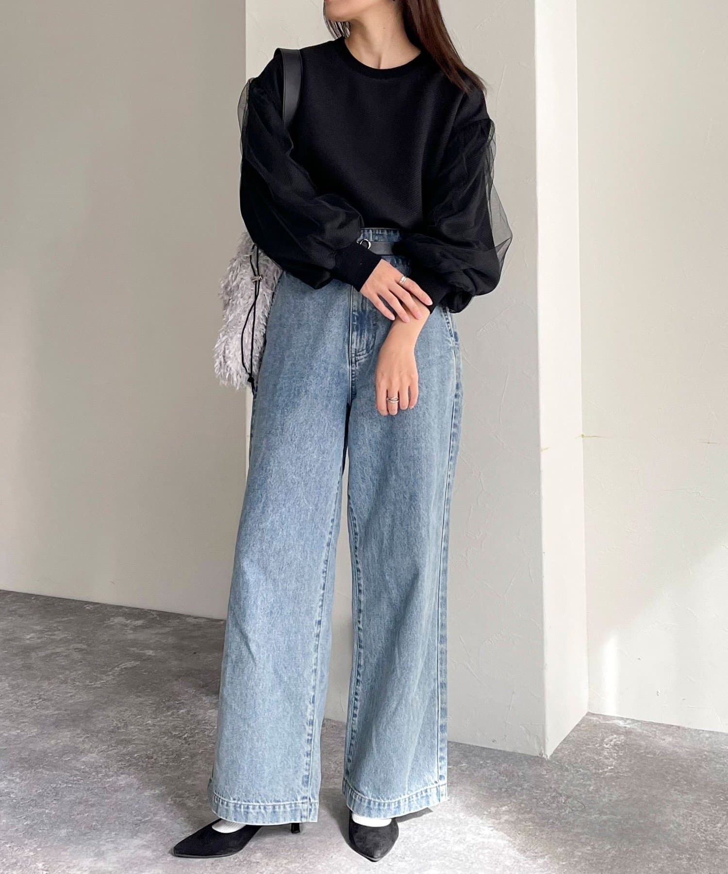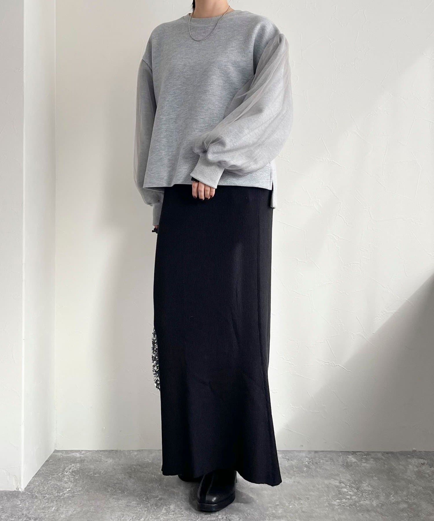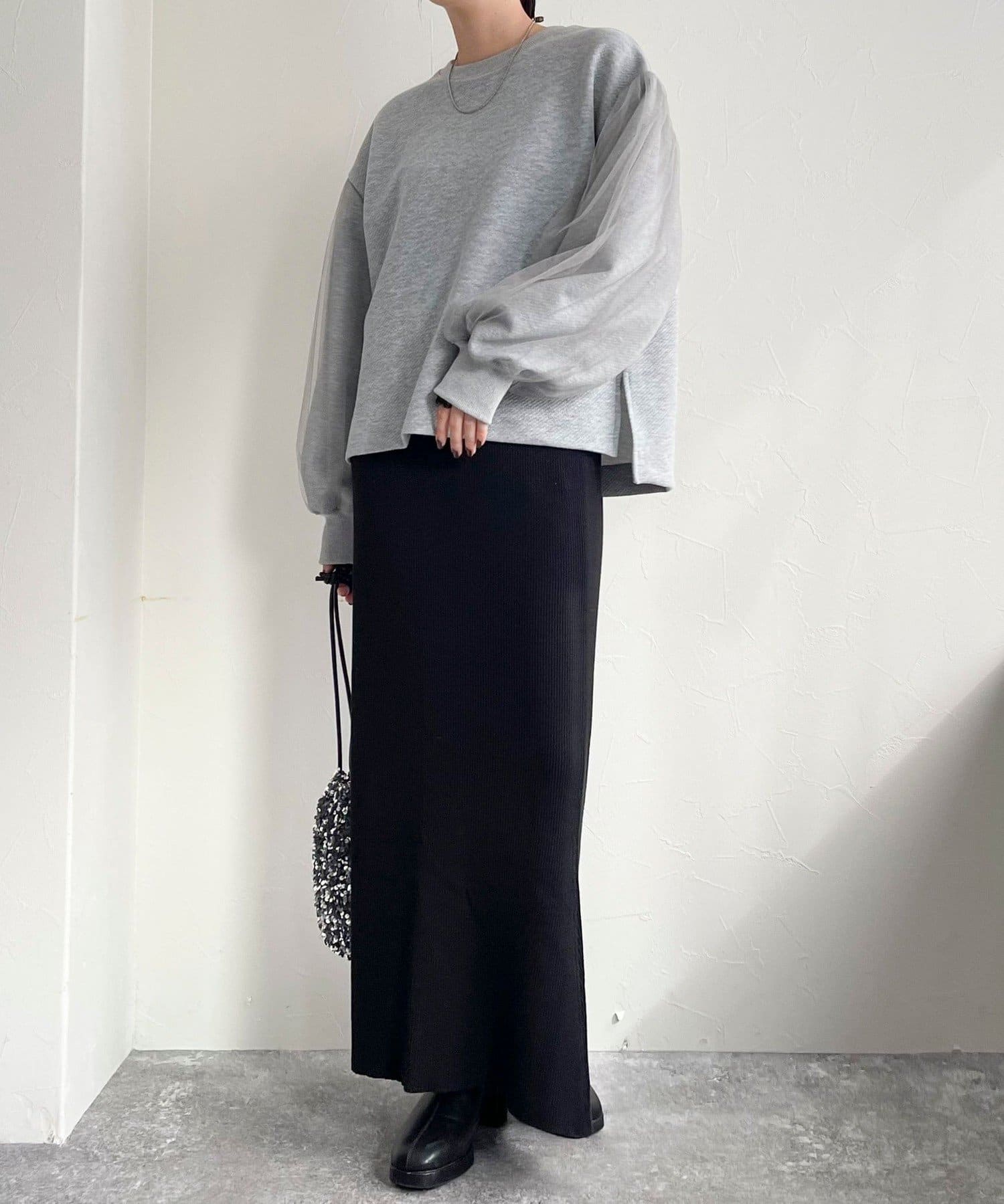 ・袖にチュールを重ねた1枚で着映えするカットソーです