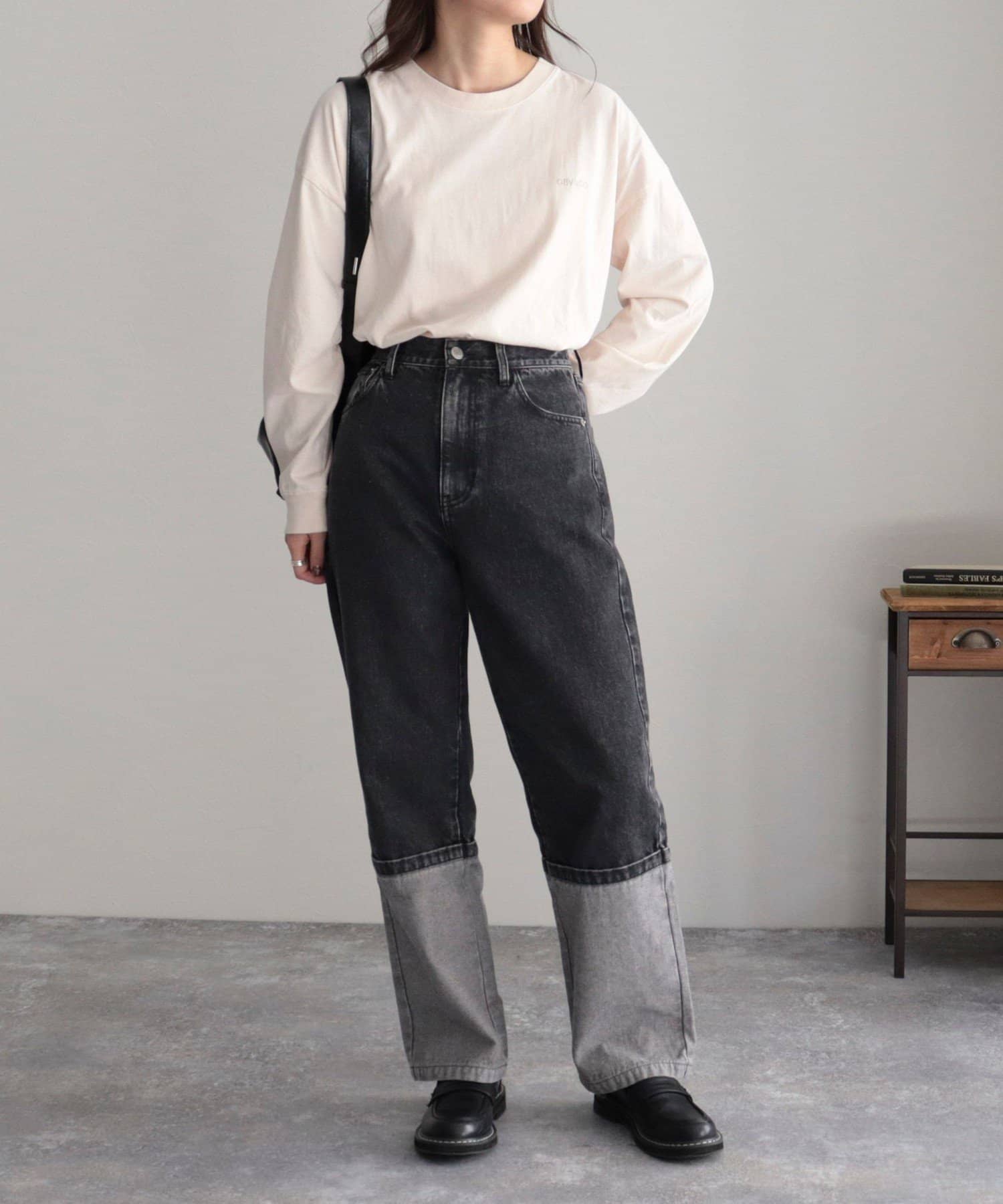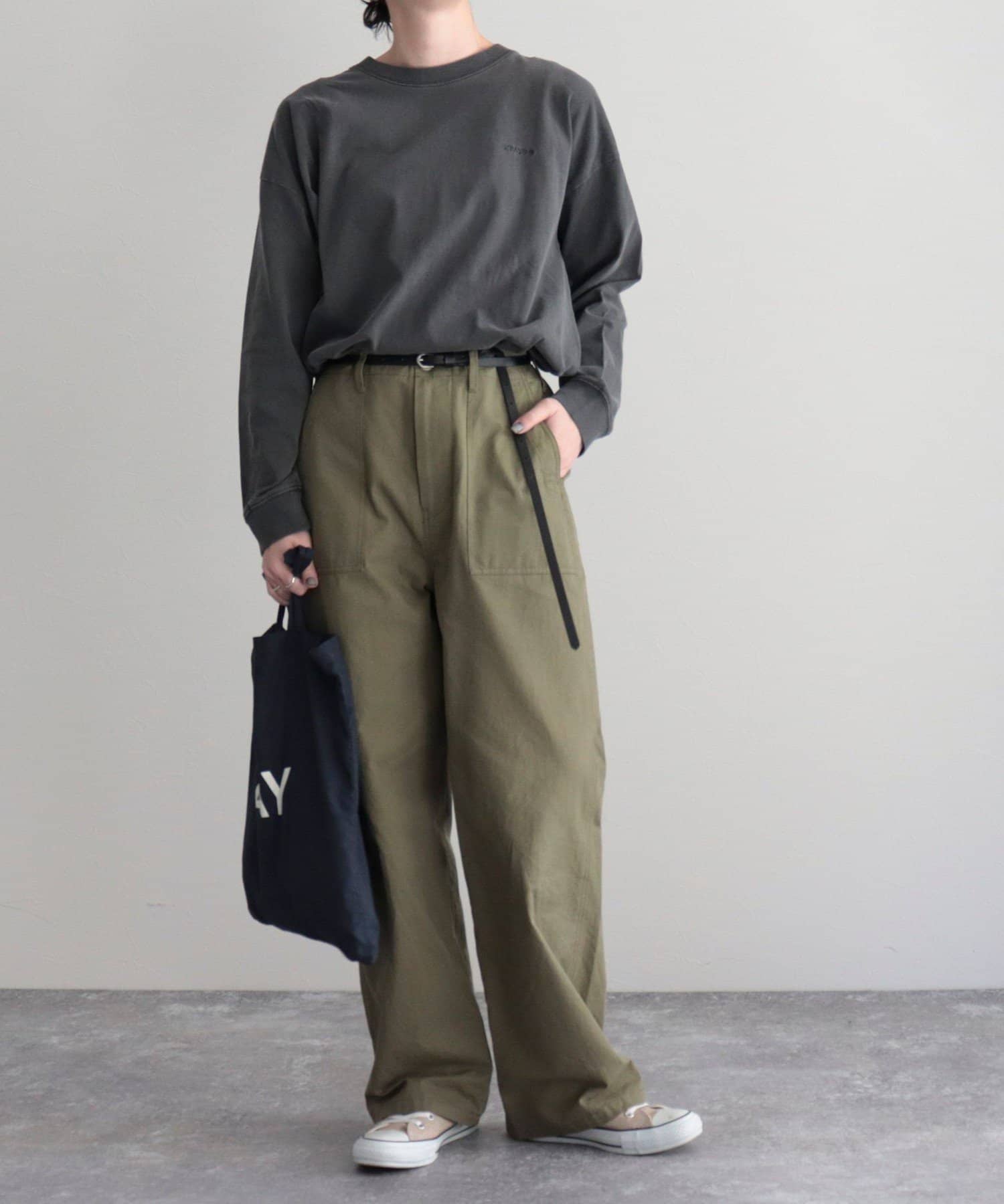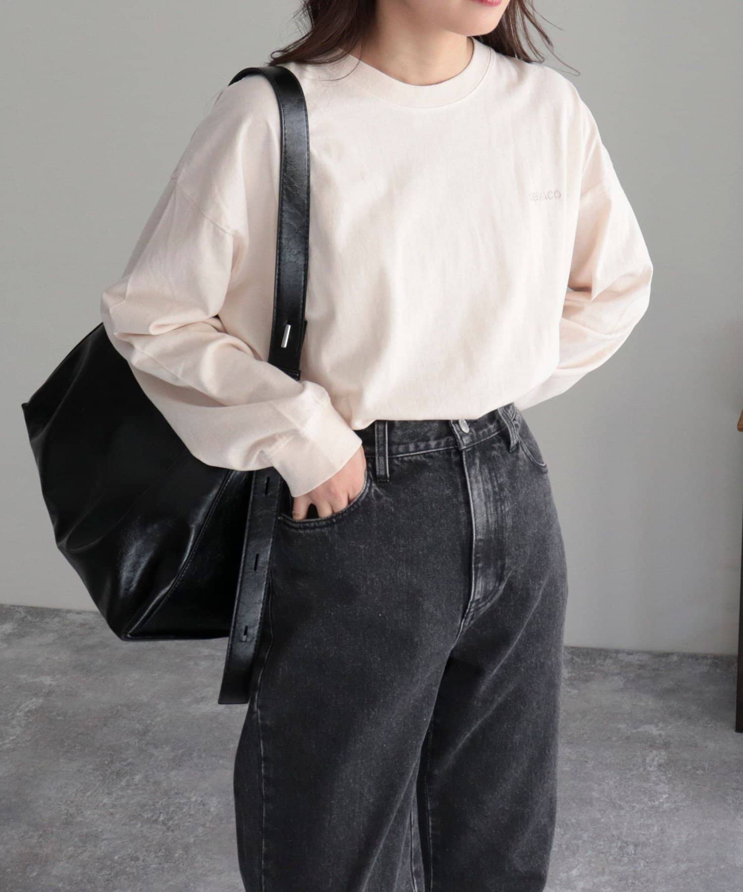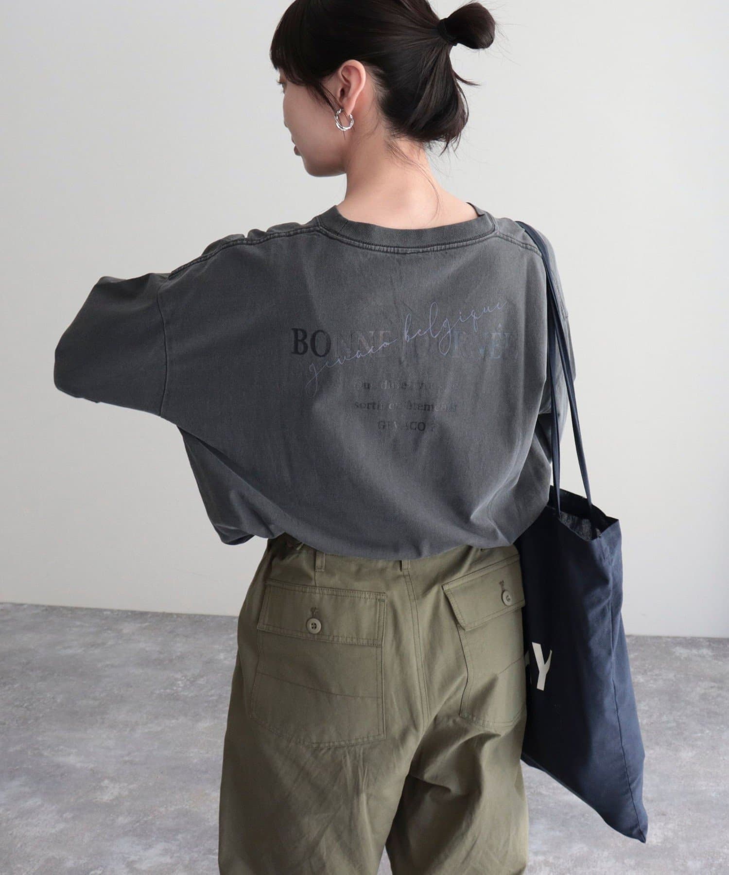 ・バッグプリントが目を惹くロンTです