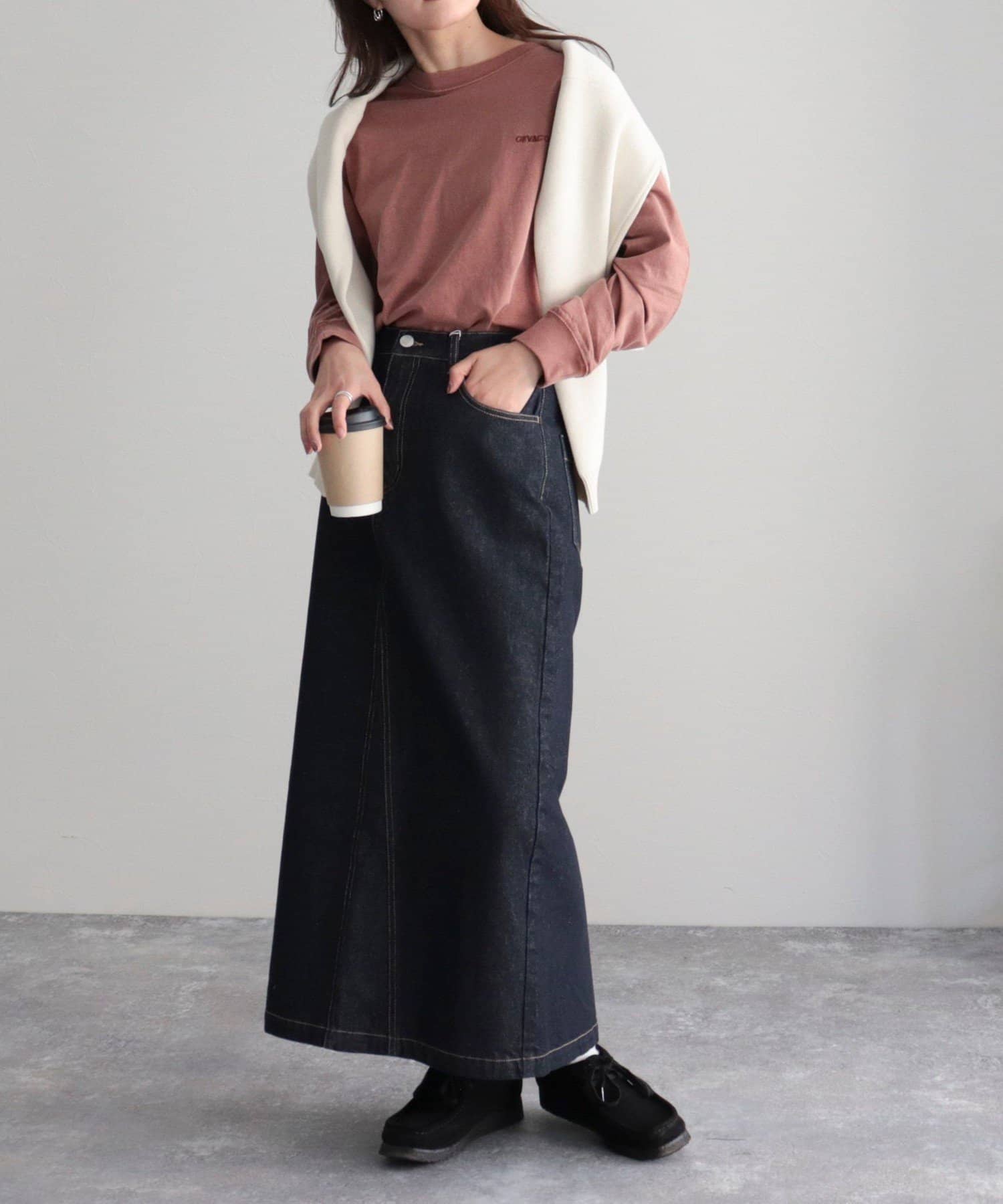 ・スカートを合わせた女性らしい着こなしや、デニムと合わせたシンプルなコーディネートがおすすめです