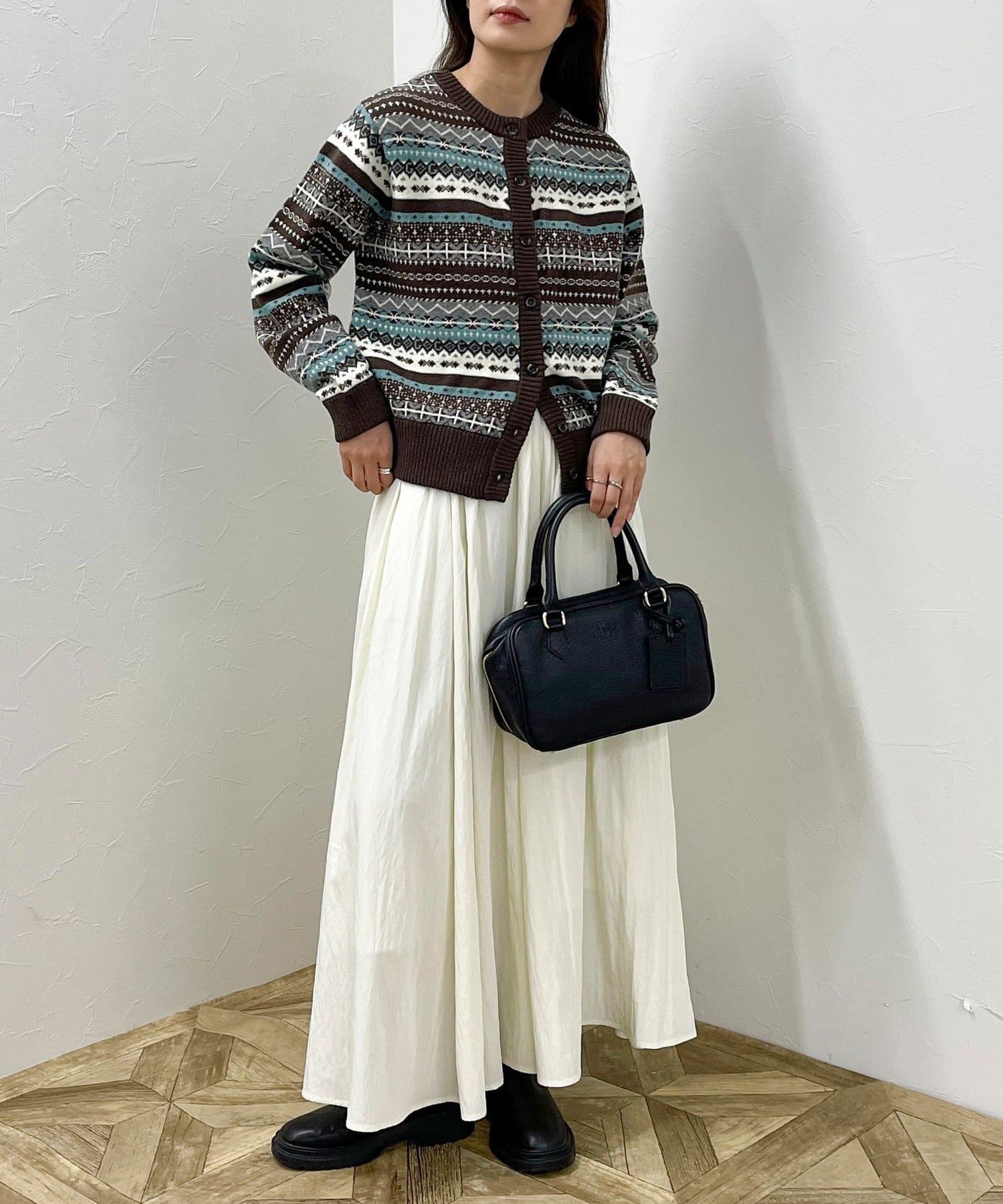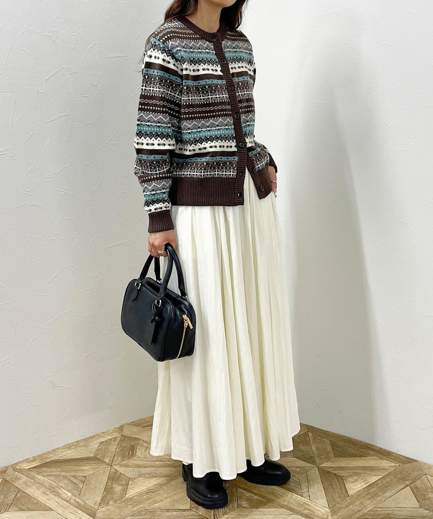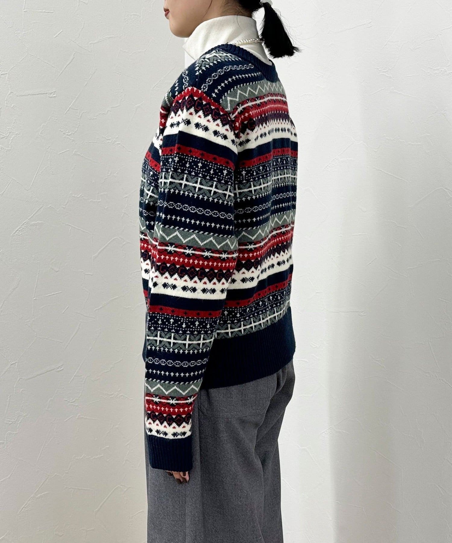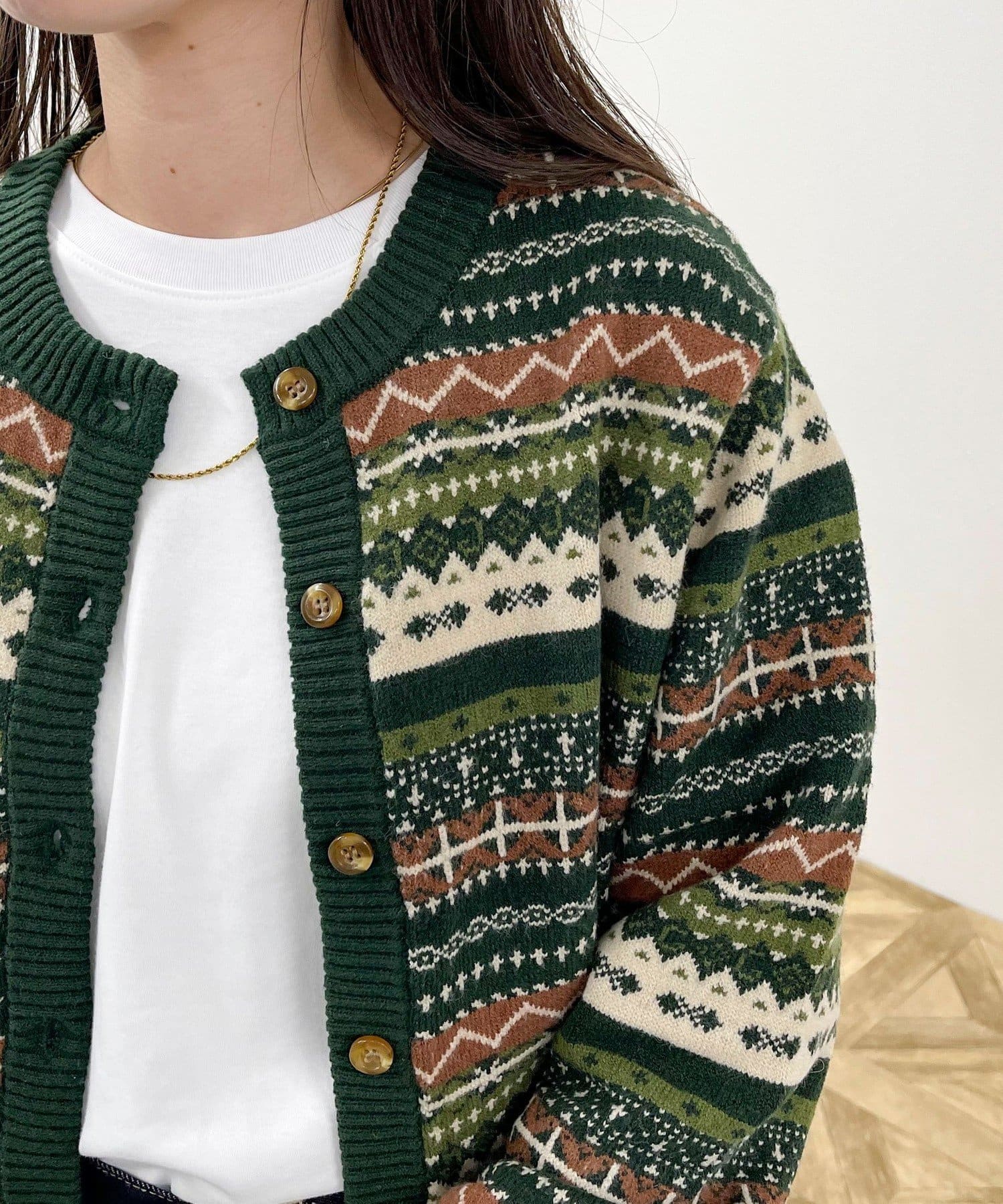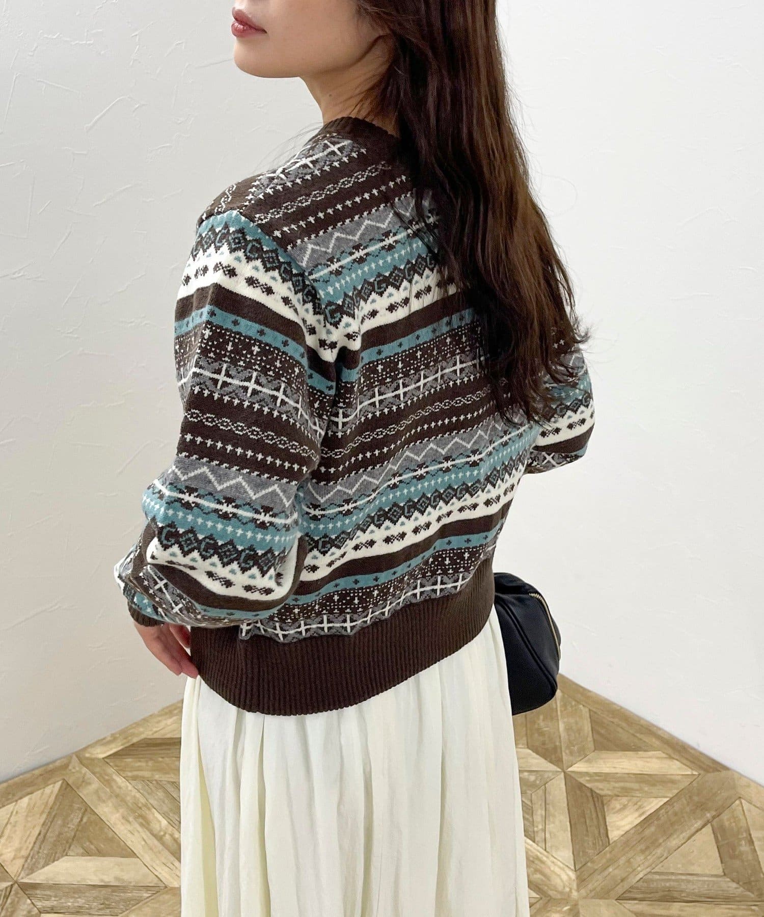 ・シーズンムード高まるフェアアイル柄がコーデの主役になるカーディガンです
