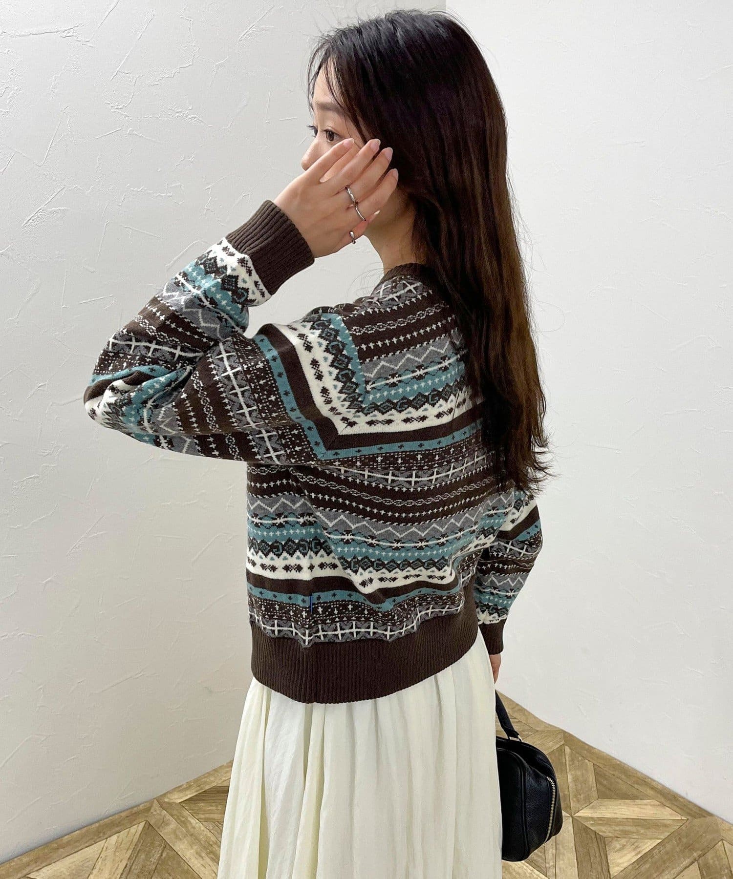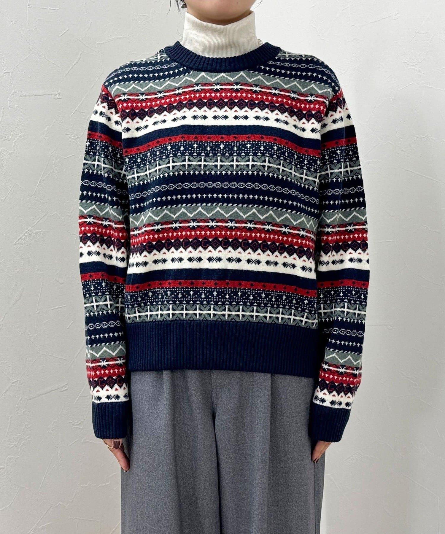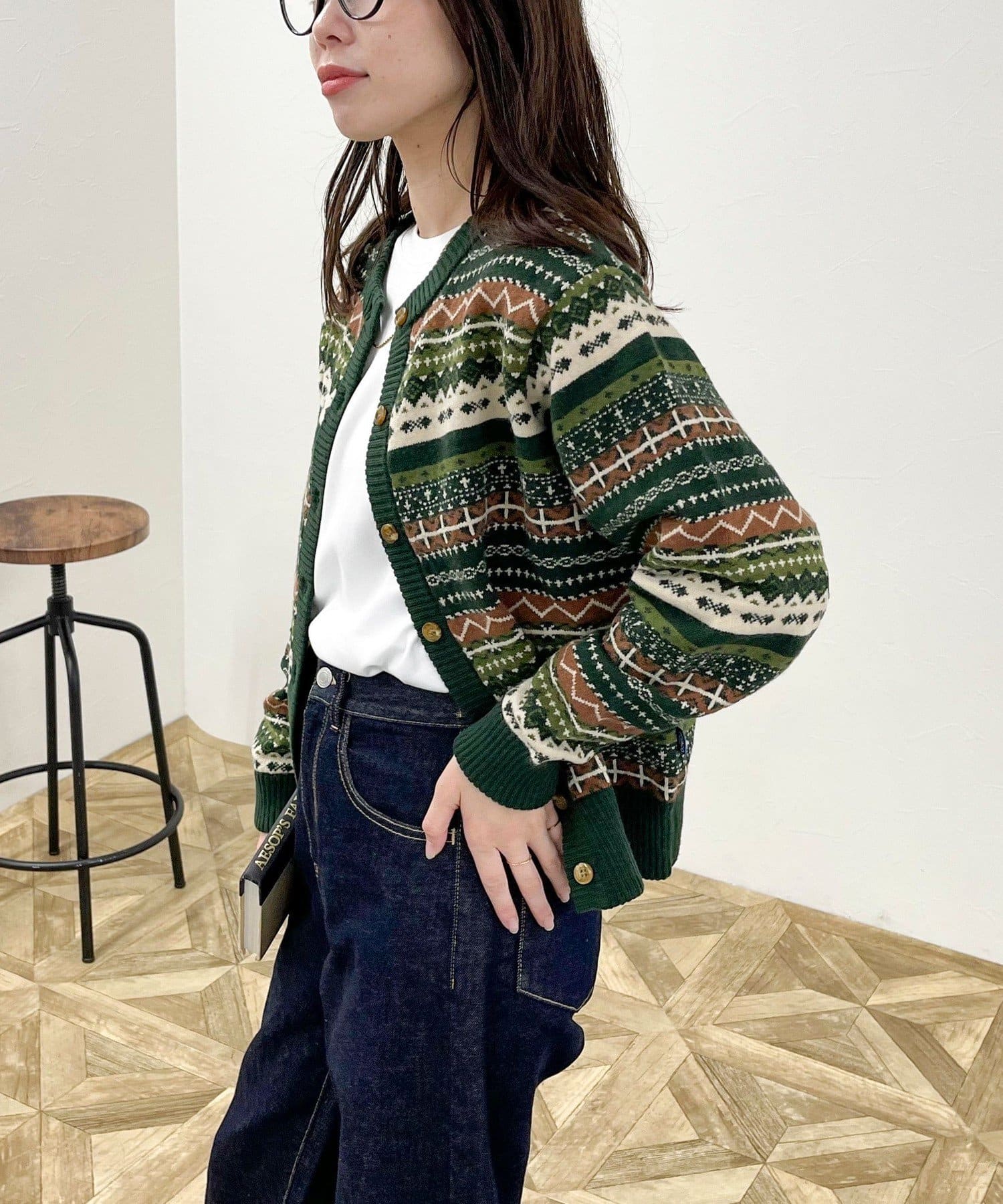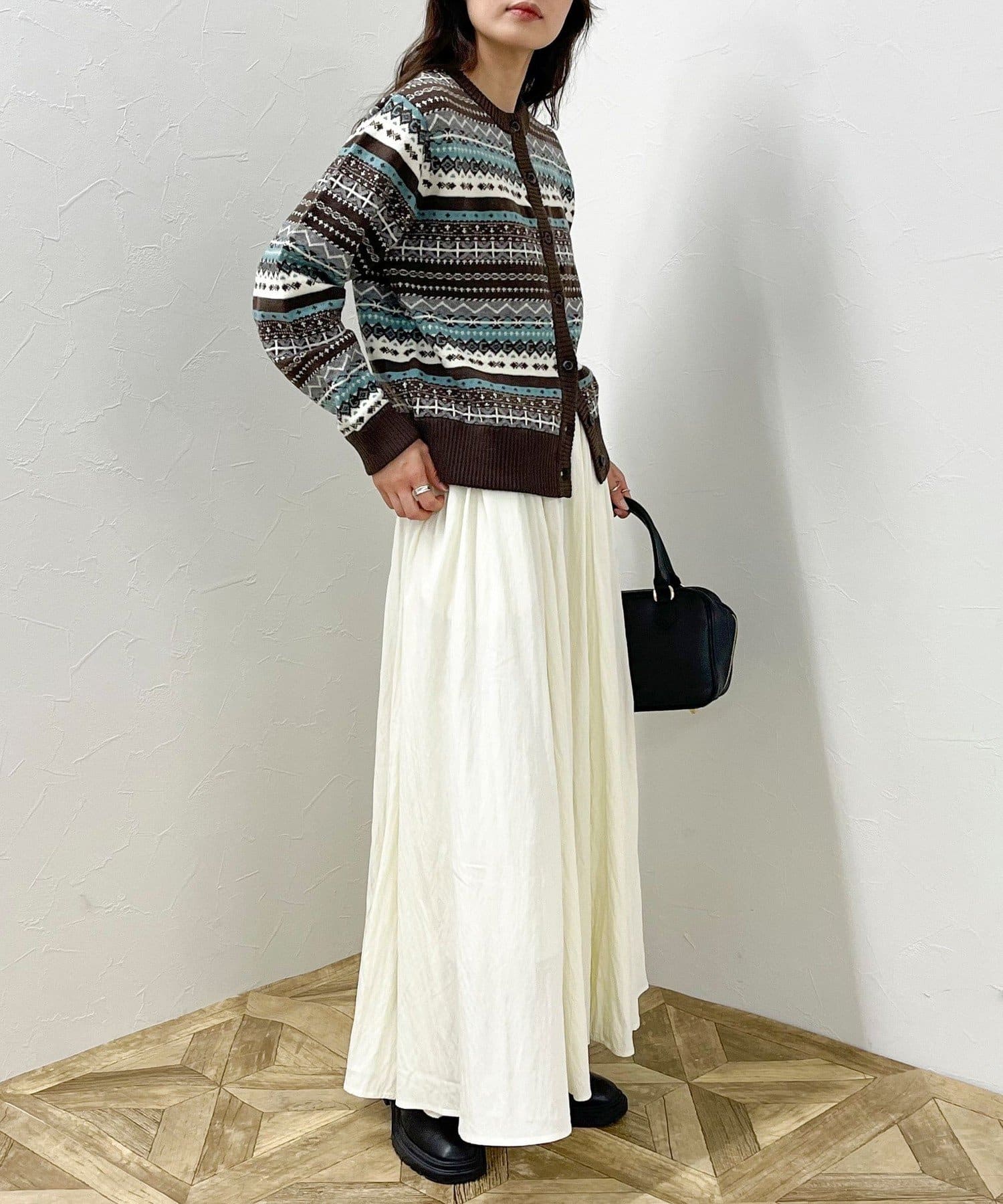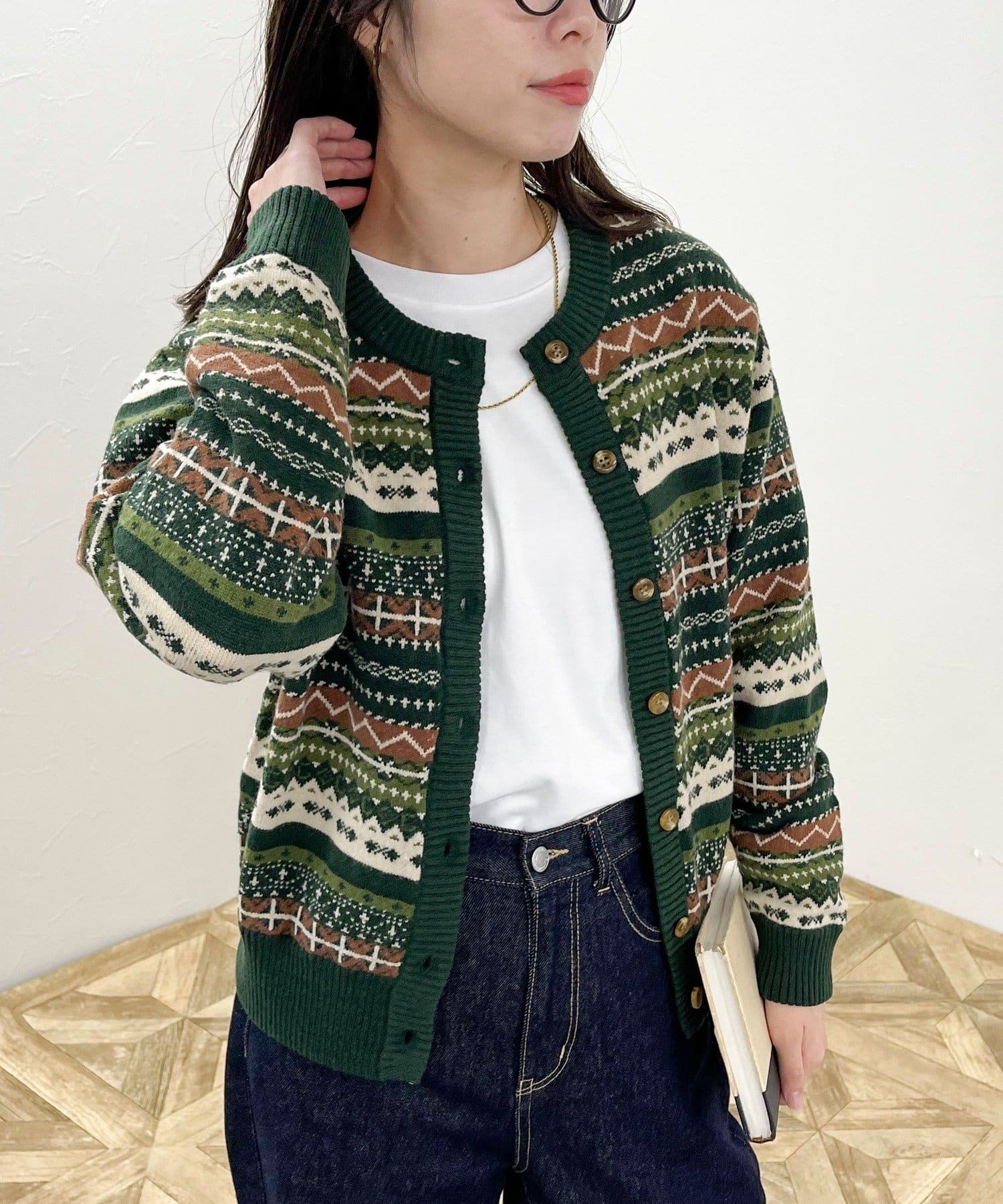 ・シーズンムード高まるフェアアイル柄がコーデの主役になるカーディガンです