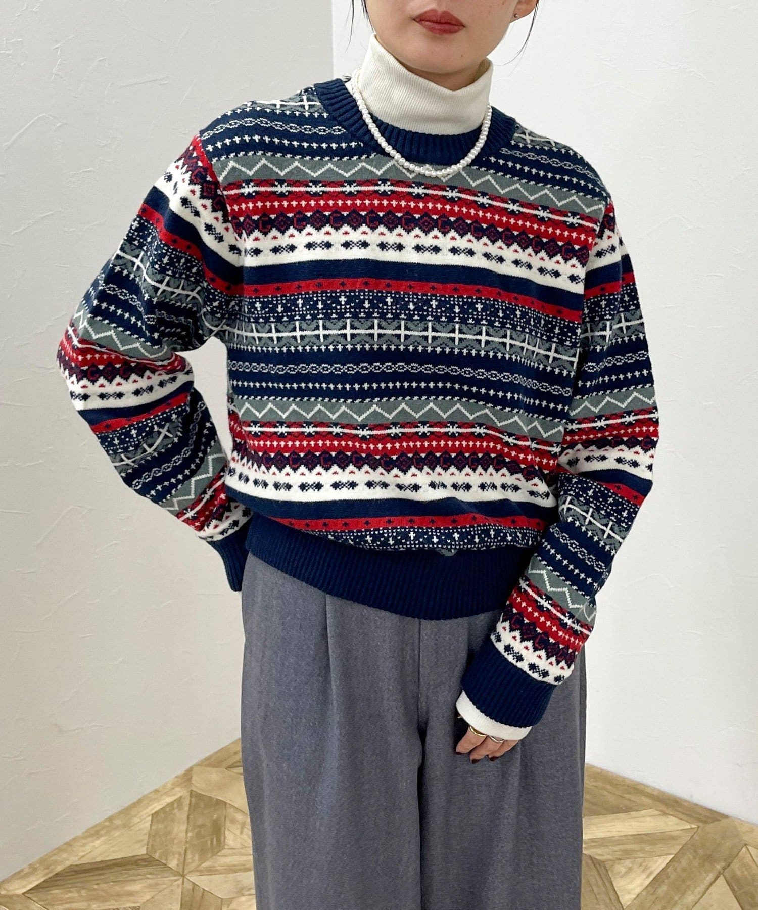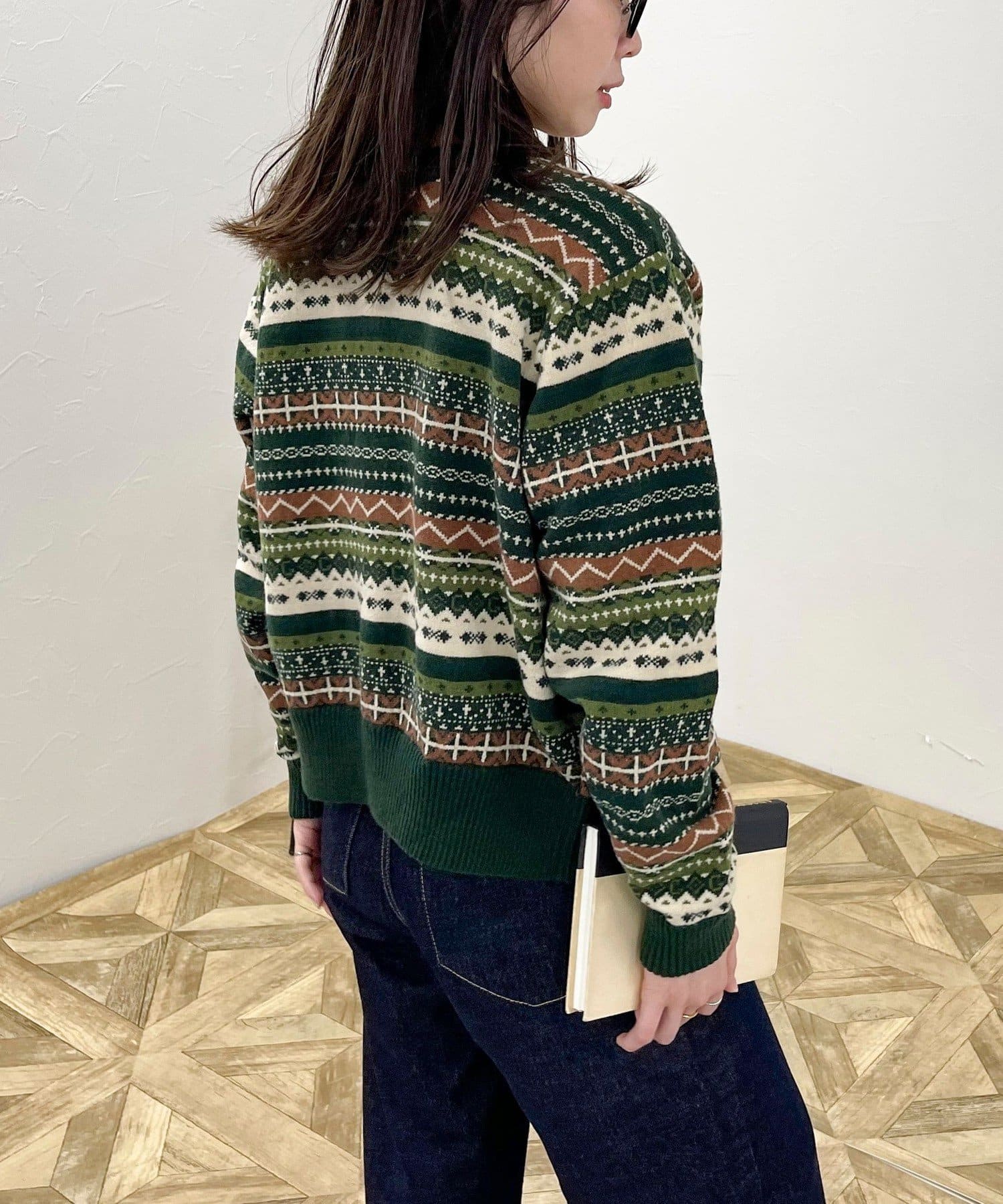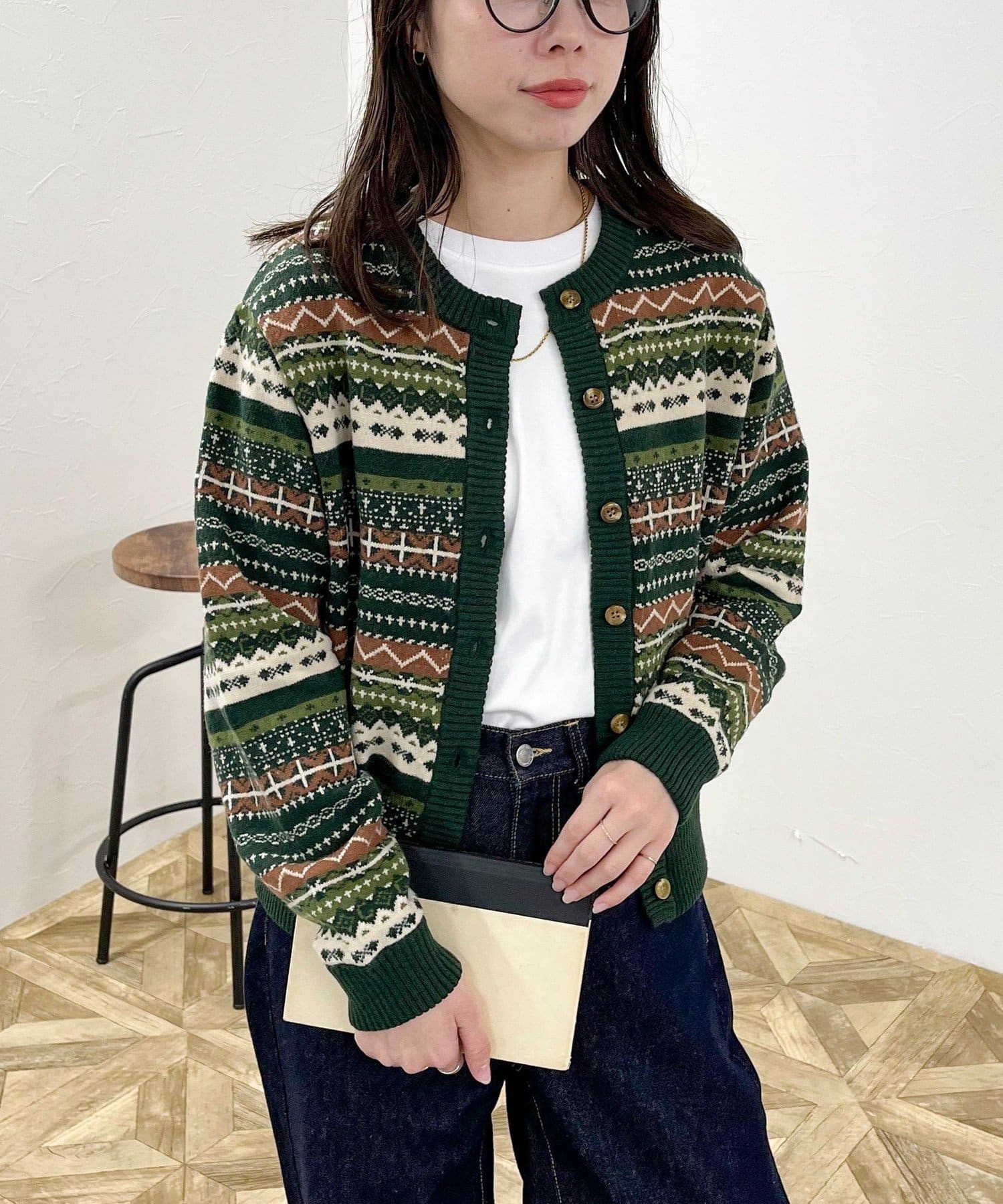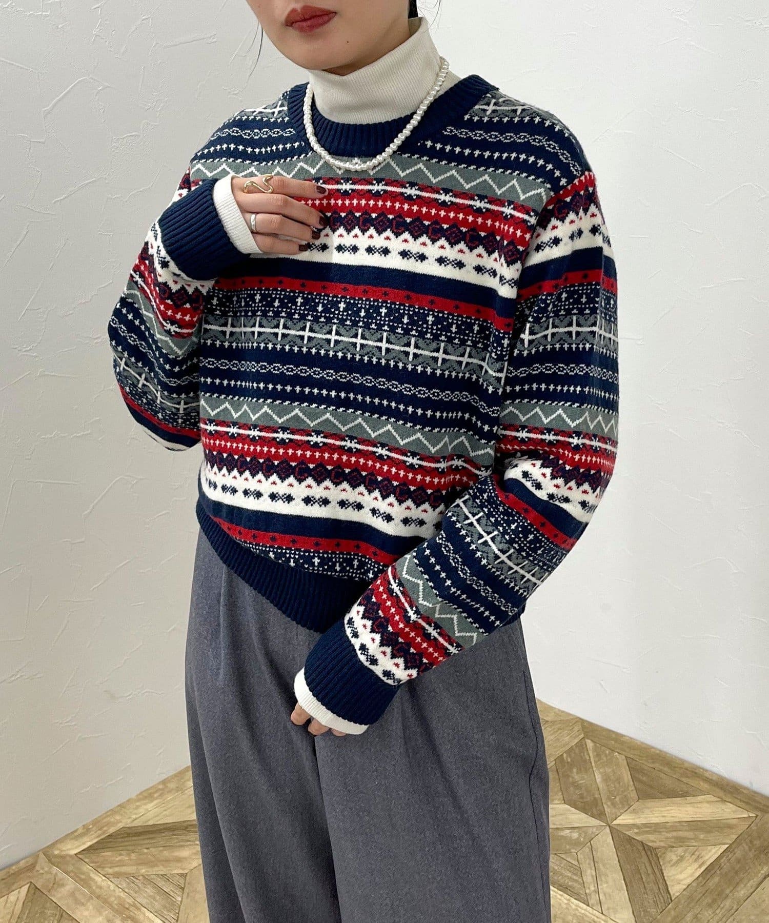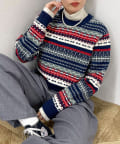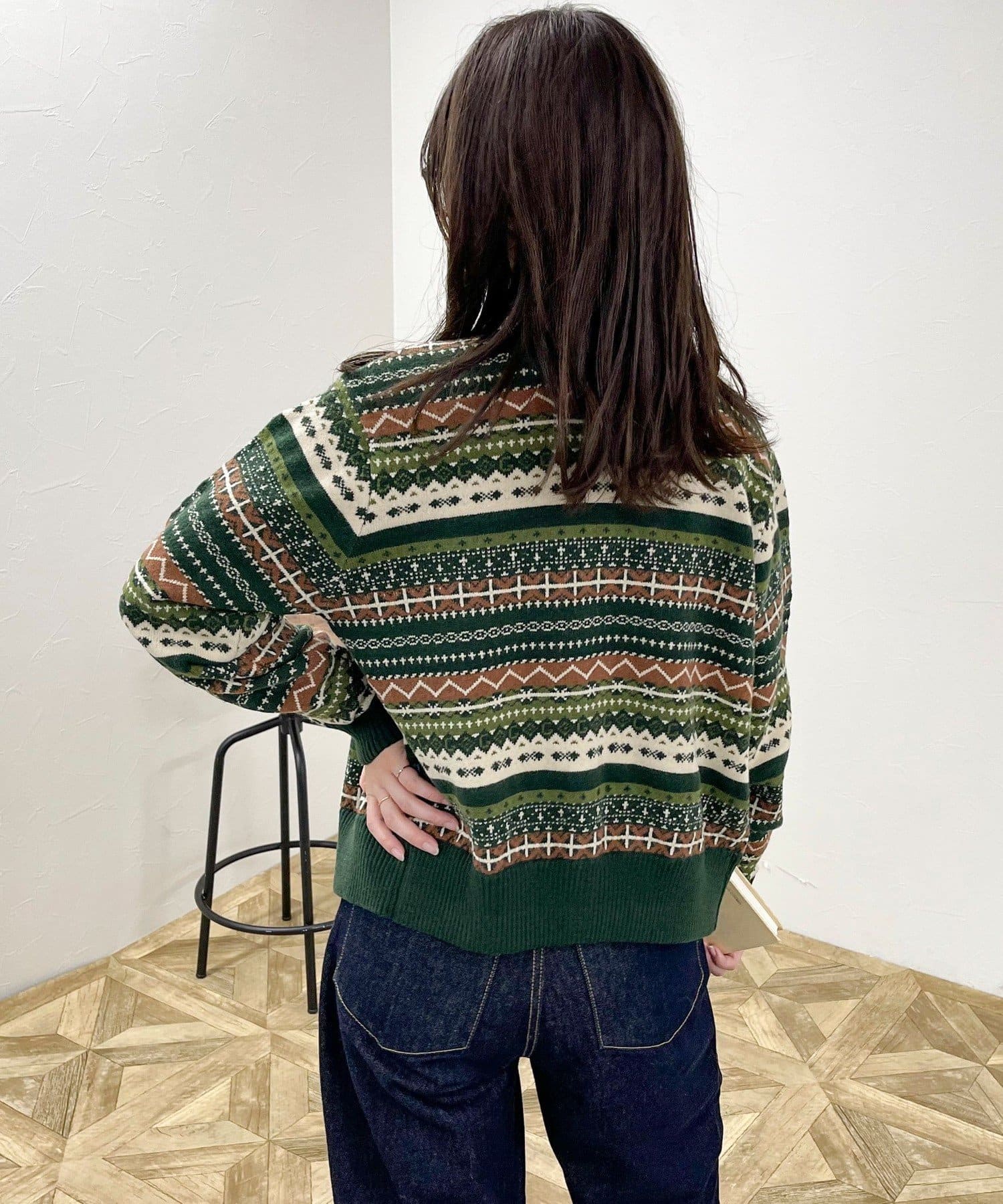 ・シーズンムード高まるフェアアイル柄がコーデの主役になるカーディガンです