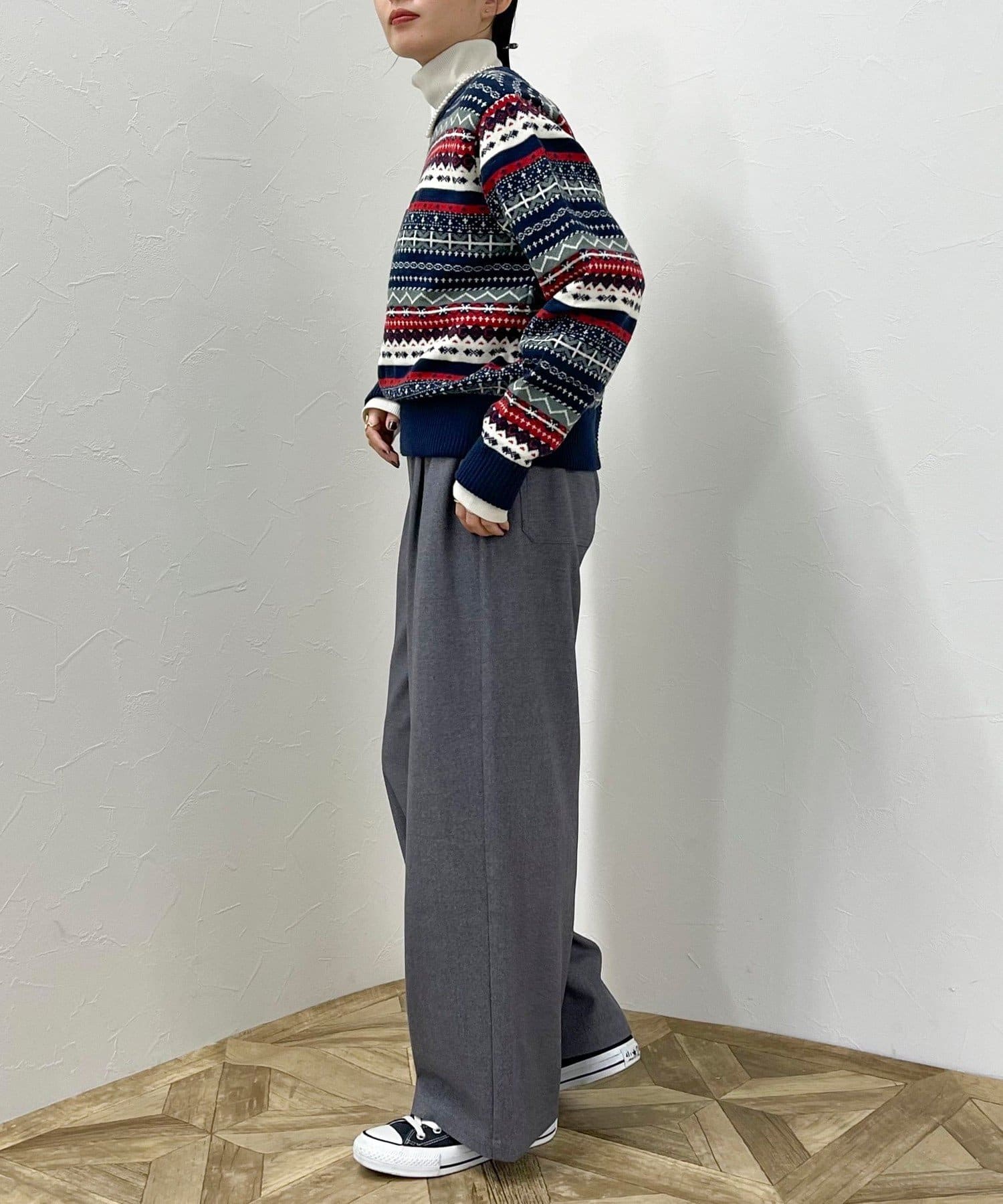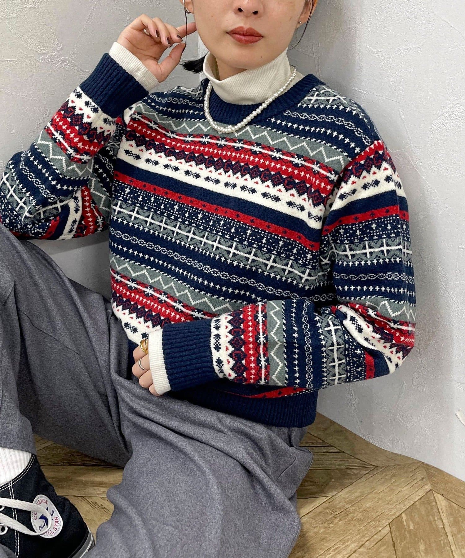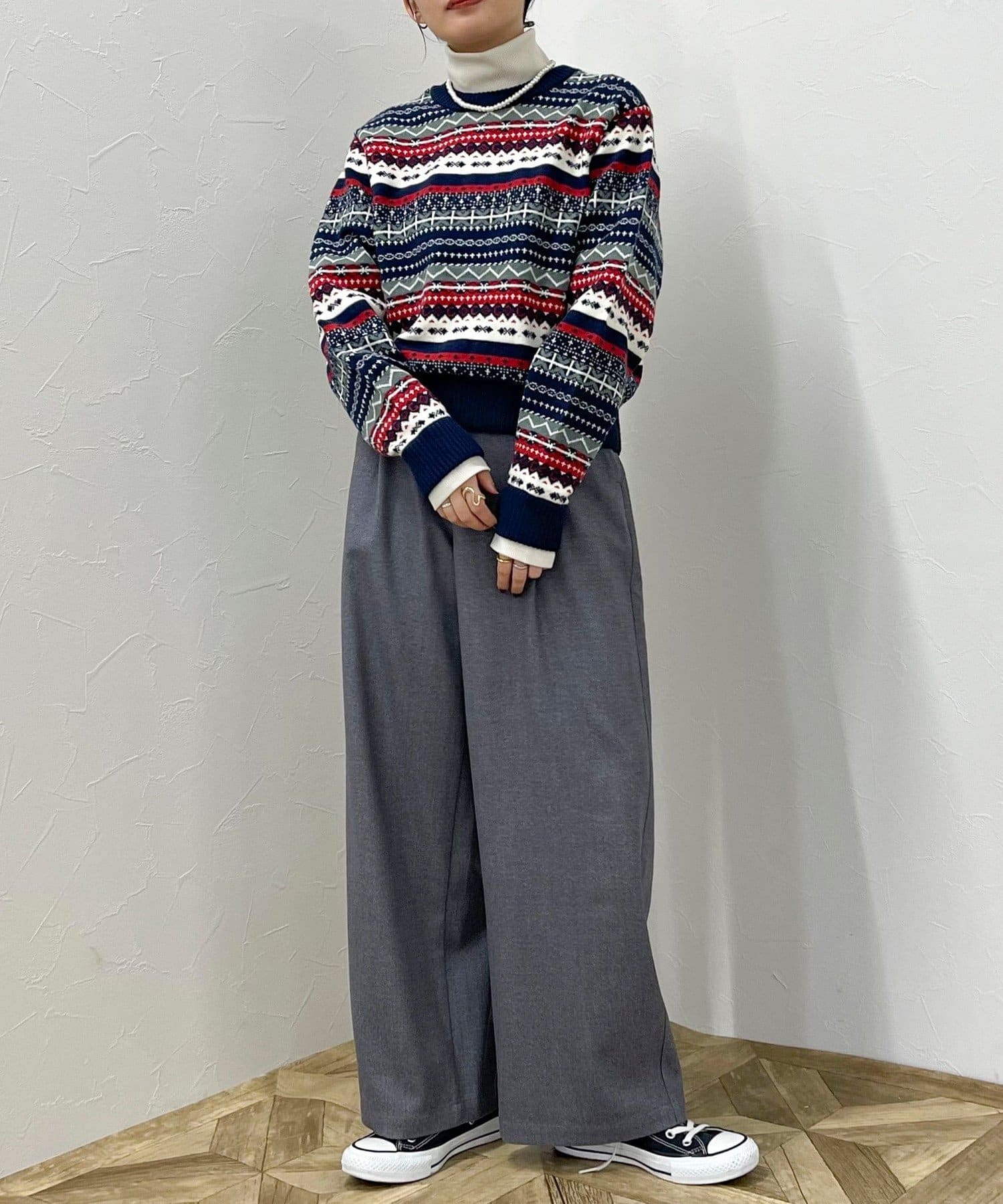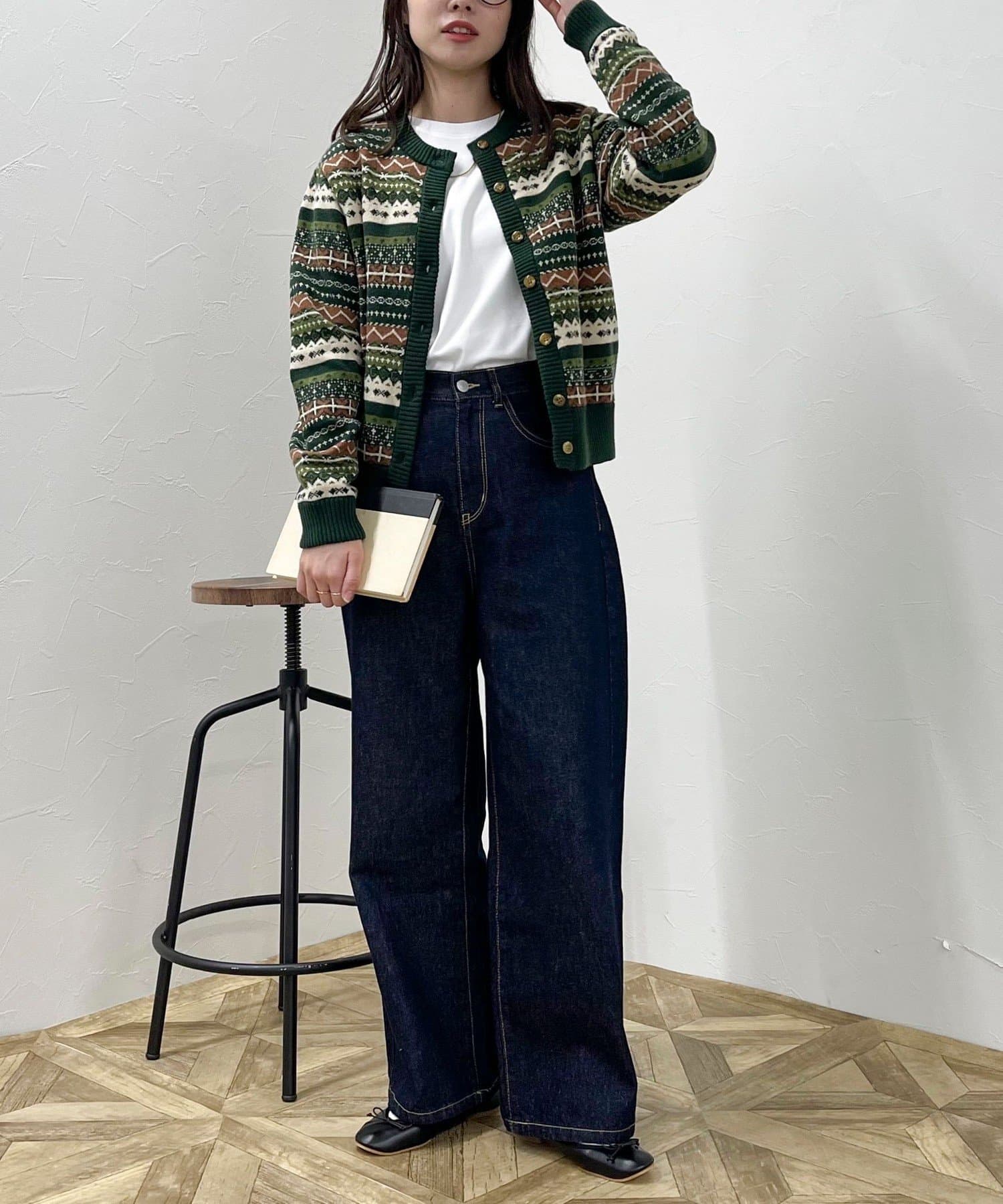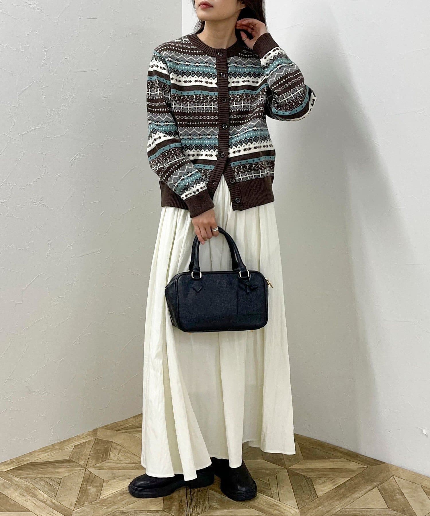 ・シーズンムード高まるフェアアイル柄がコーデの主役になるカーディガンです