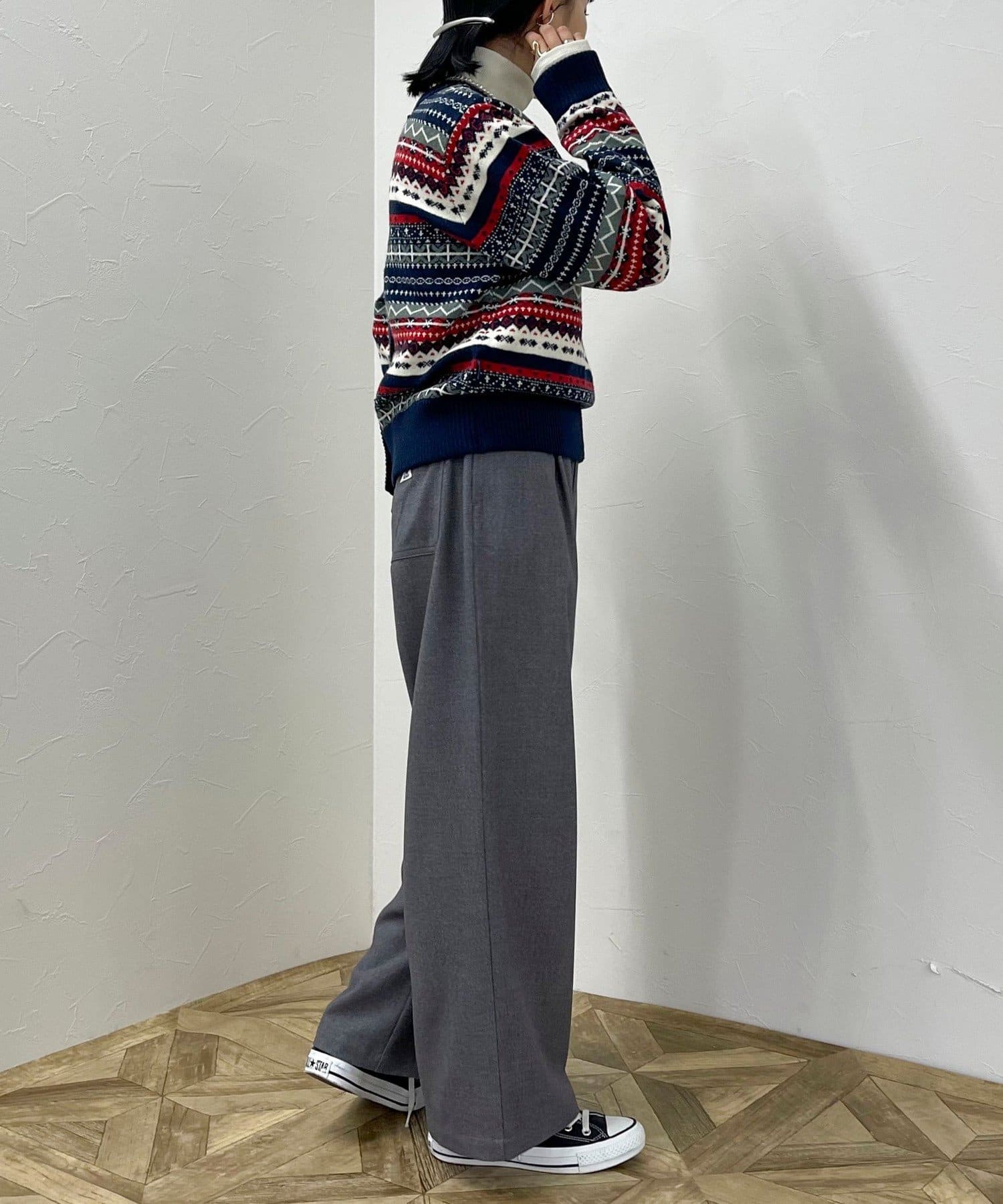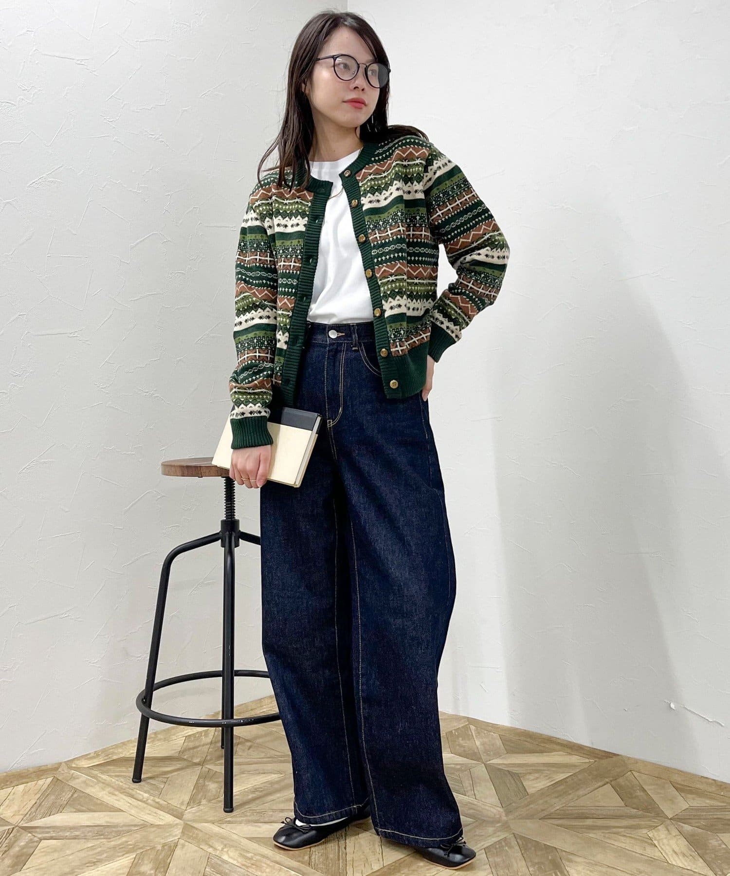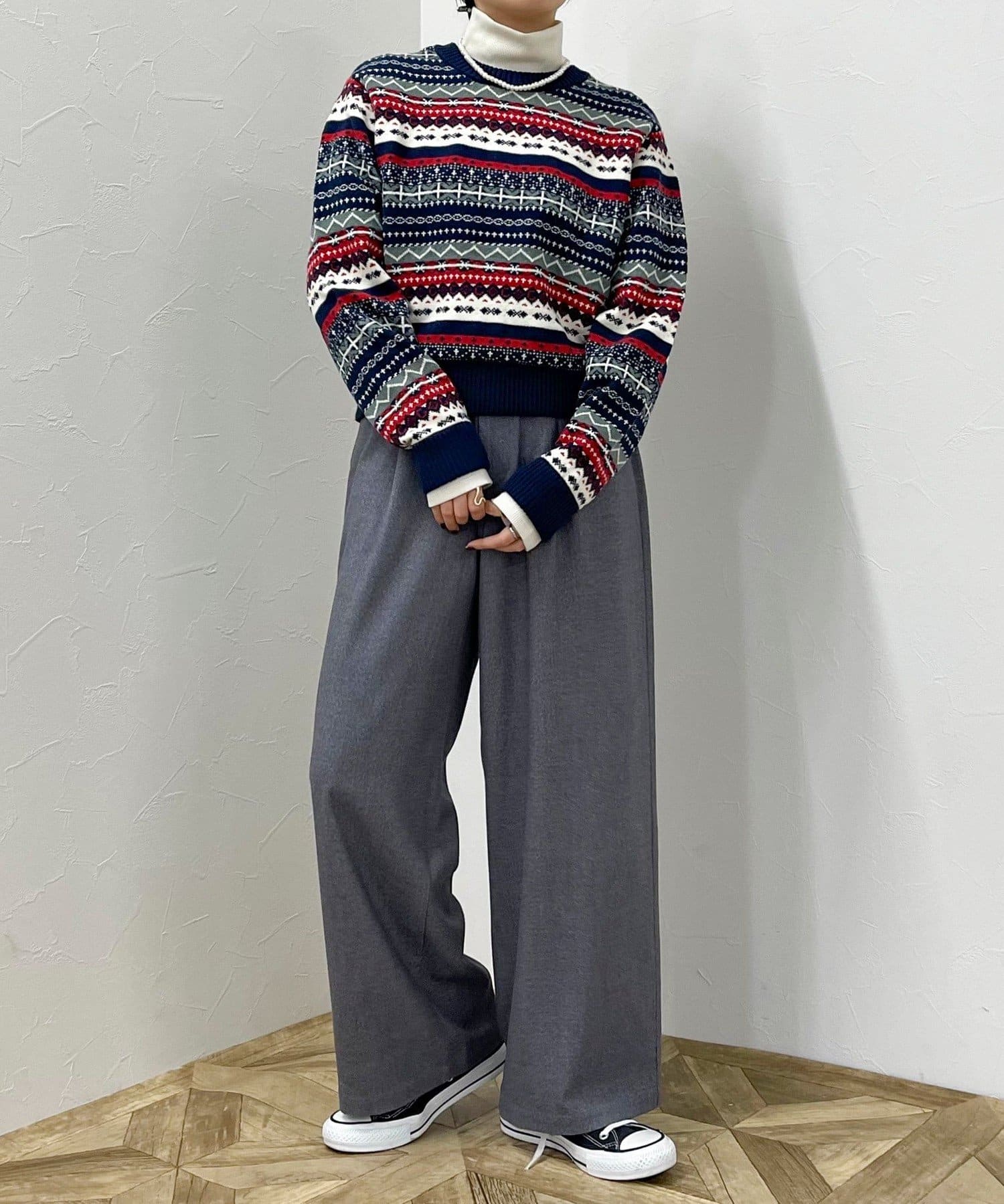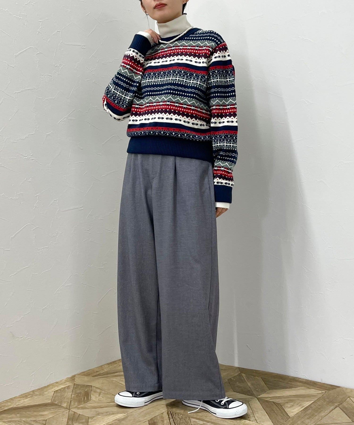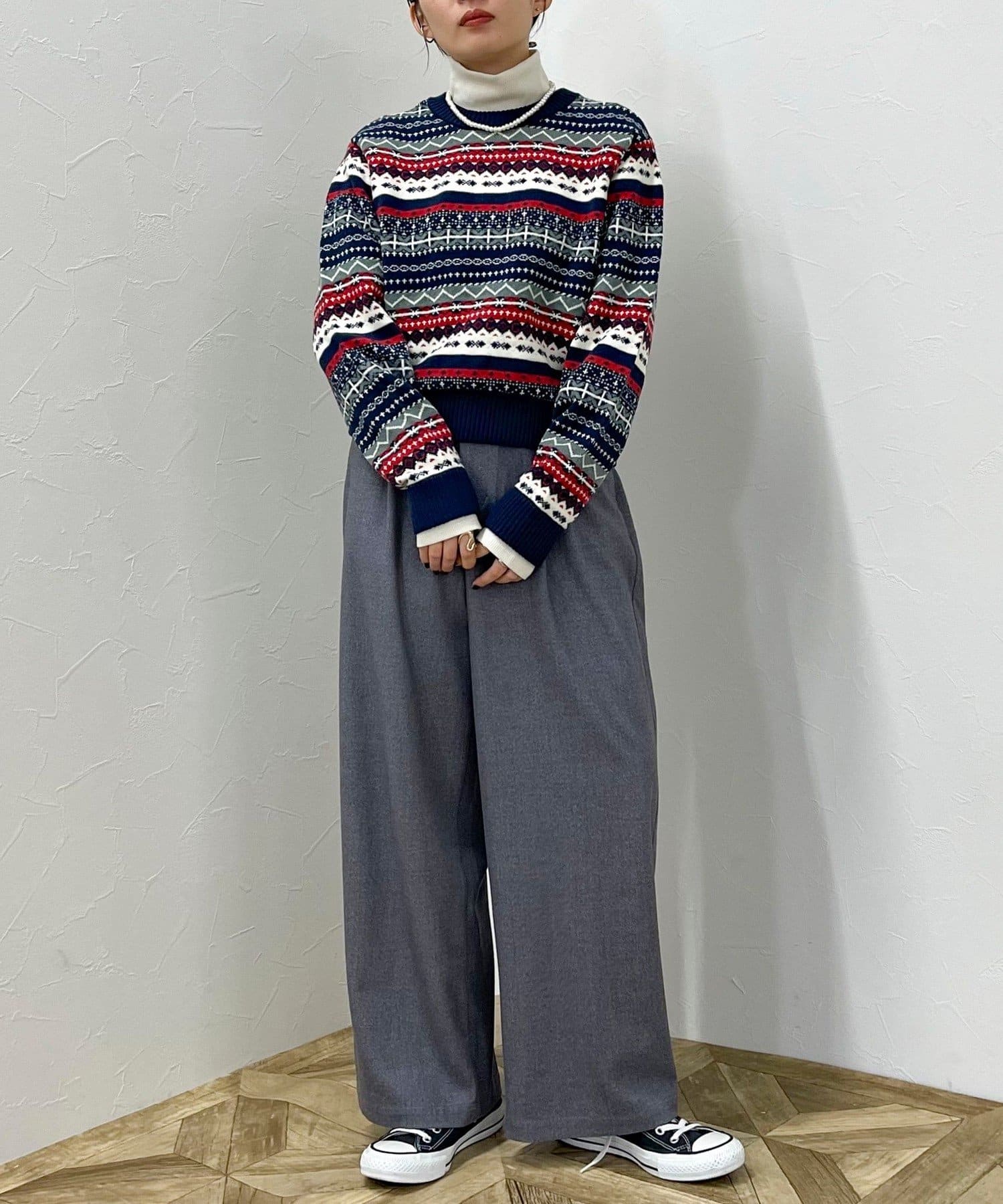 ・シーズンムード高まるフェアアイル柄がコーデの主役になるカーディガンです