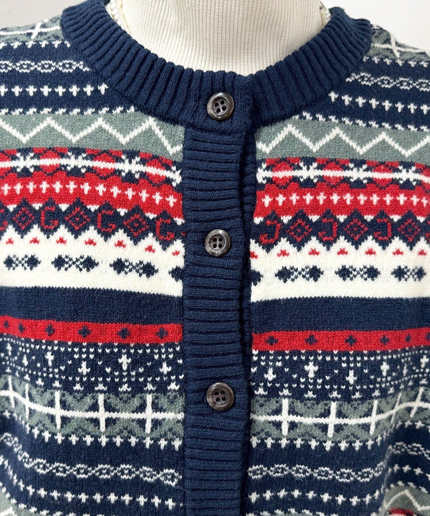 季節感たっぷりのフェアアイル柄カーディガン