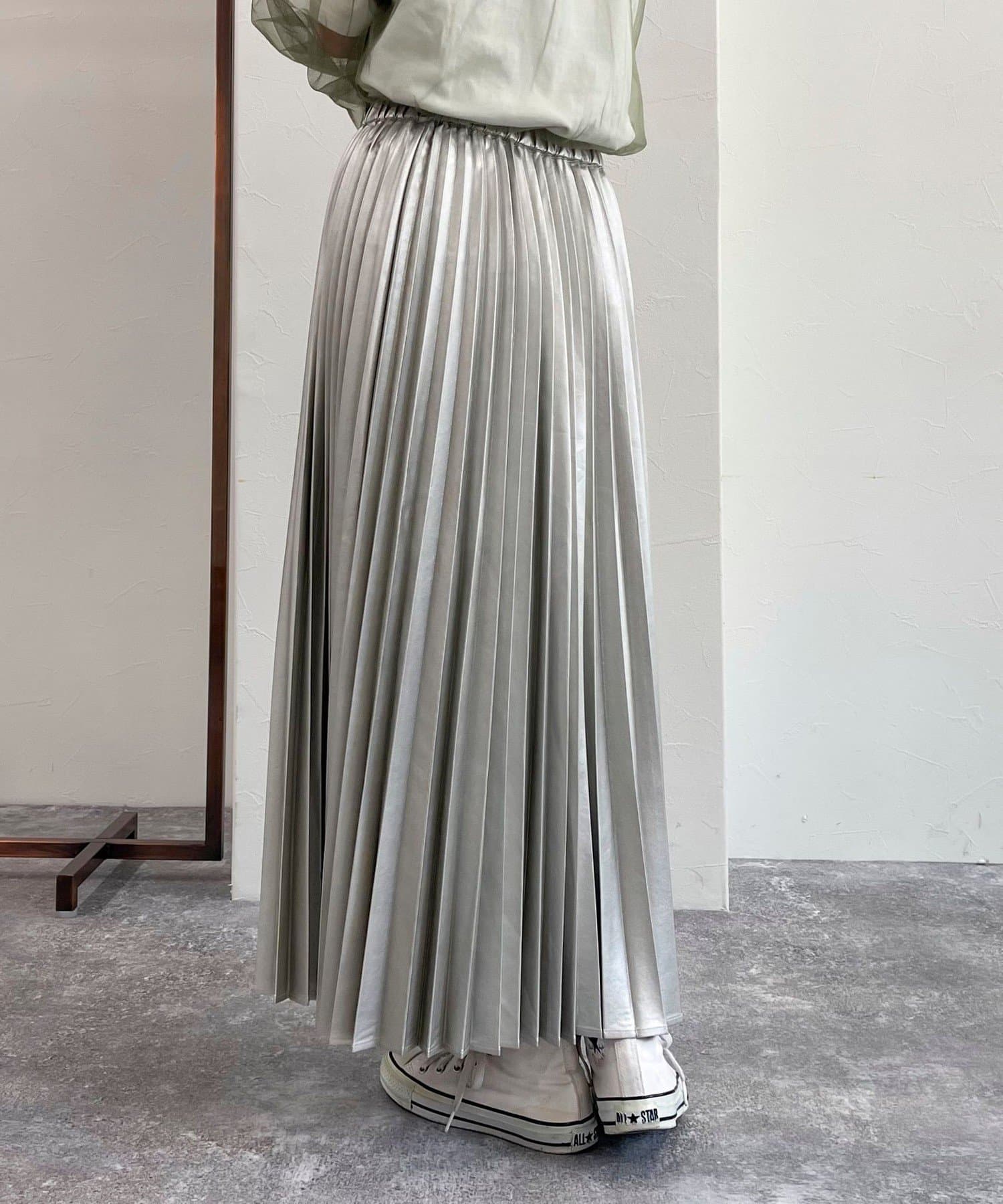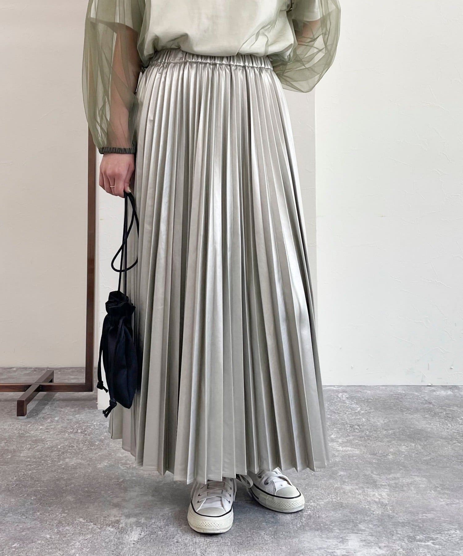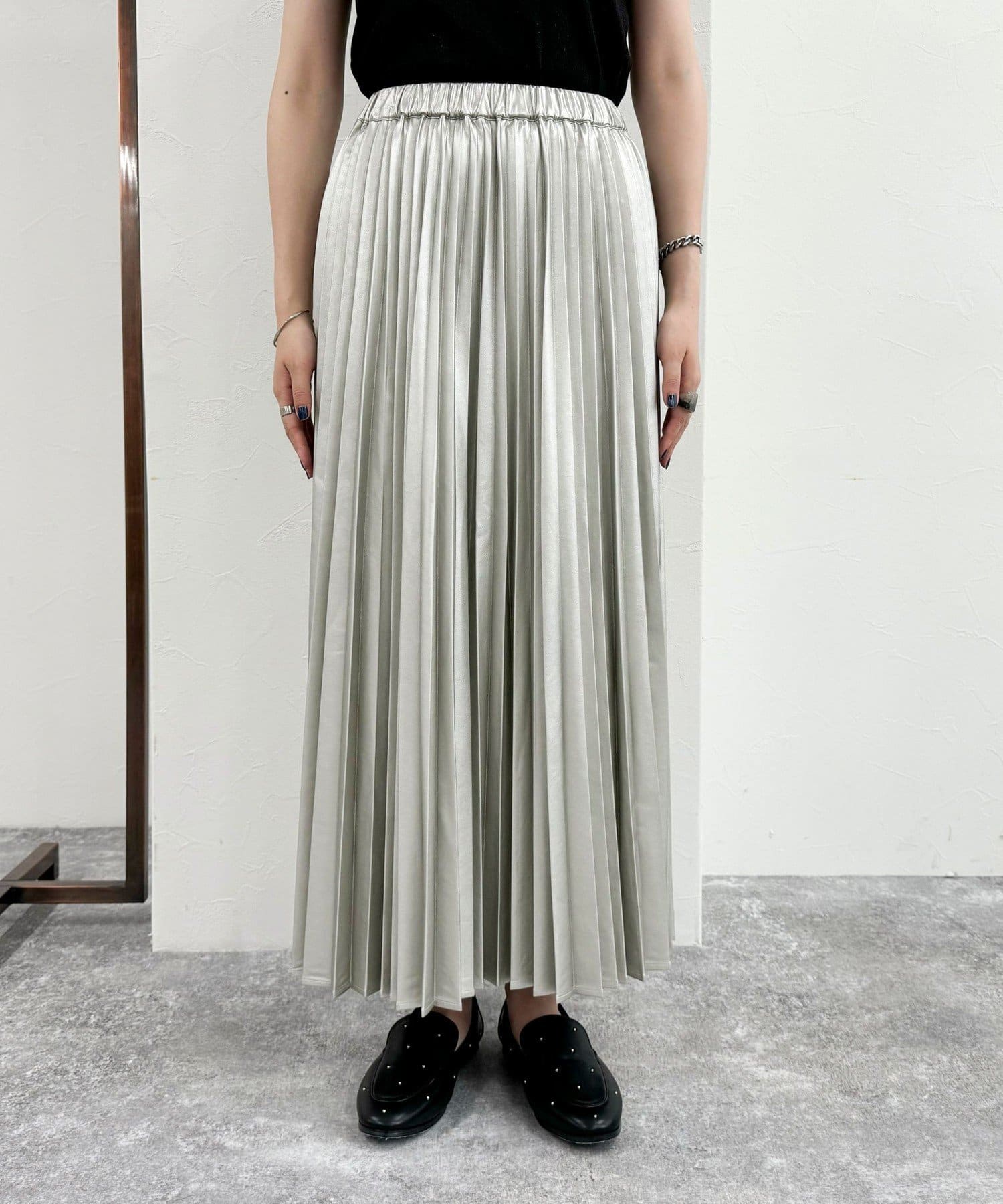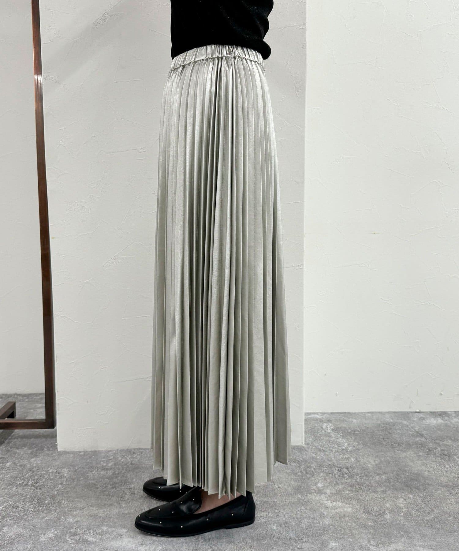 上品なツヤ感がフェミニンな大人のプリーツスカート