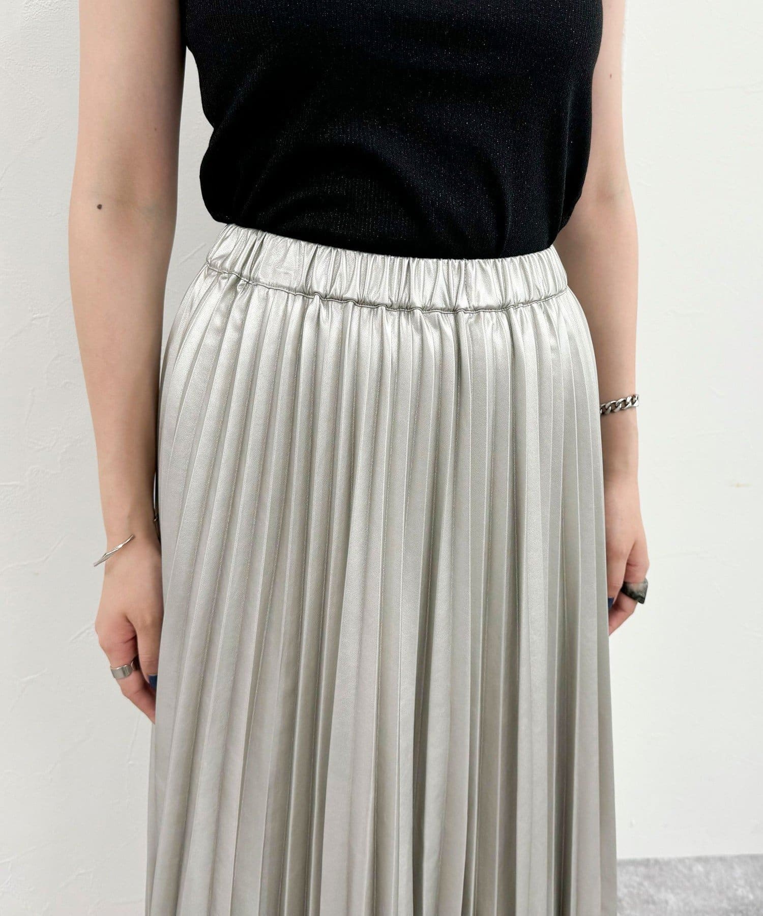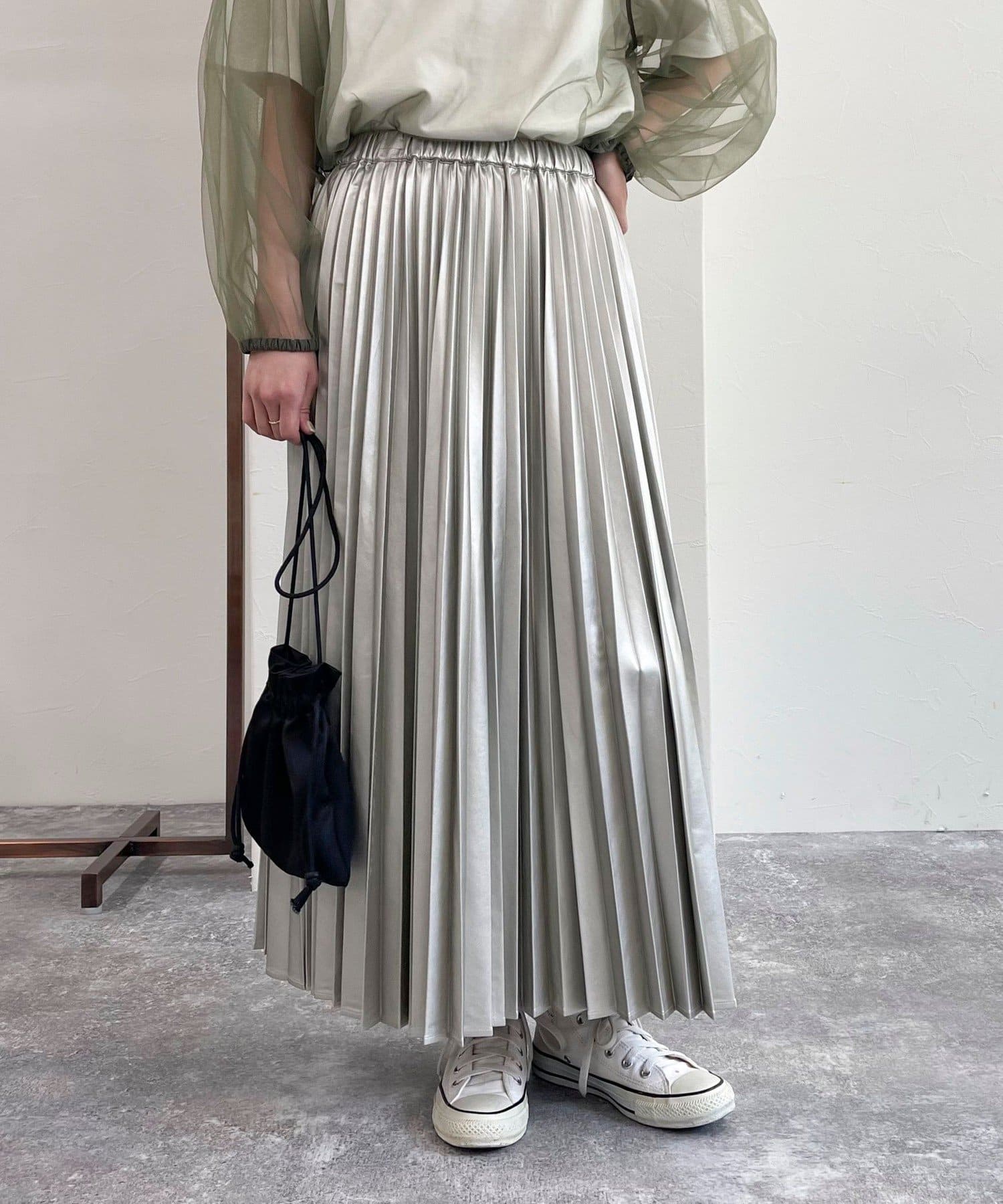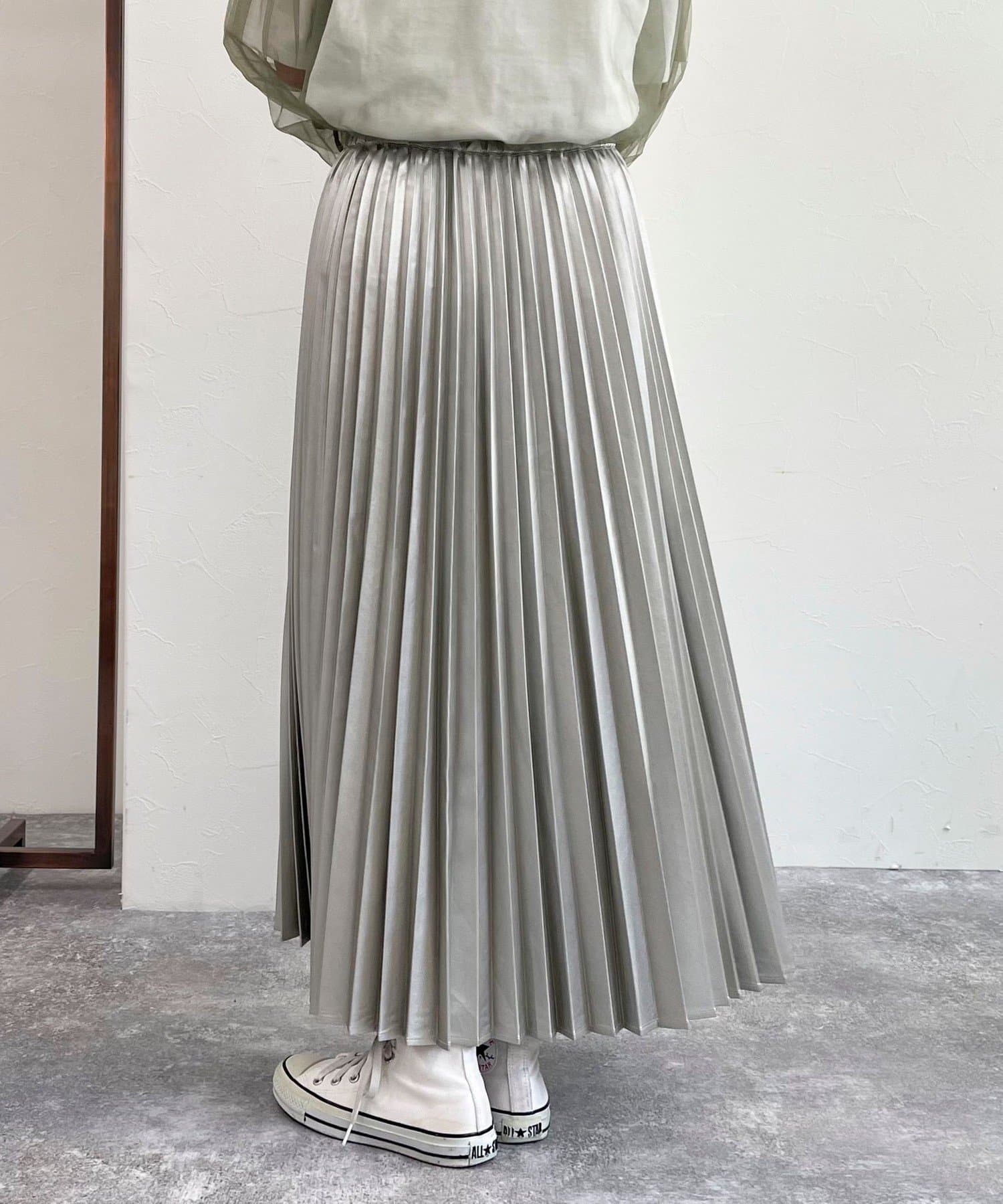 上品なツヤ感がフェミニンな大人のプリーツスカート