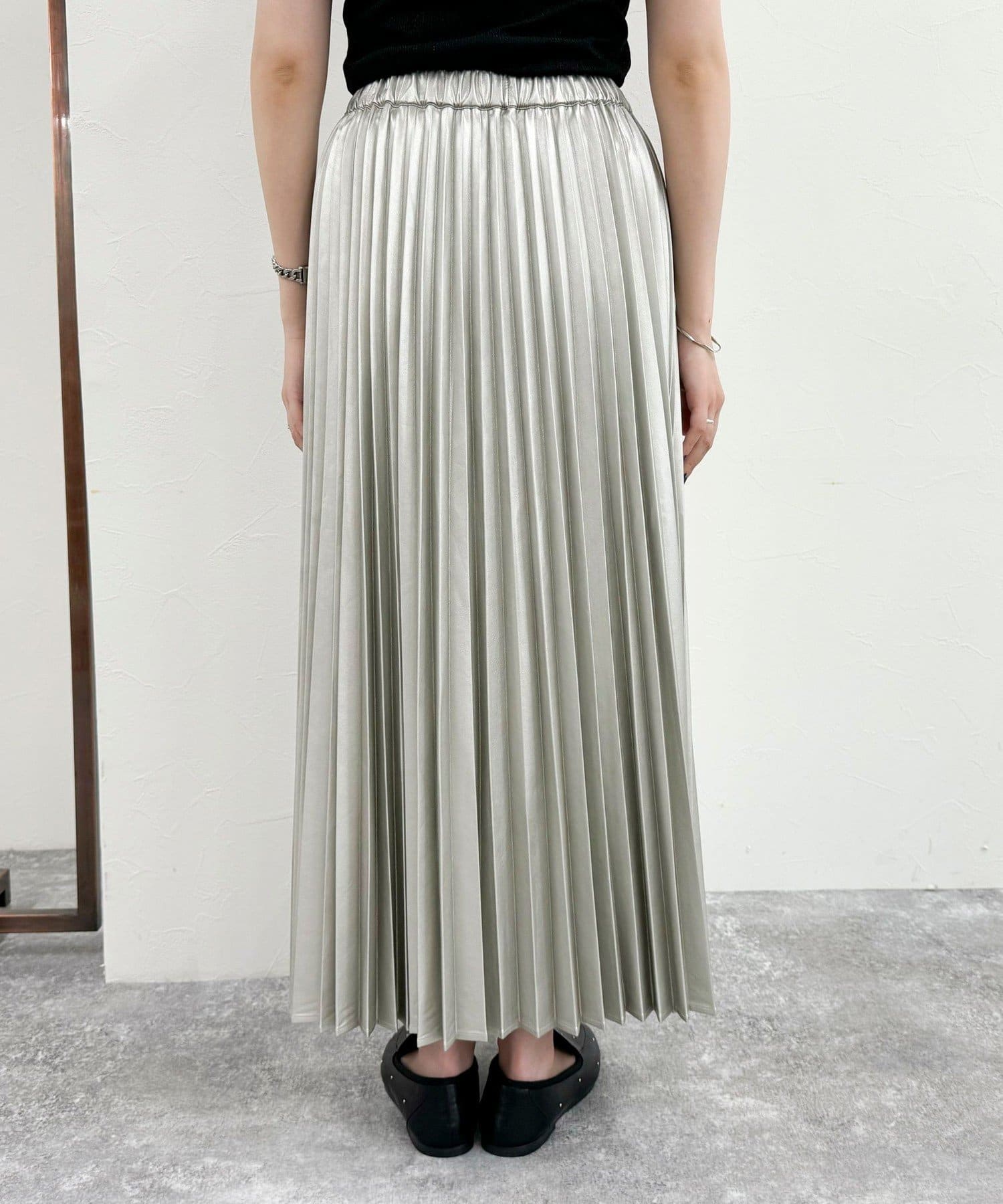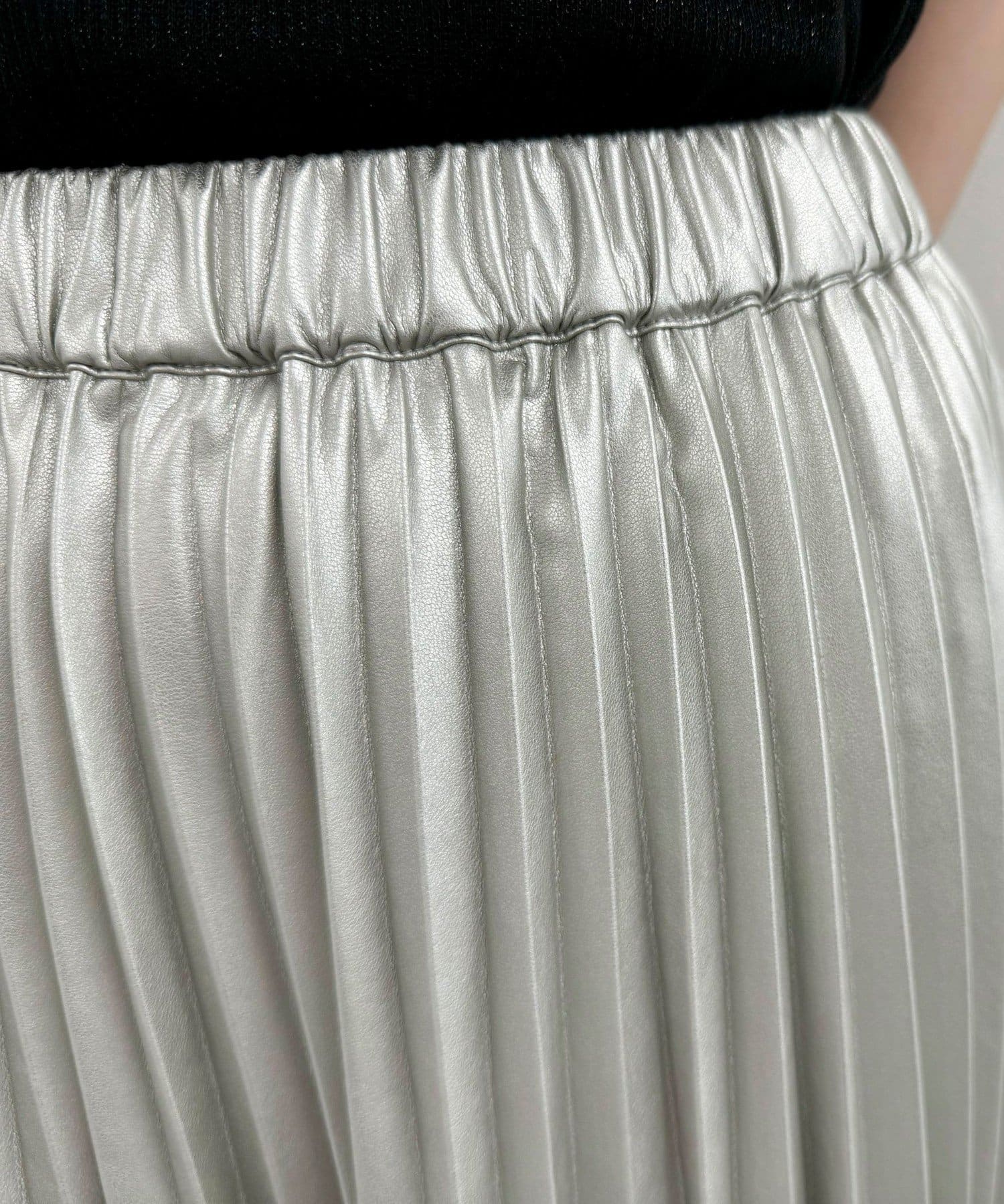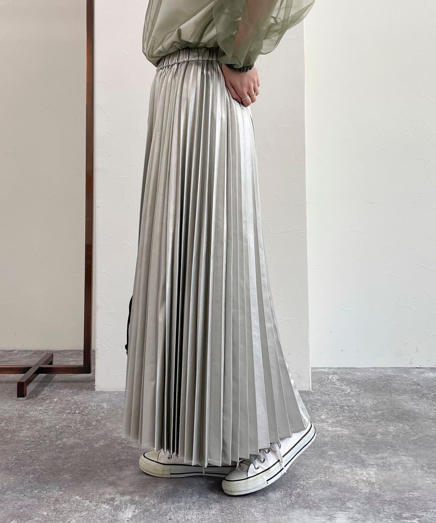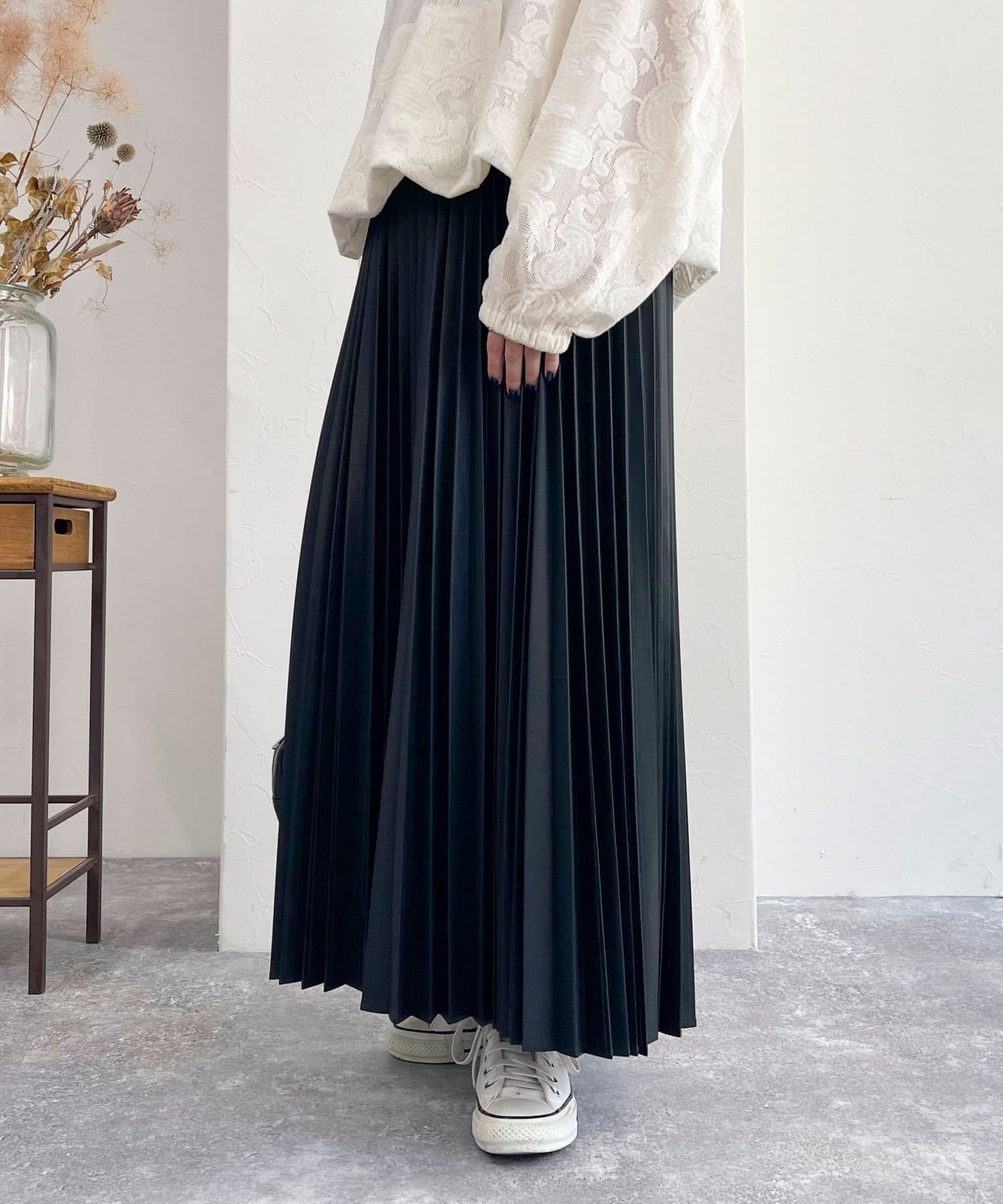 上品なツヤ感がフェミニンな大人のプリーツスカート