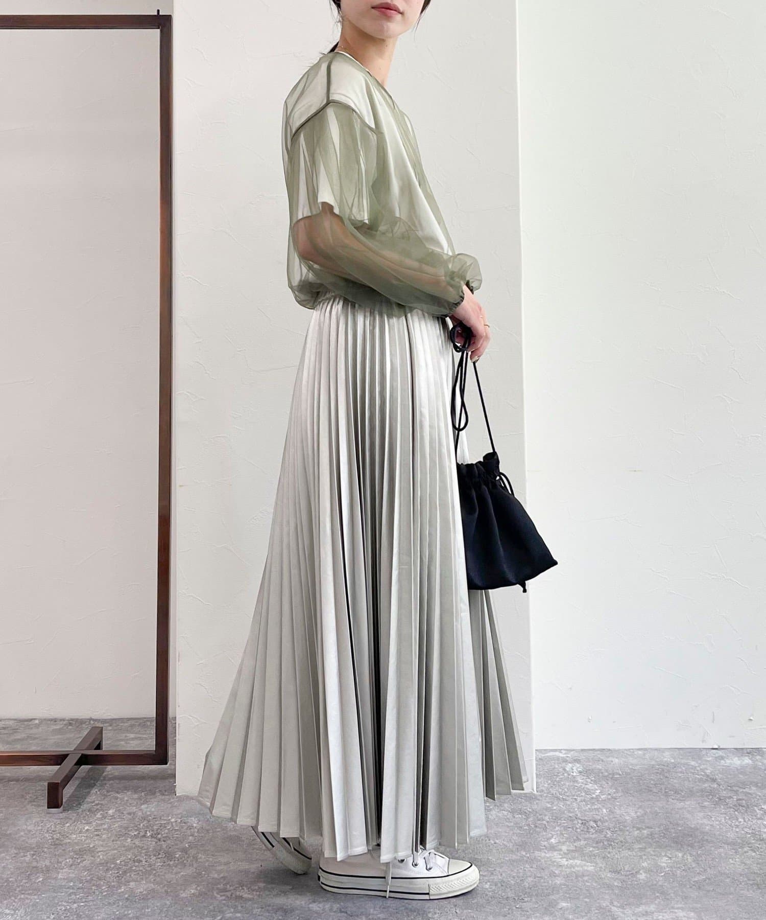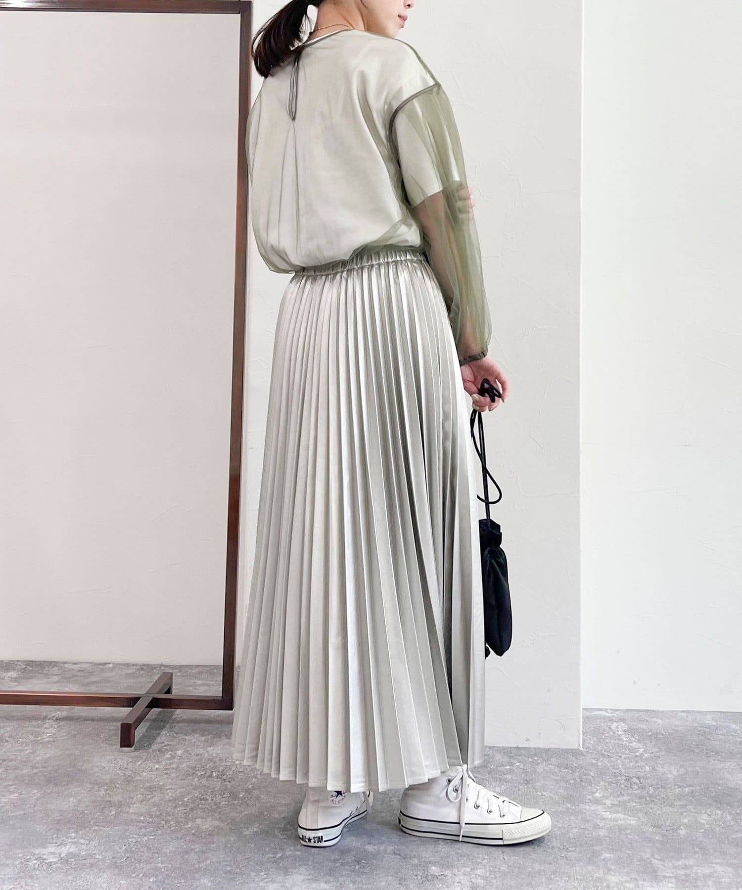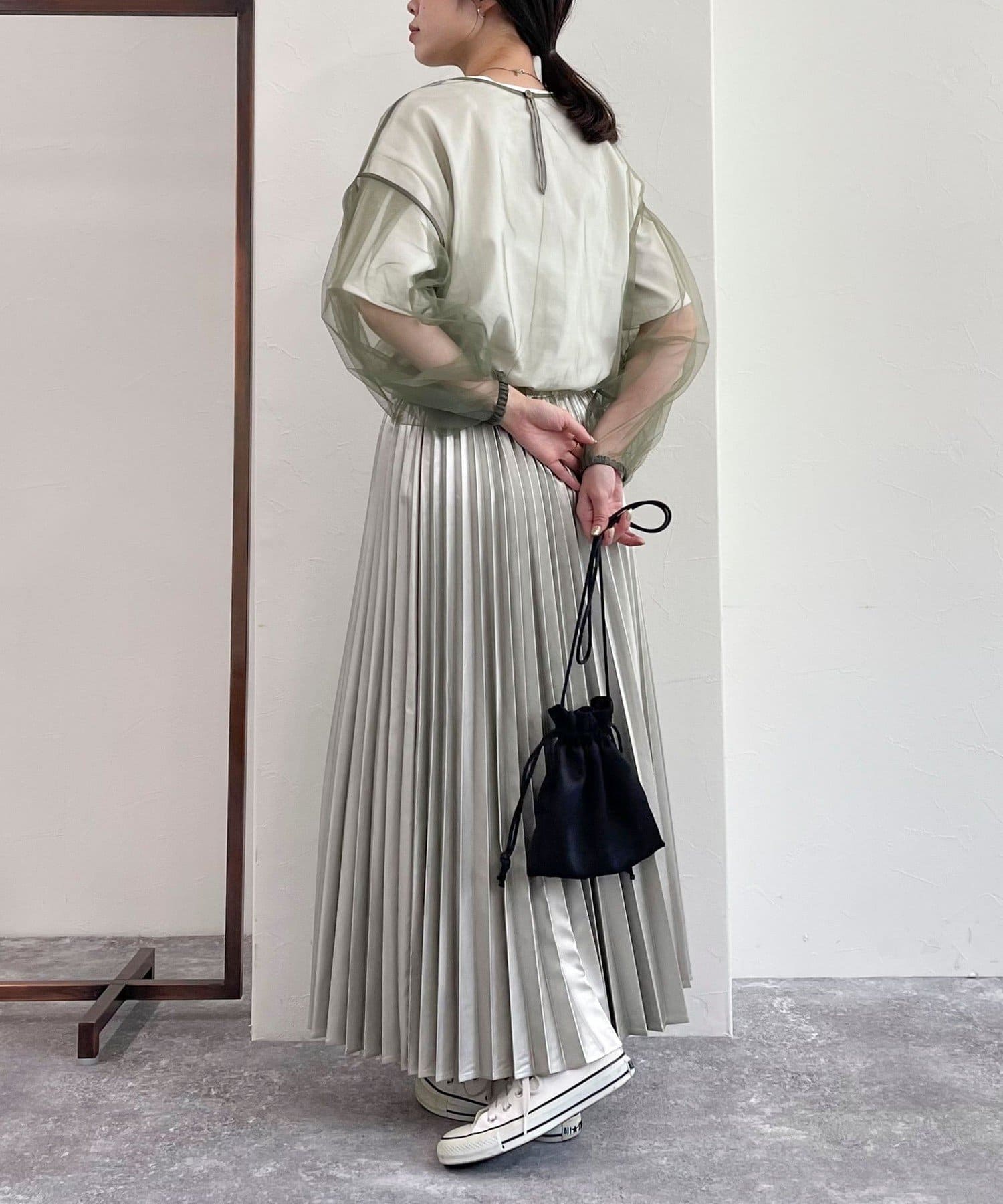 ・広がり過ぎない細かなプリーツは、身体のラインを拾わずすっきりしたシルエットに!