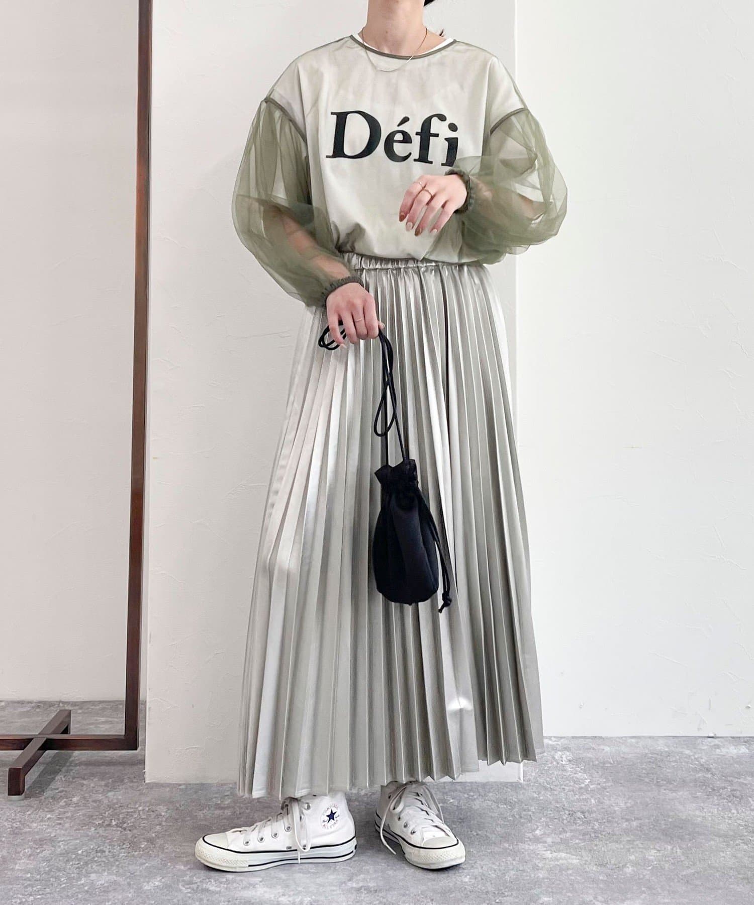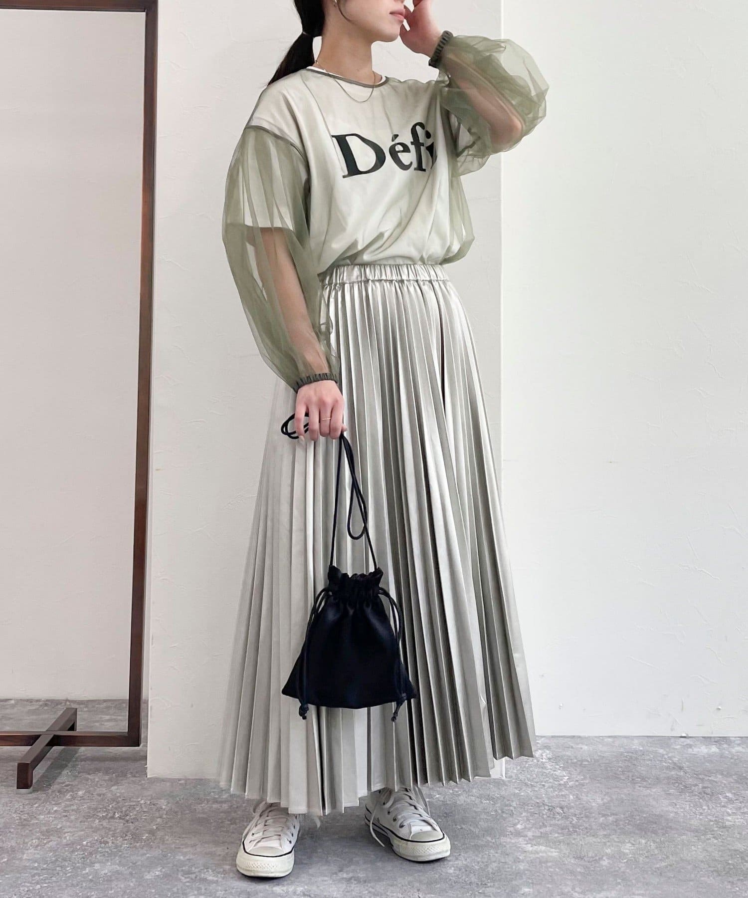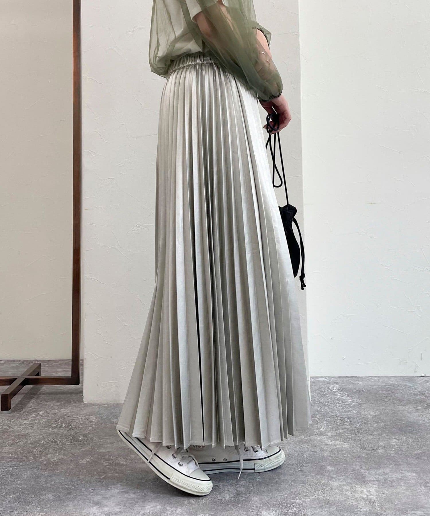 ・広がり過ぎない細かなプリーツは、身体のラインを拾わずすっきりしたシルエットに!
