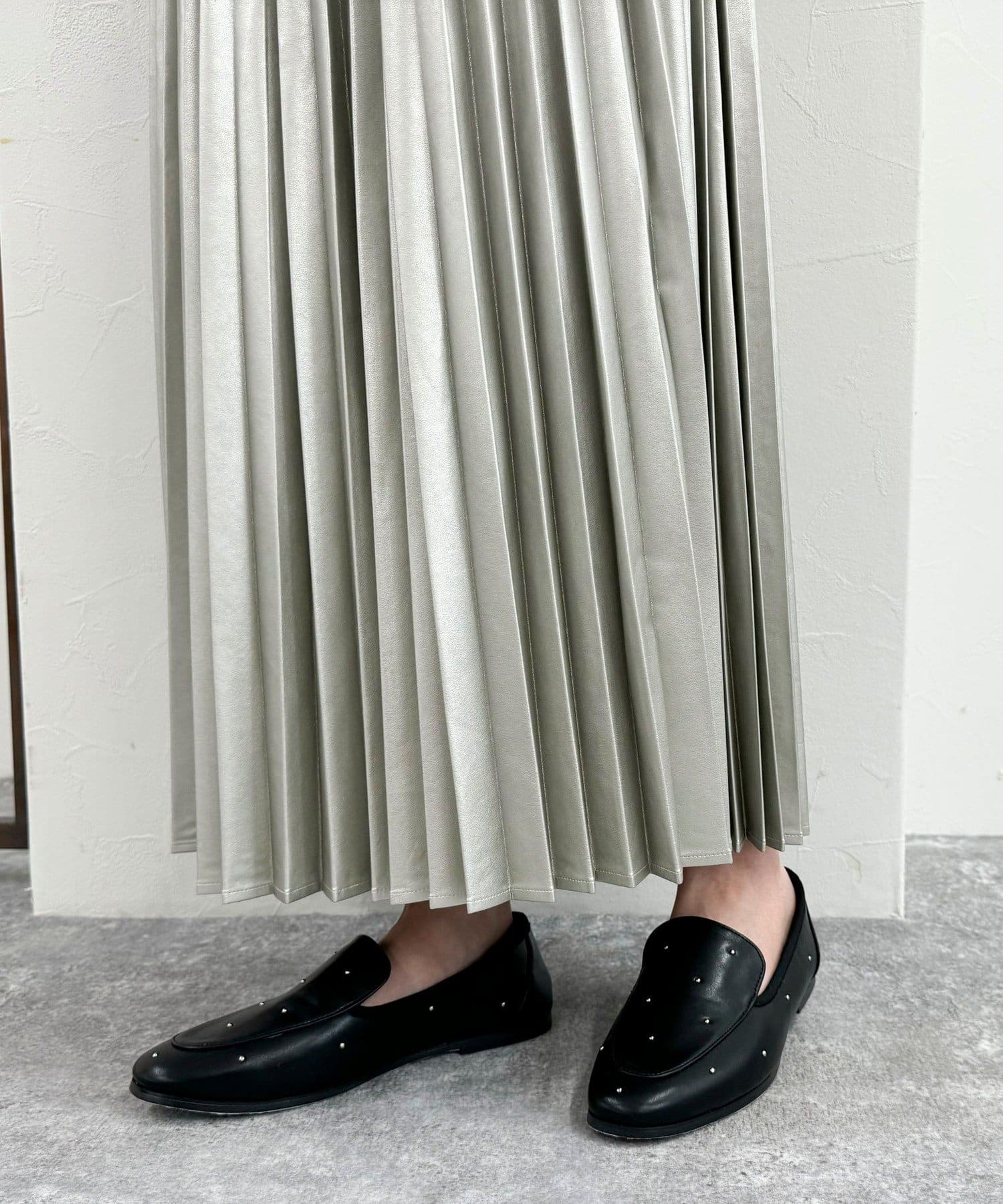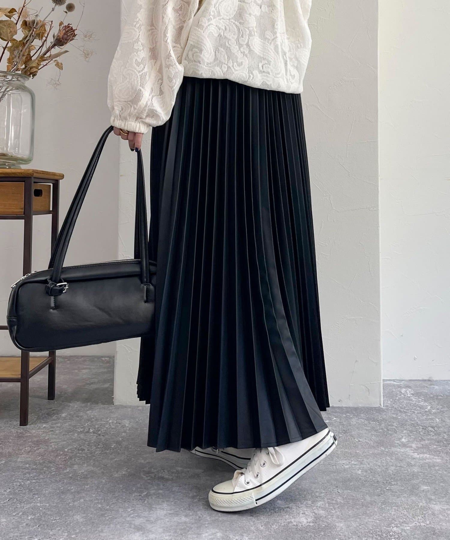・履くだけでクラシックな雰囲気を醸し出す上品なフェイクレザープリーツスカートです