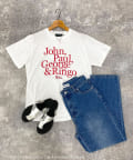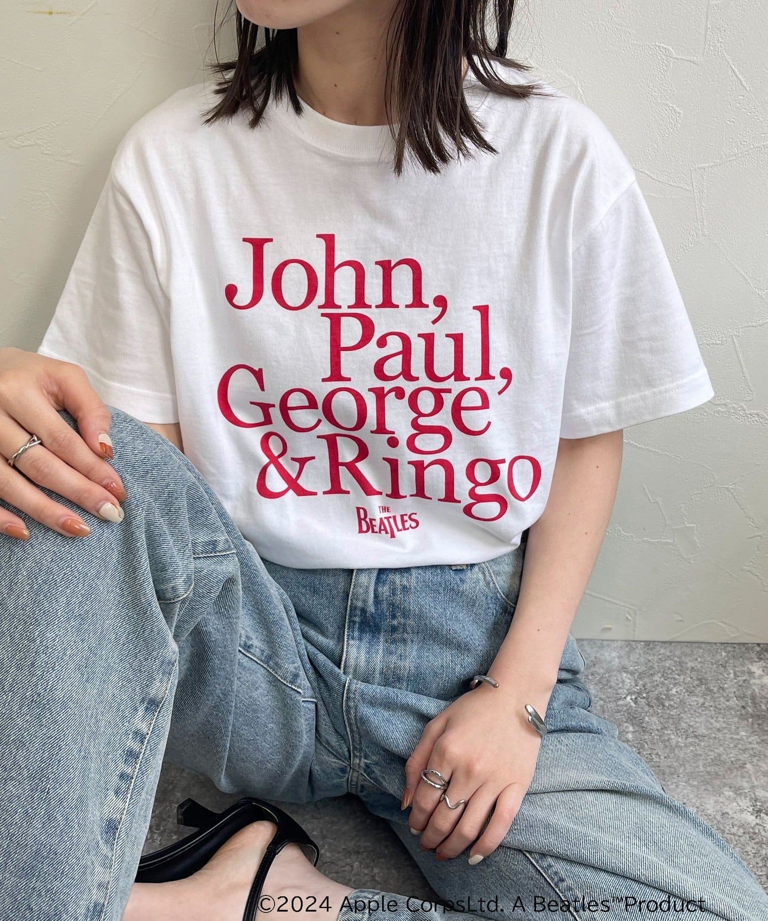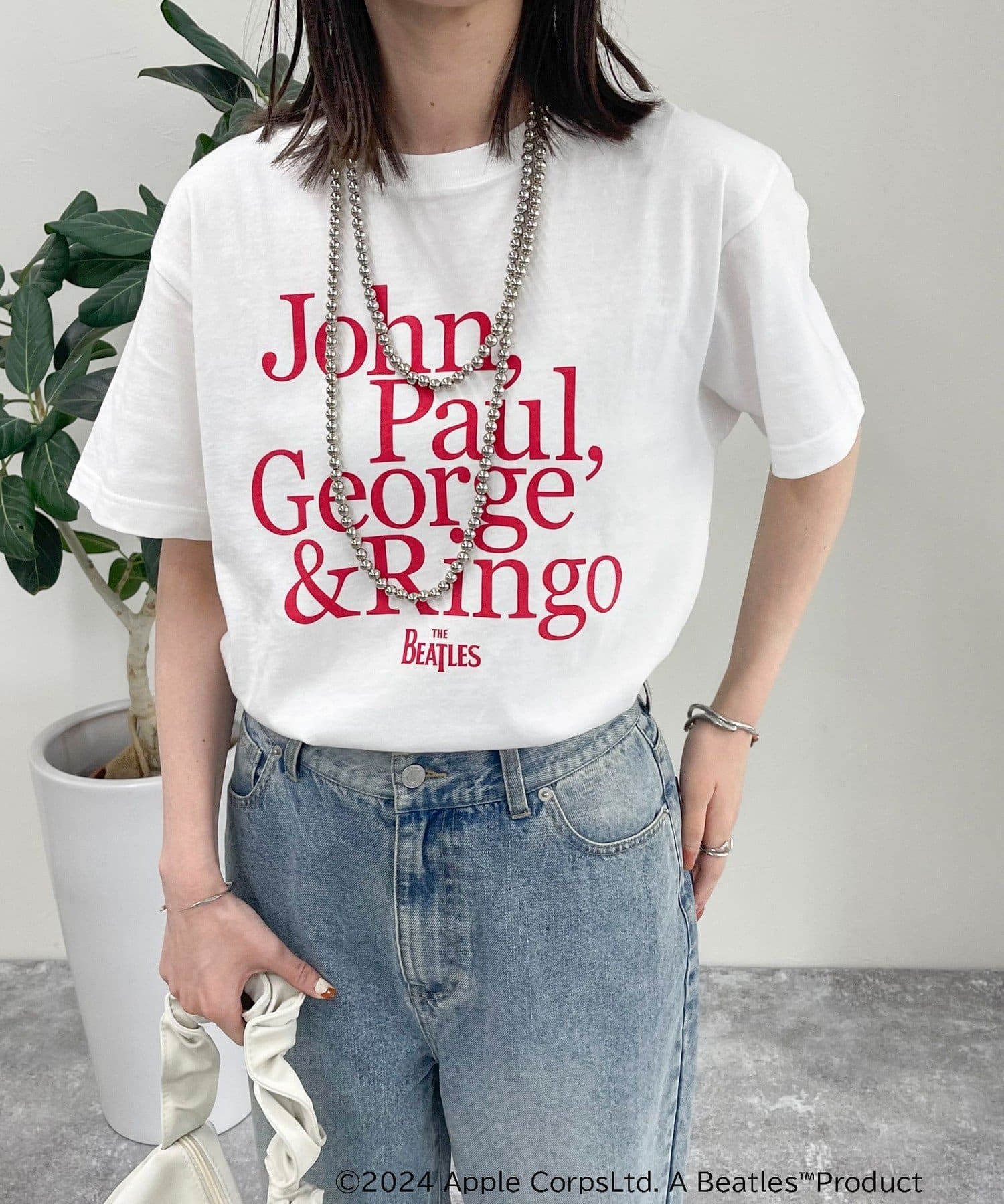 ・ビートルズメンバーの名前がプリントされた英字が目を惹く半袖Tシャツです