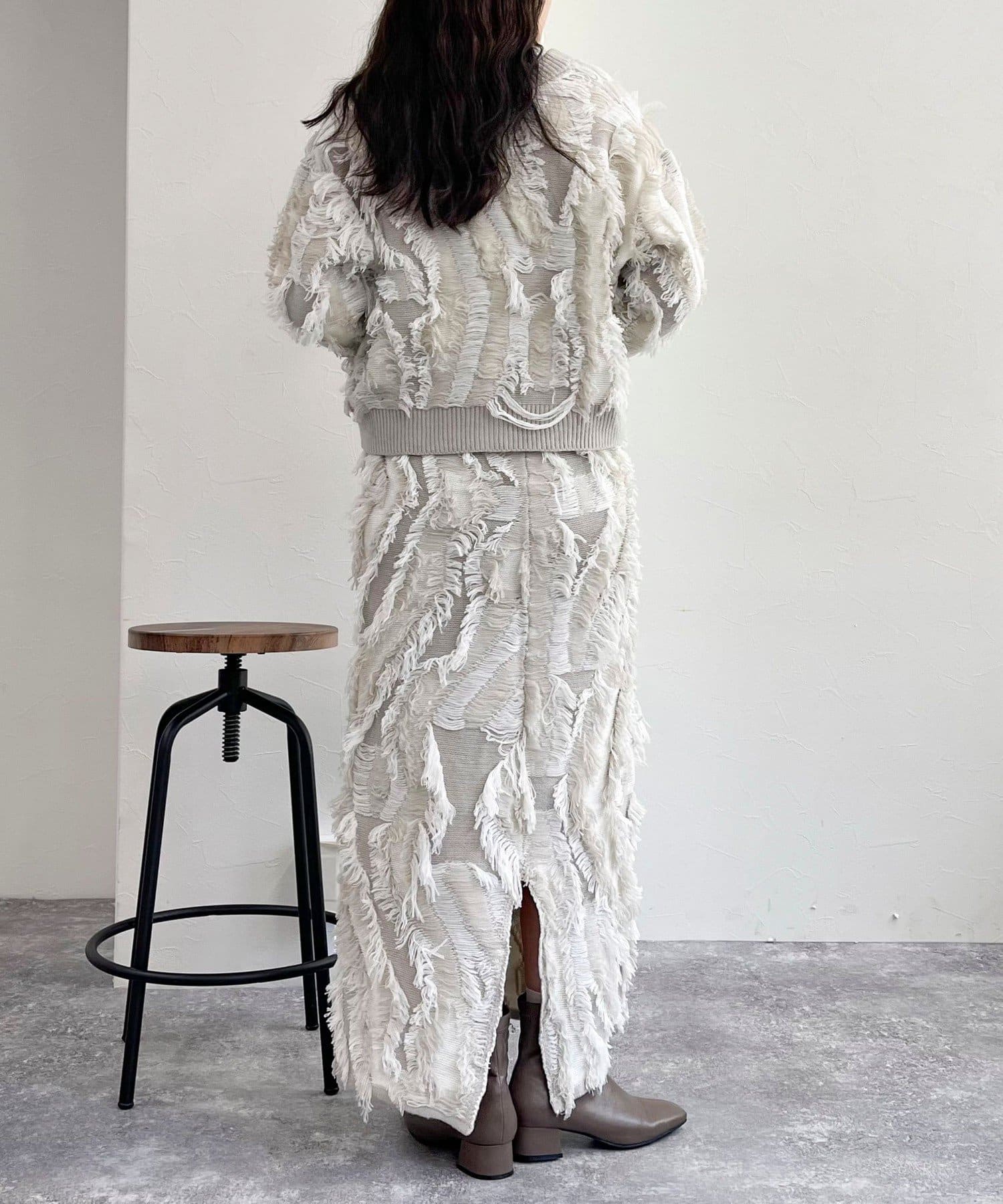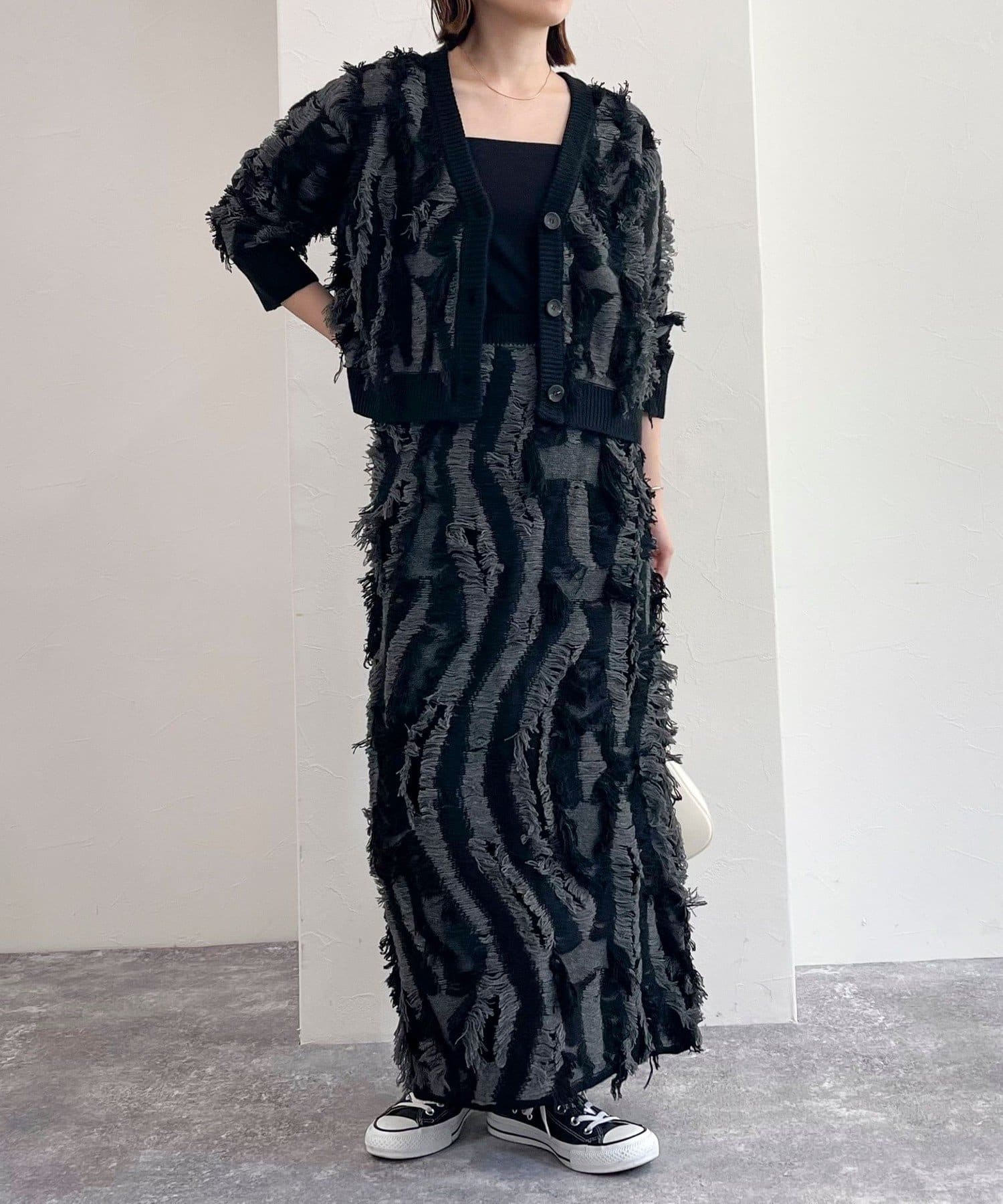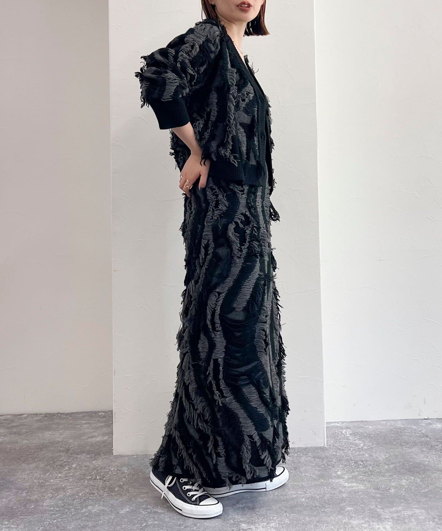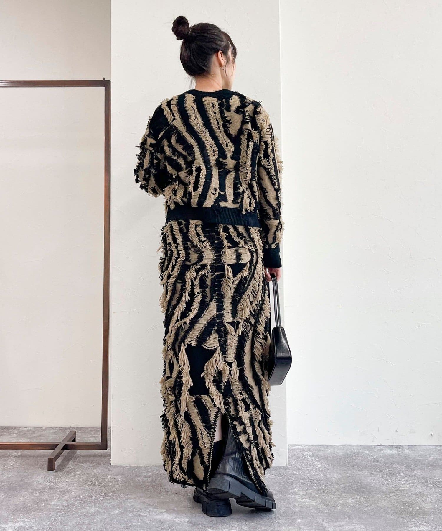 ・動きのあるジャガード地とフリンジが目を惹く華やかな1着!
