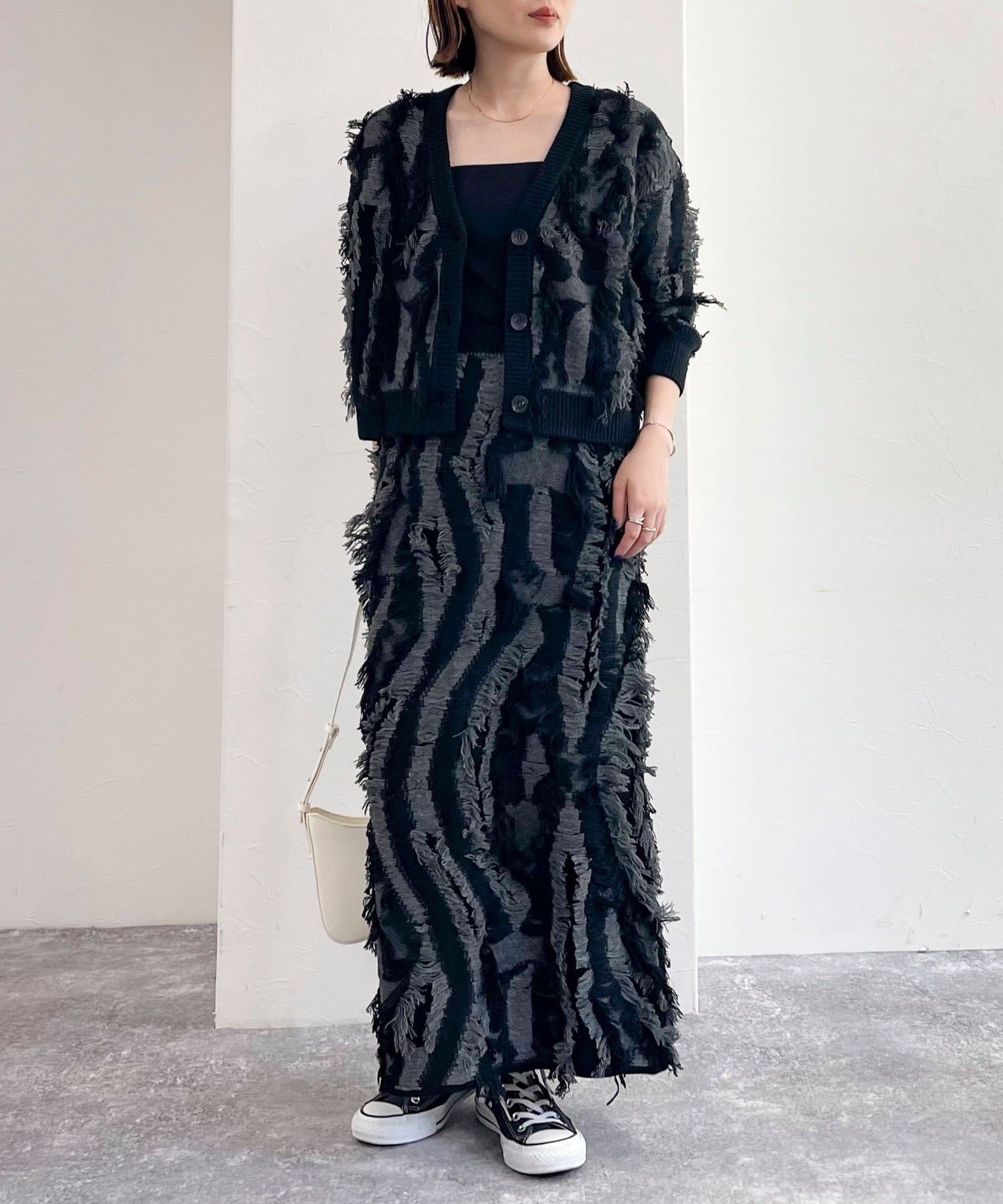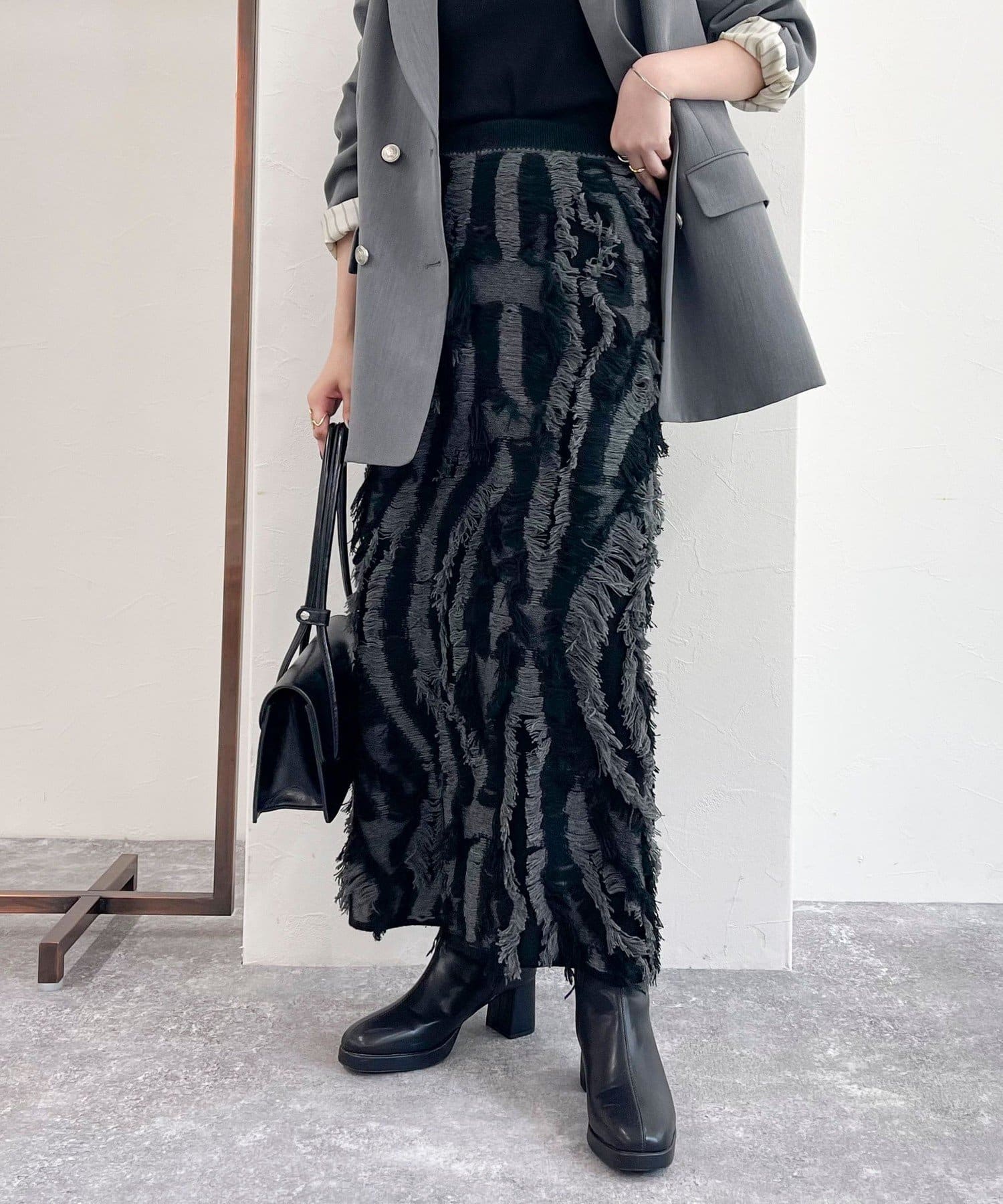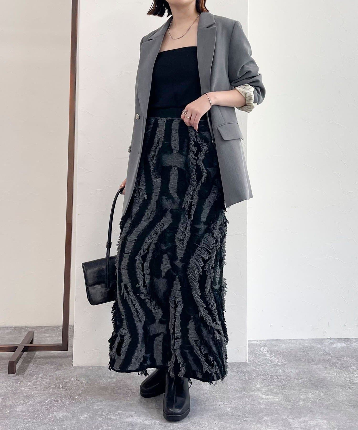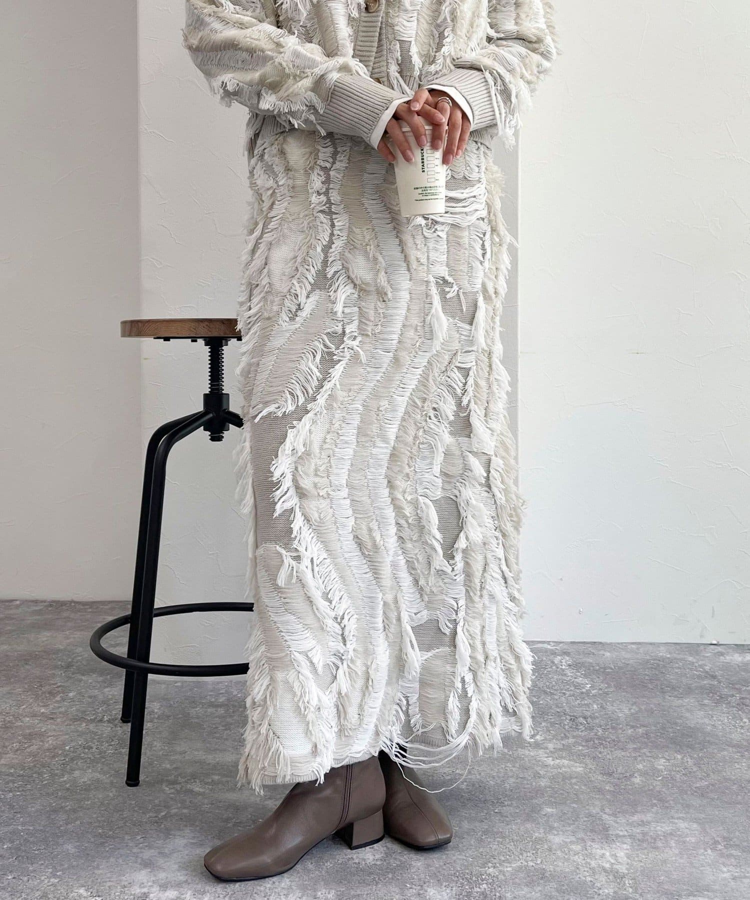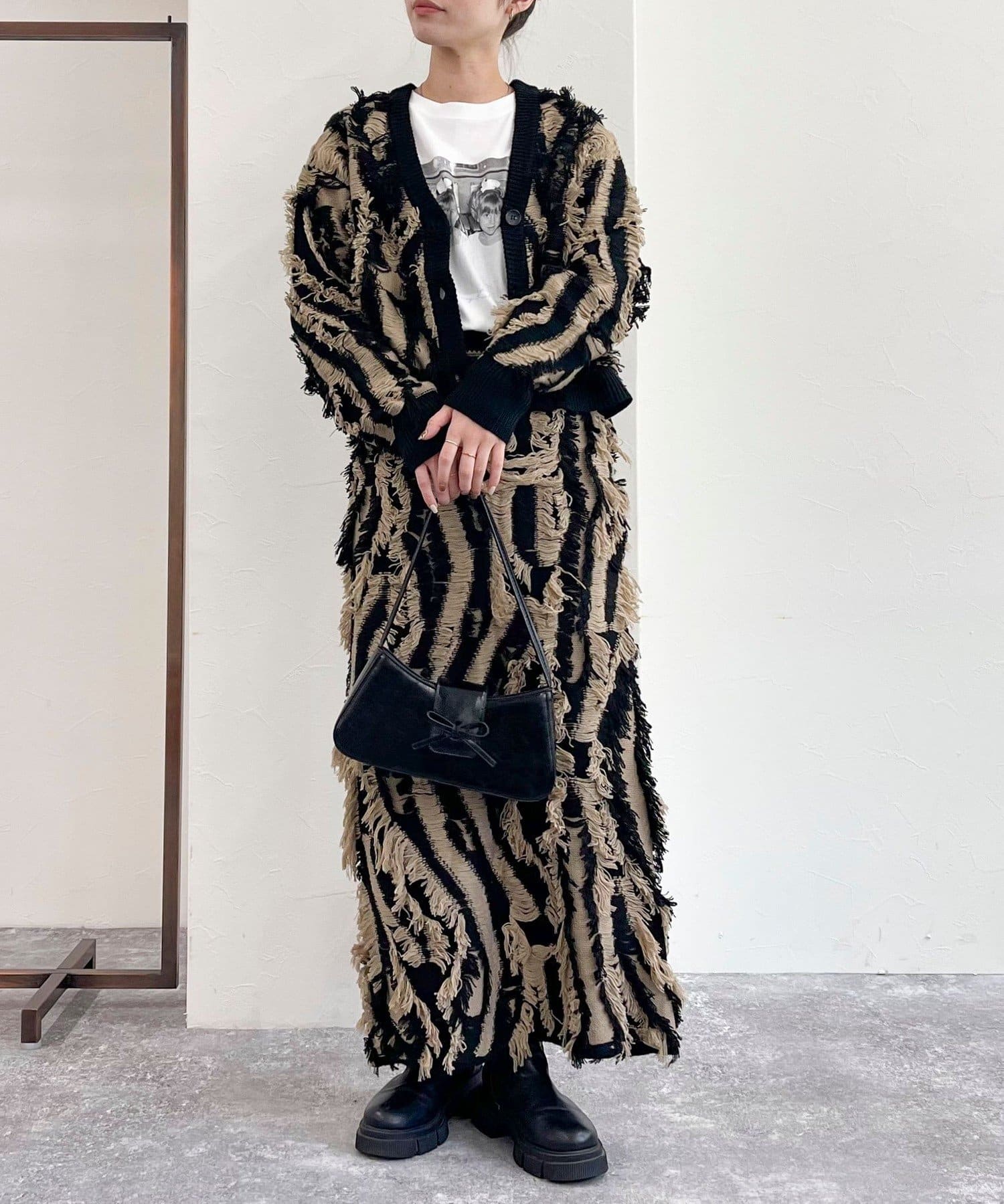 ・動きのあるジャガード地とフリンジが目を惹く華やかな1着!