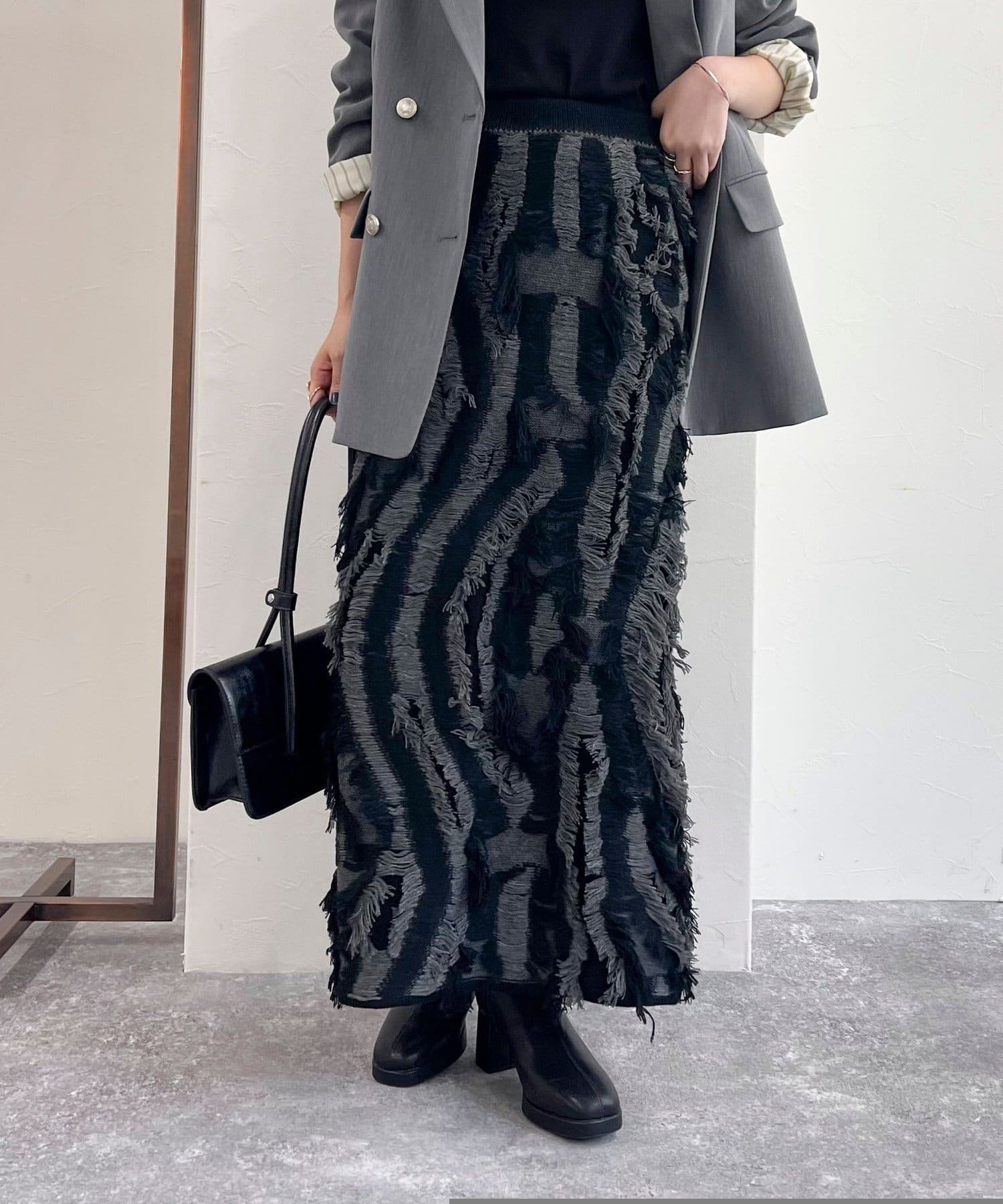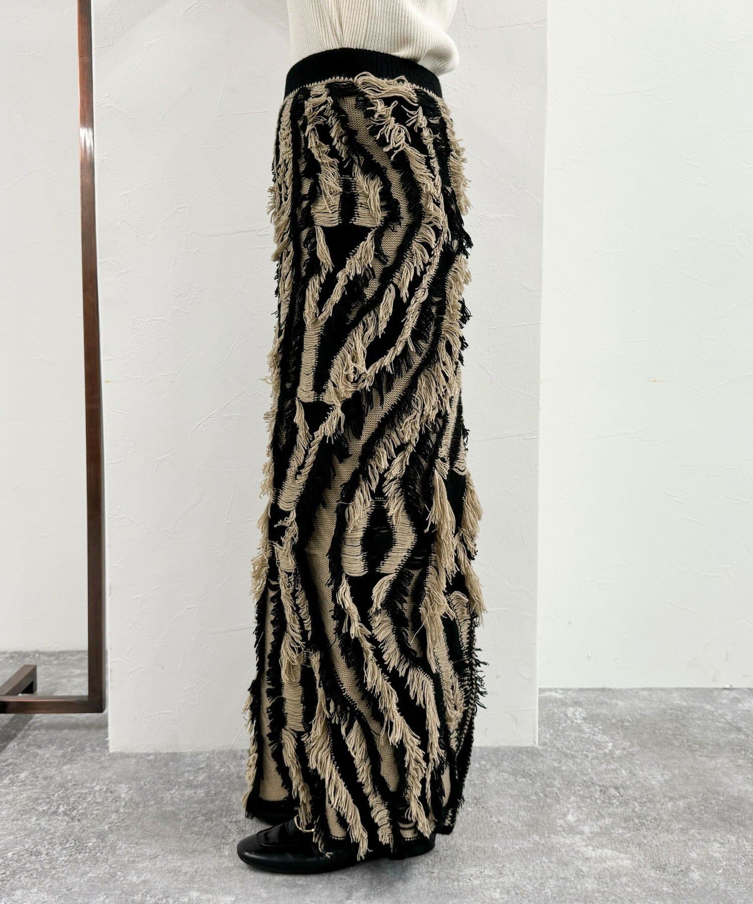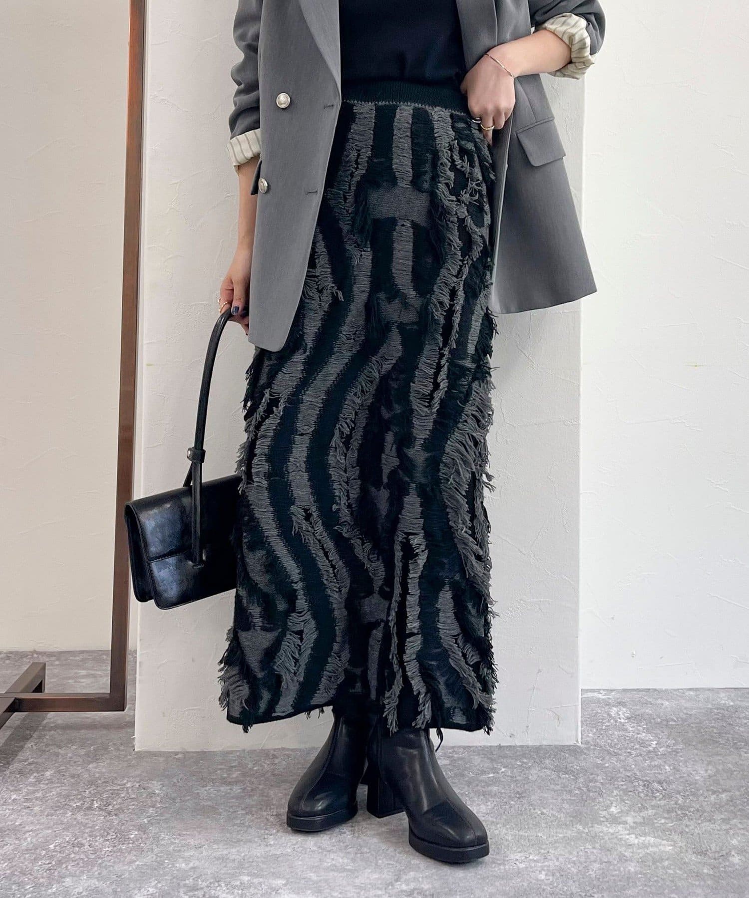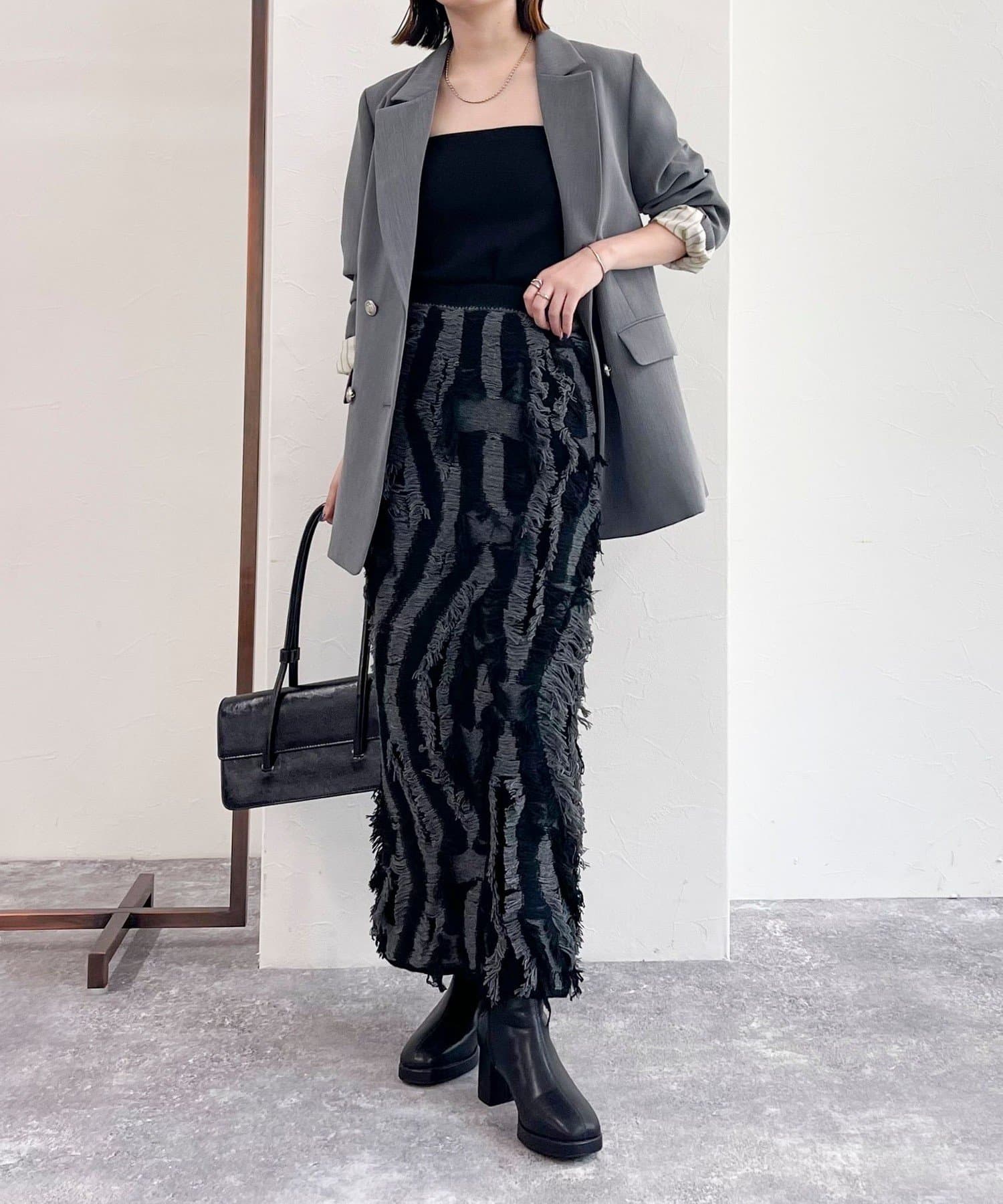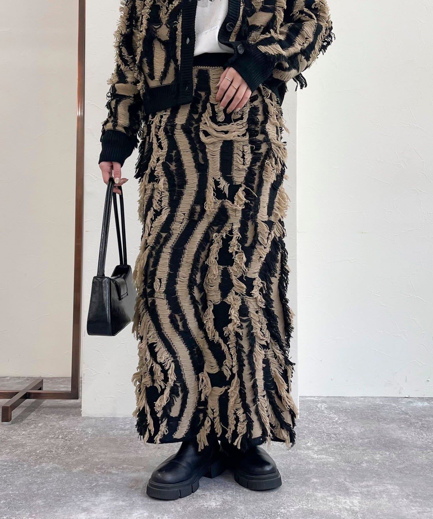 ・動きのあるジャガード地とフリンジが目を惹く華やかな1着!