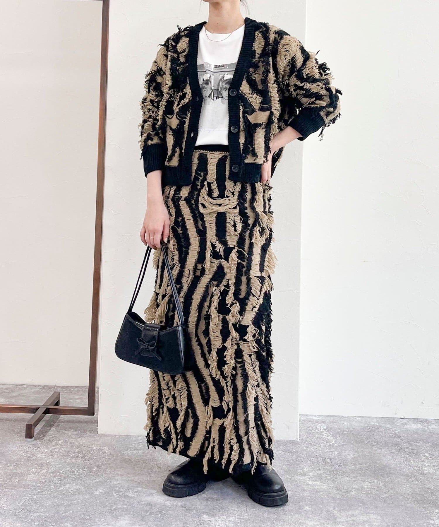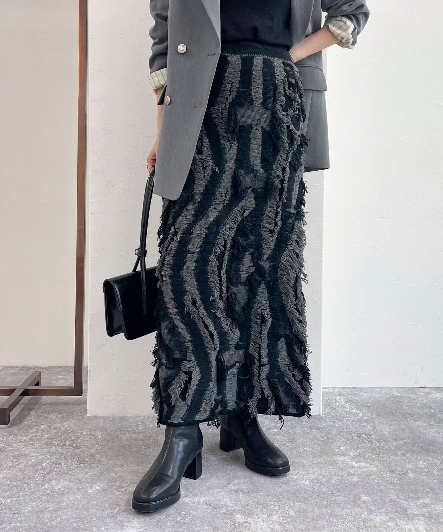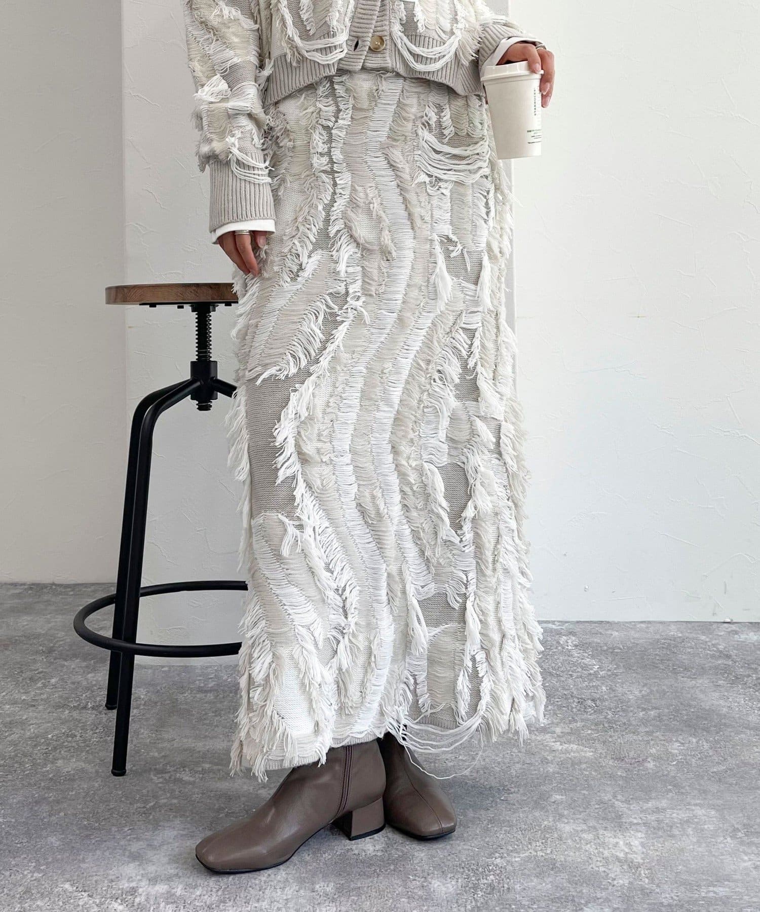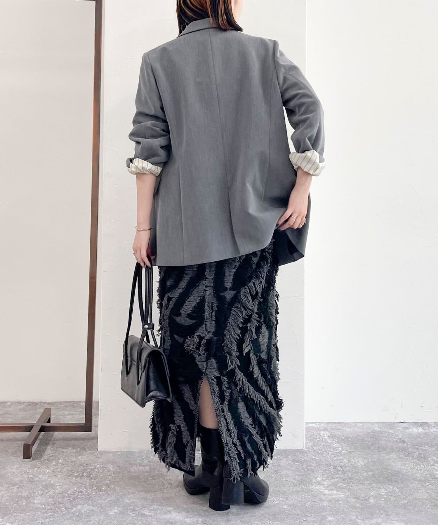 ・動きのあるジャガード地とフリンジが目を惹く華やかな1着!