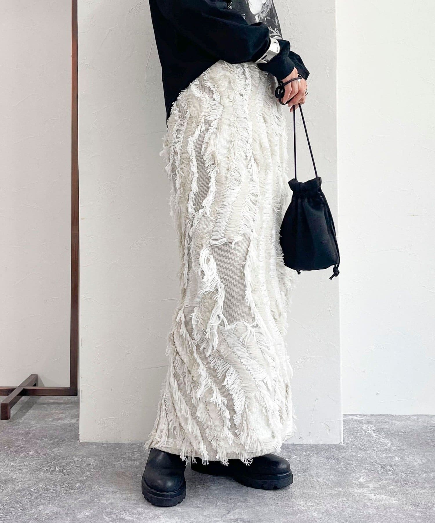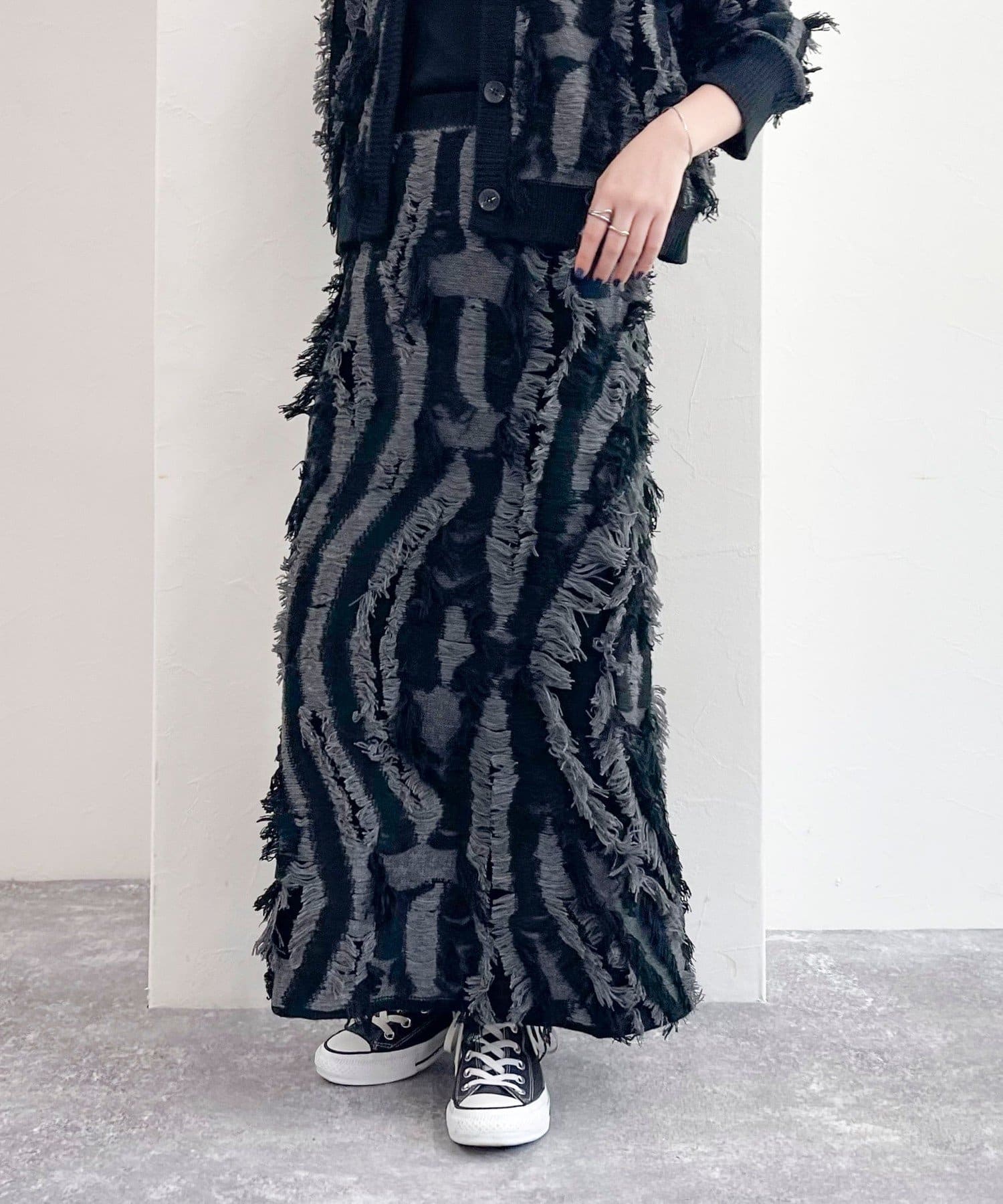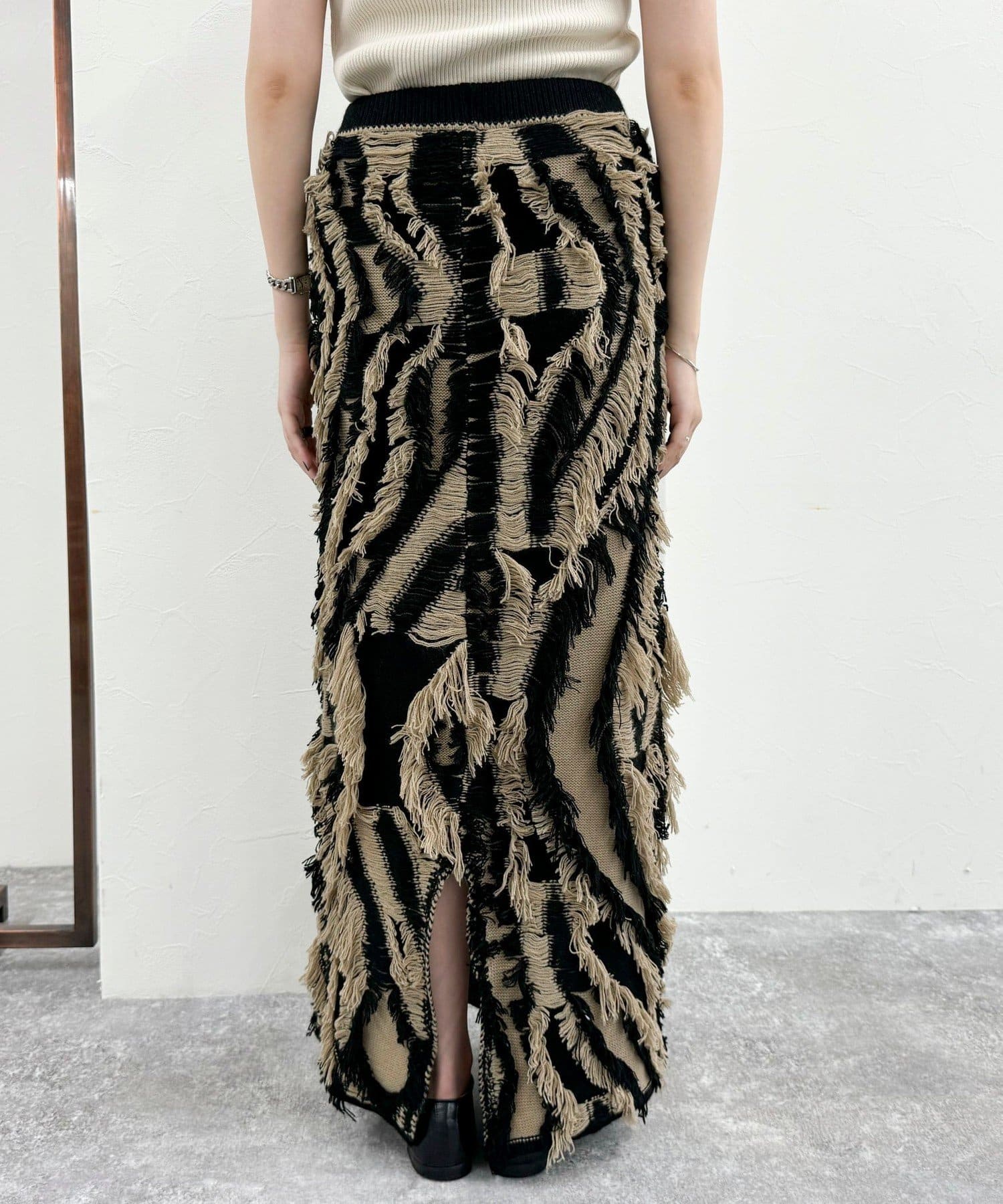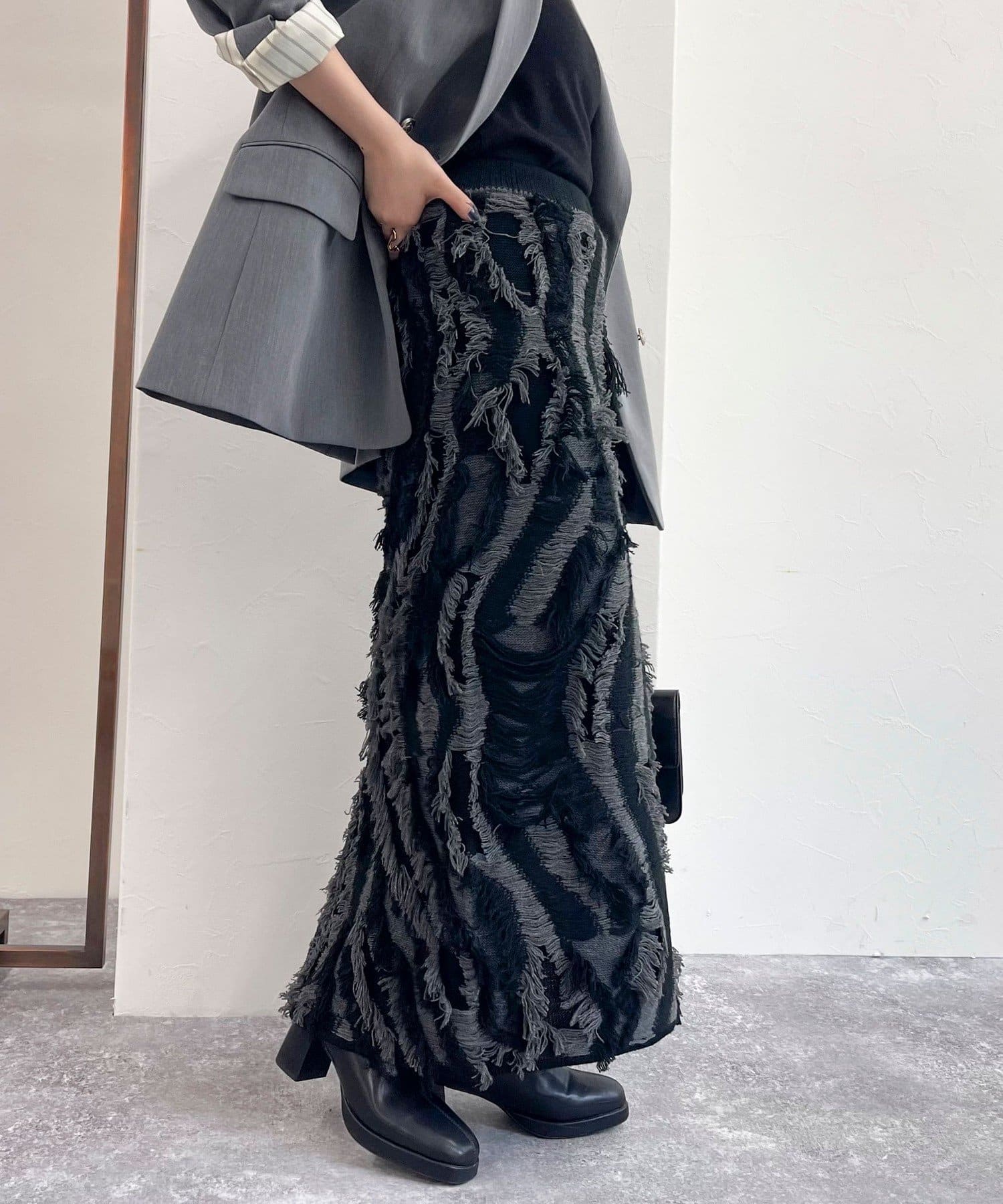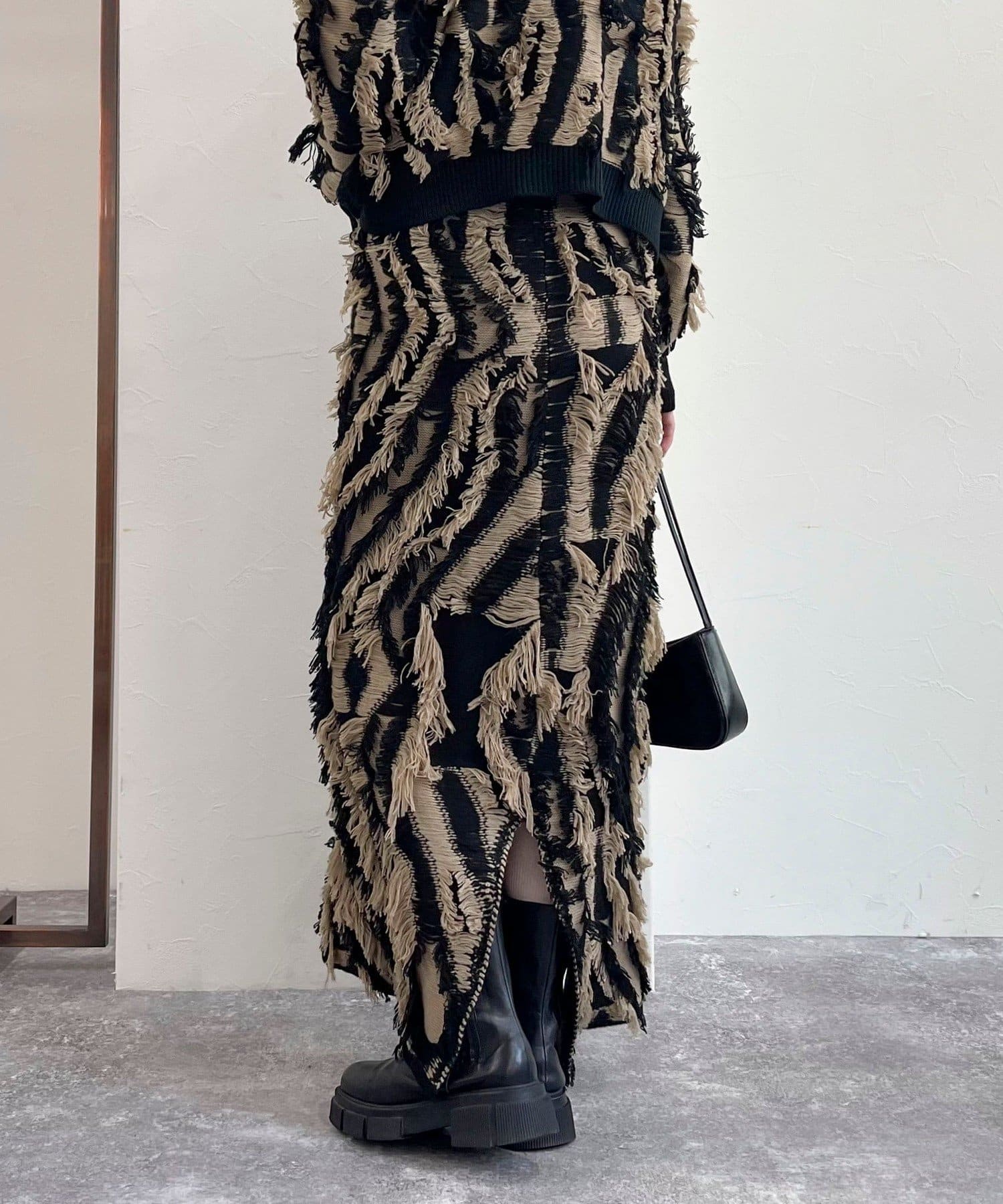 ・動きのあるジャガード地とフリンジが目を惹く華やかな1着!