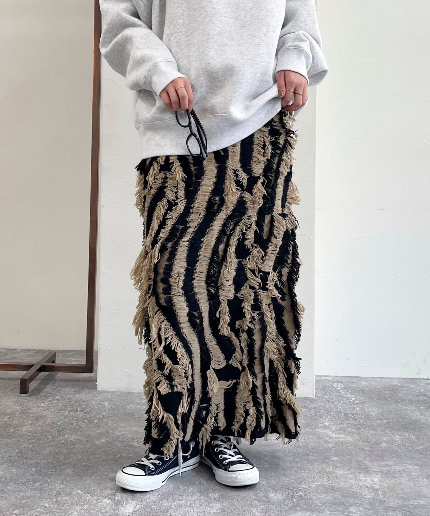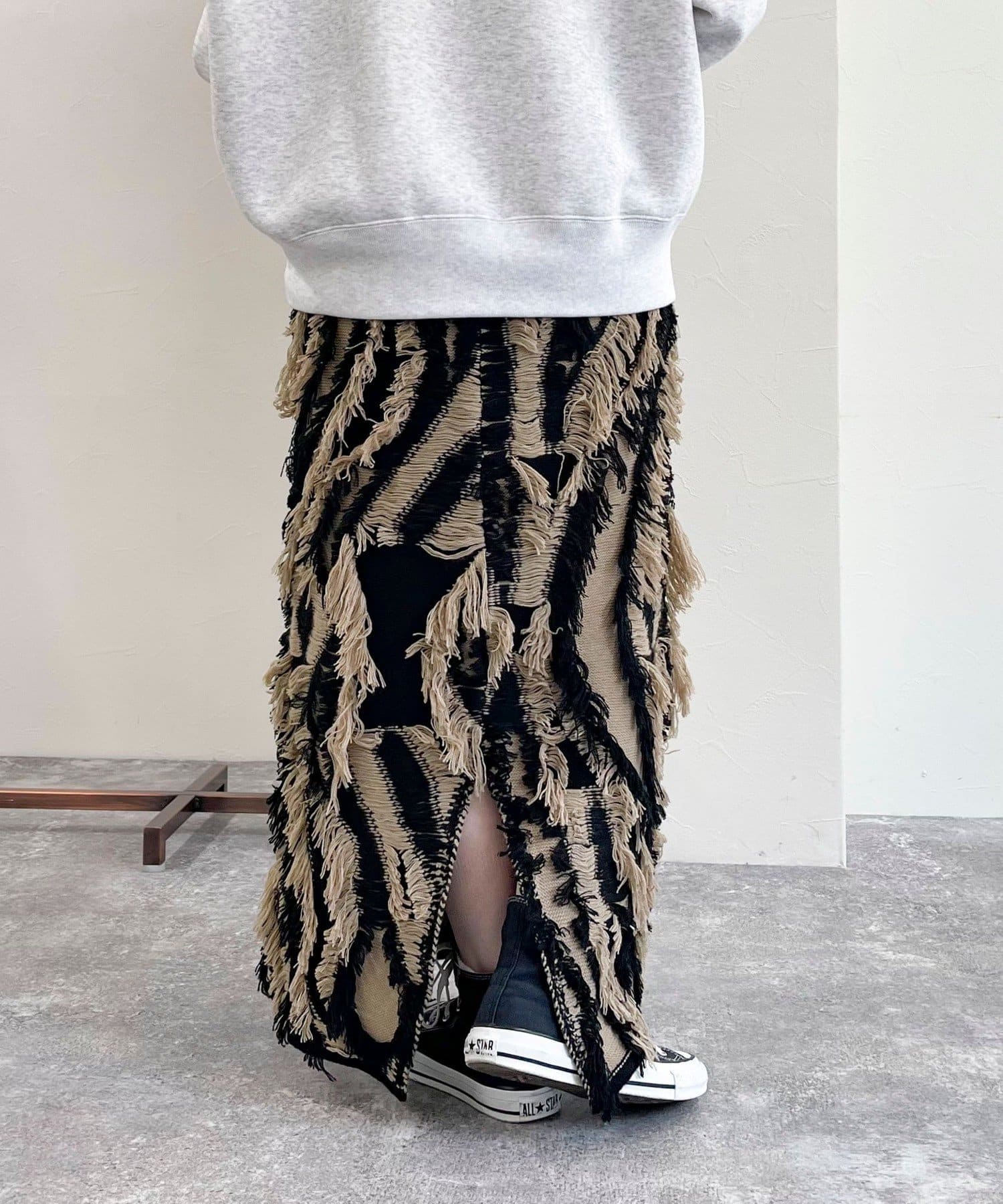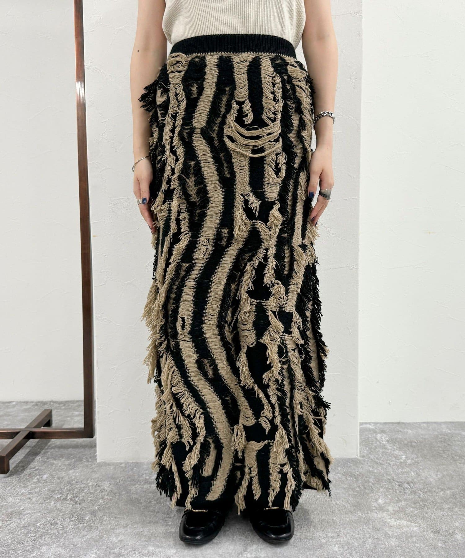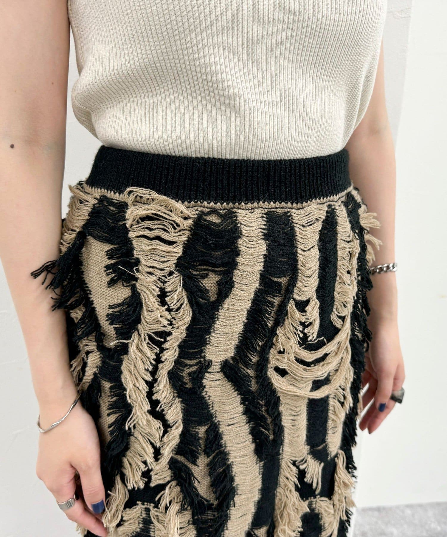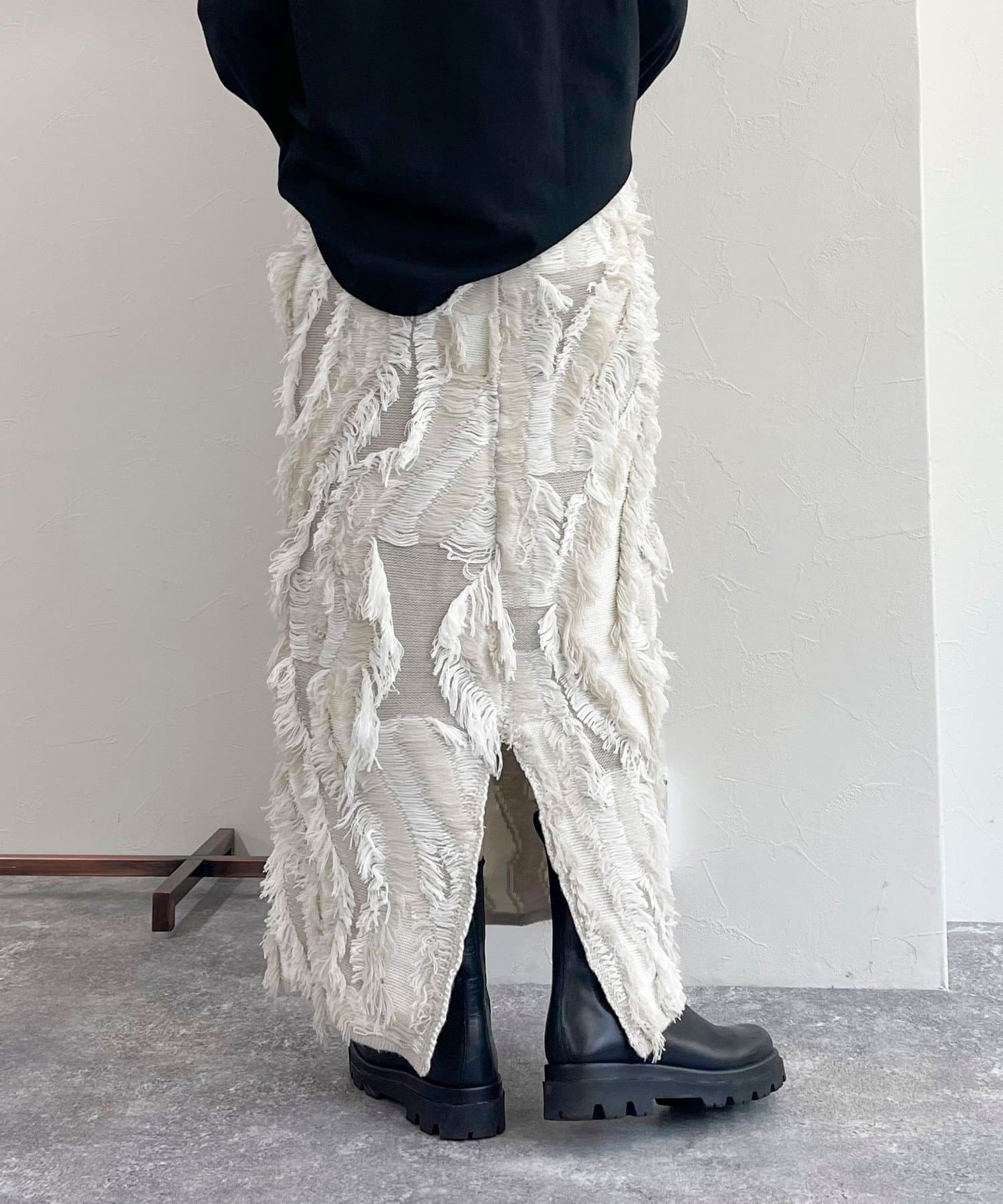 ・動きのあるジャガード地とフリンジが目を惹く華やかな1着!