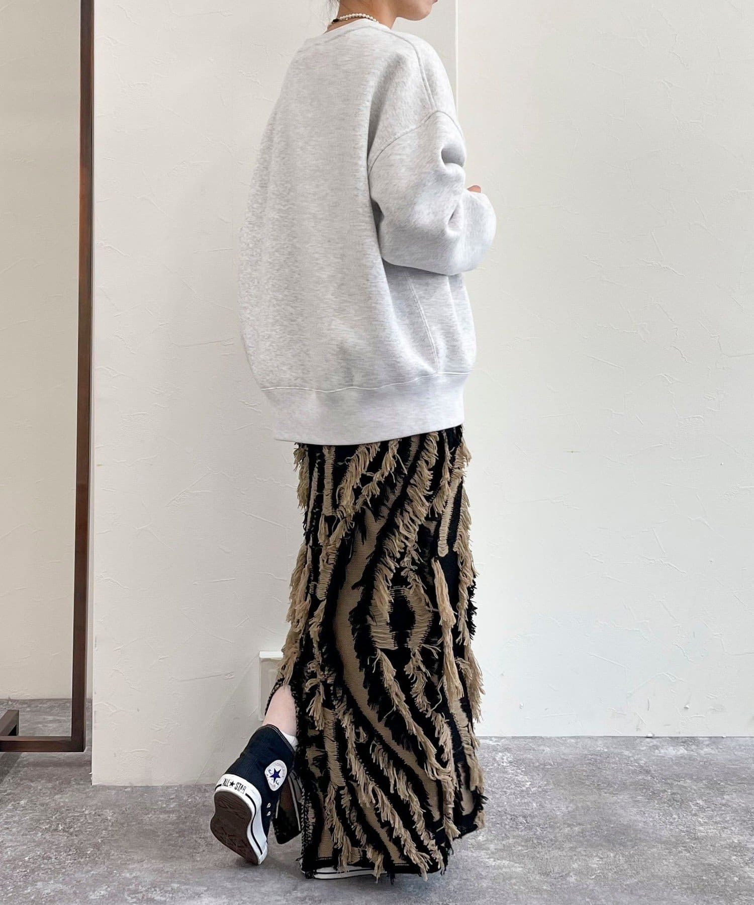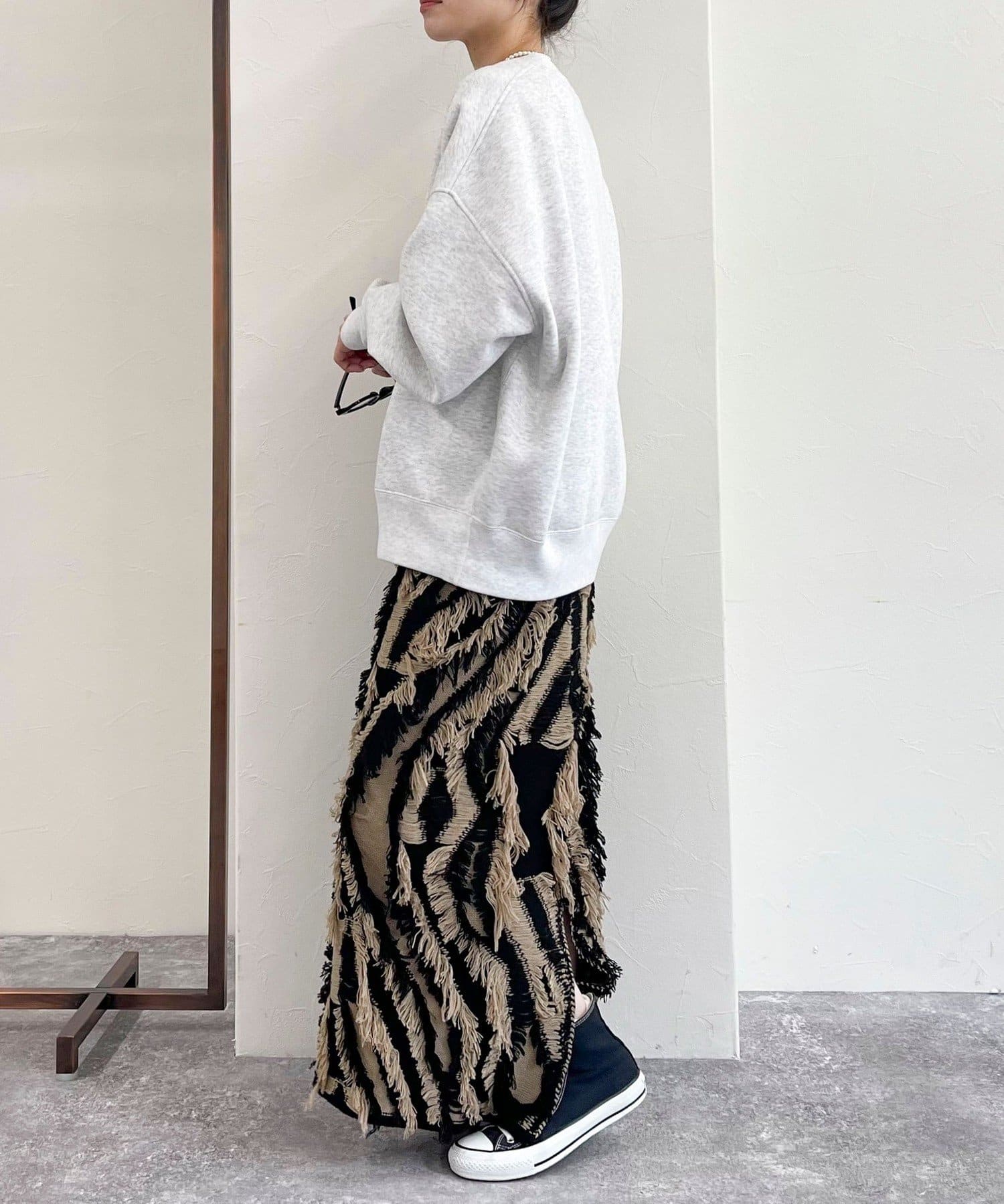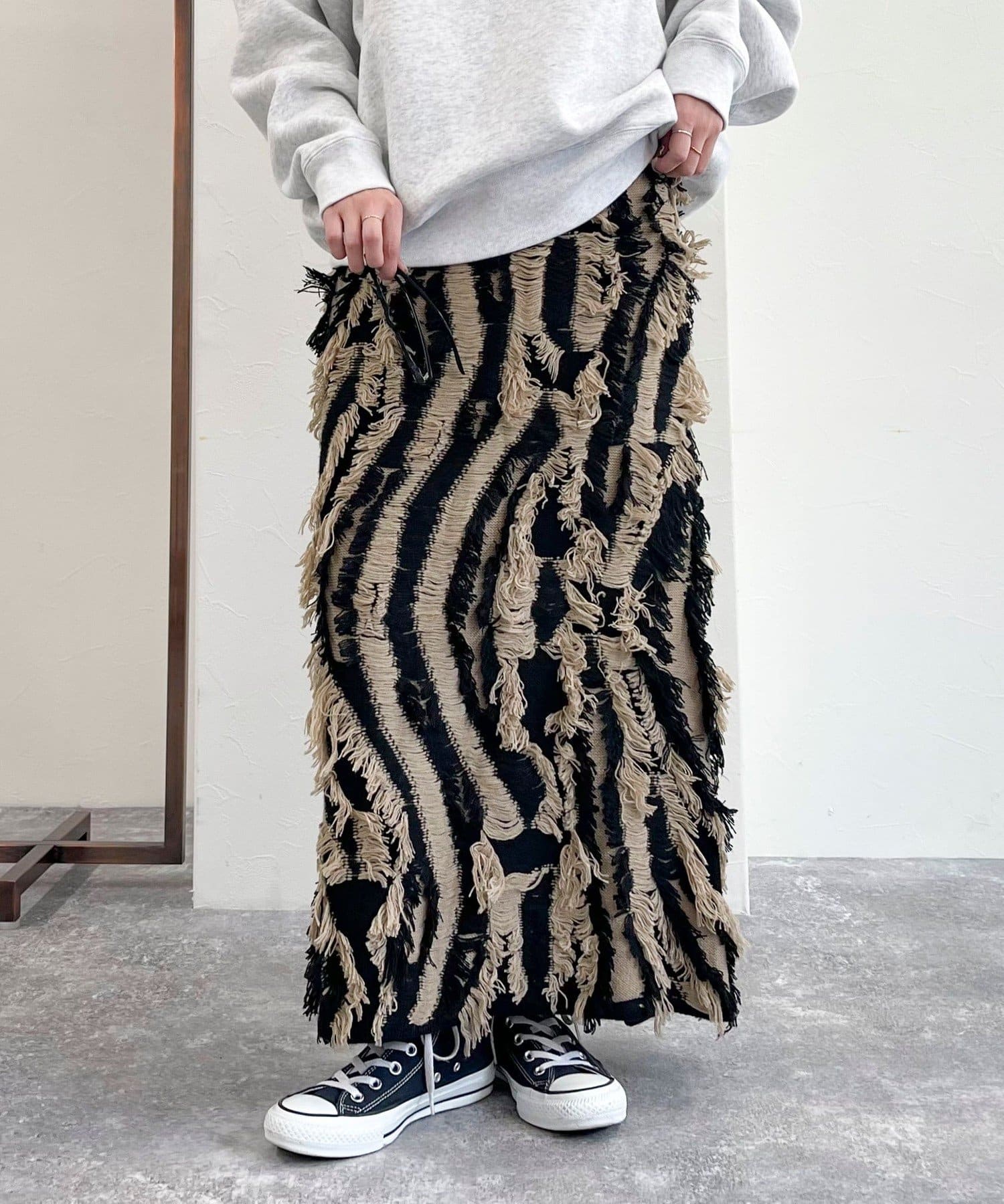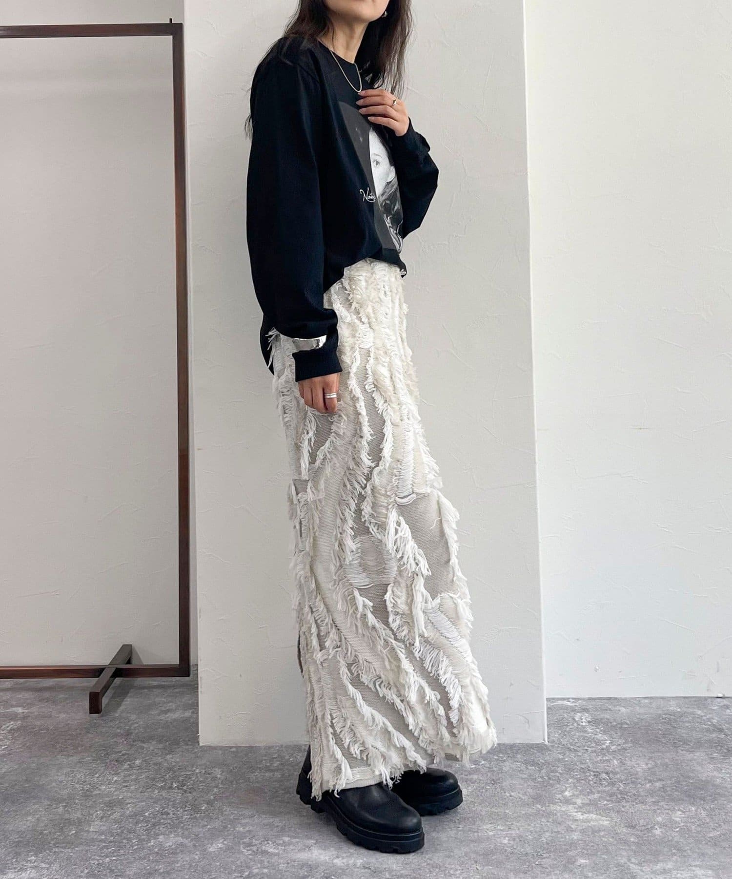 ・動きのあるジャガード地とフリンジが目を惹く華やかな1着!