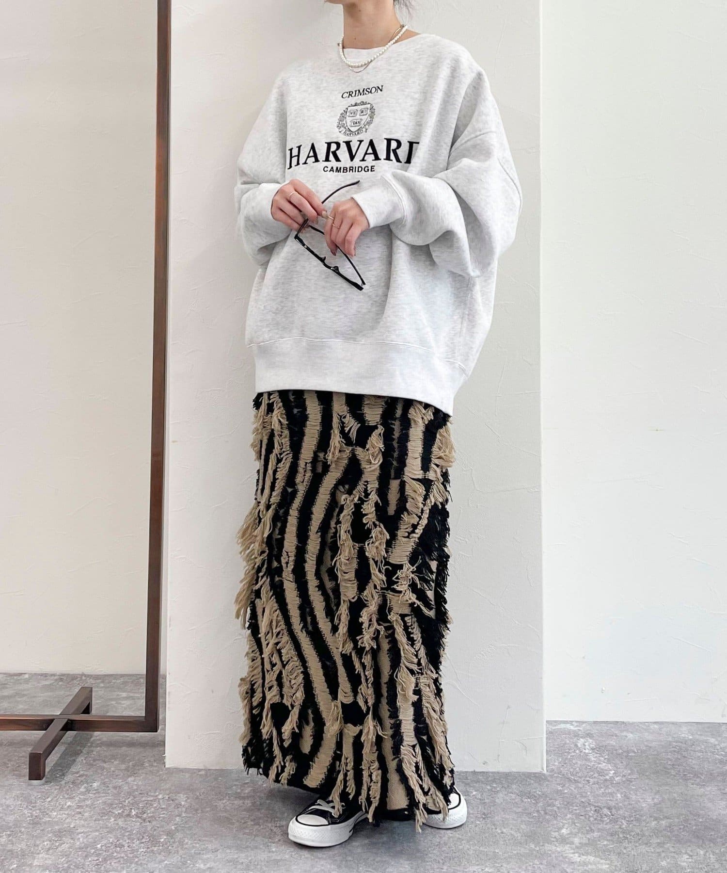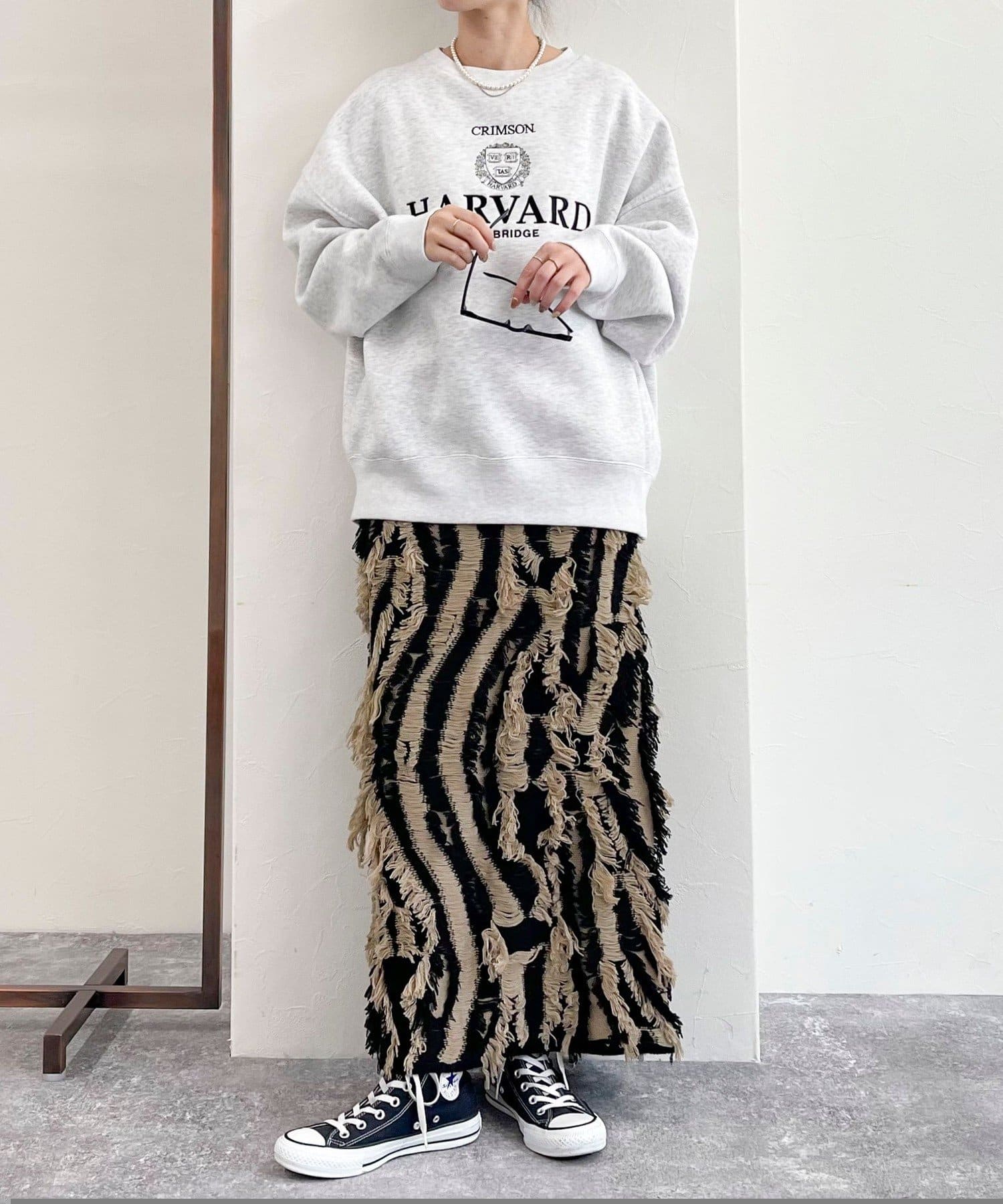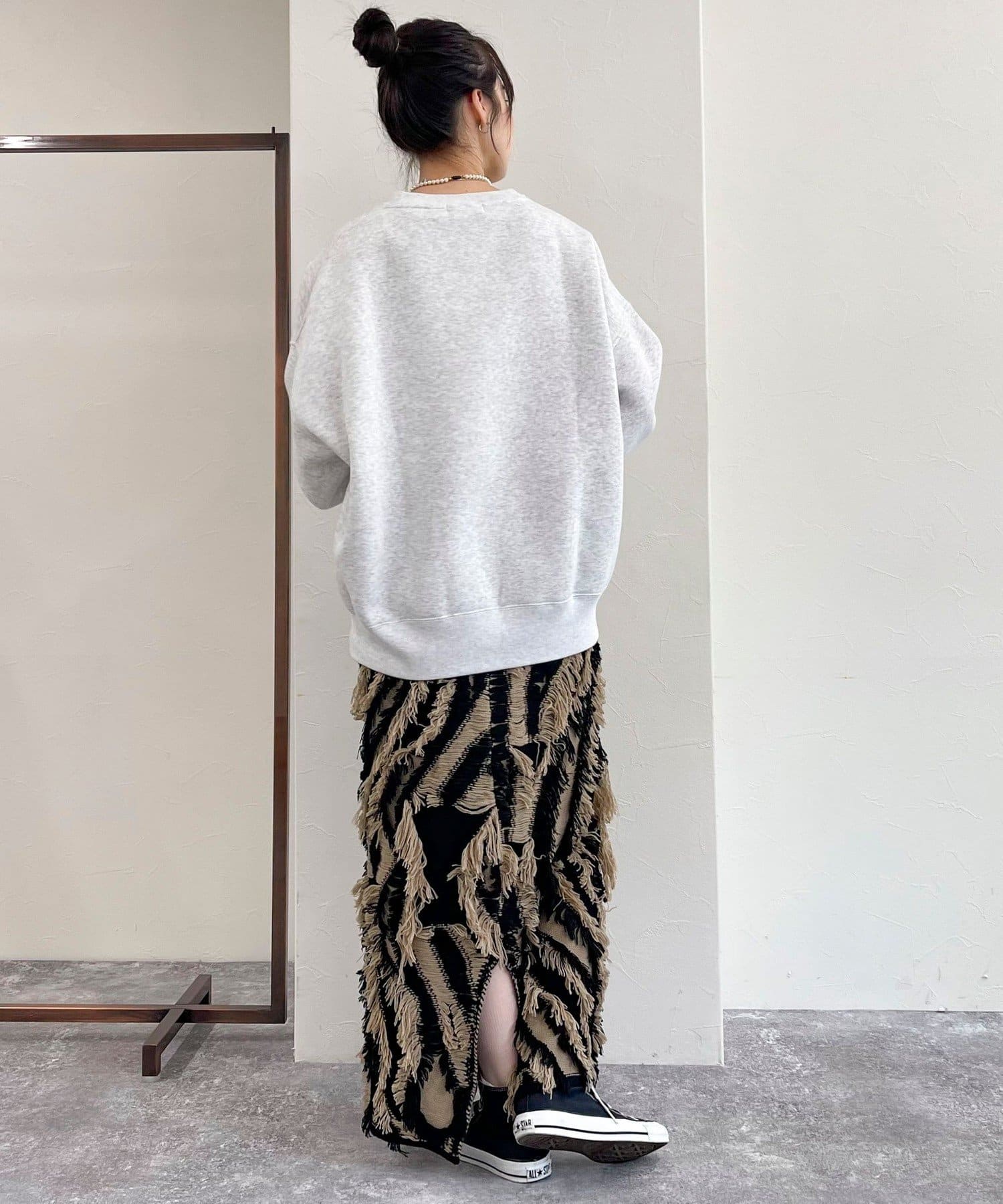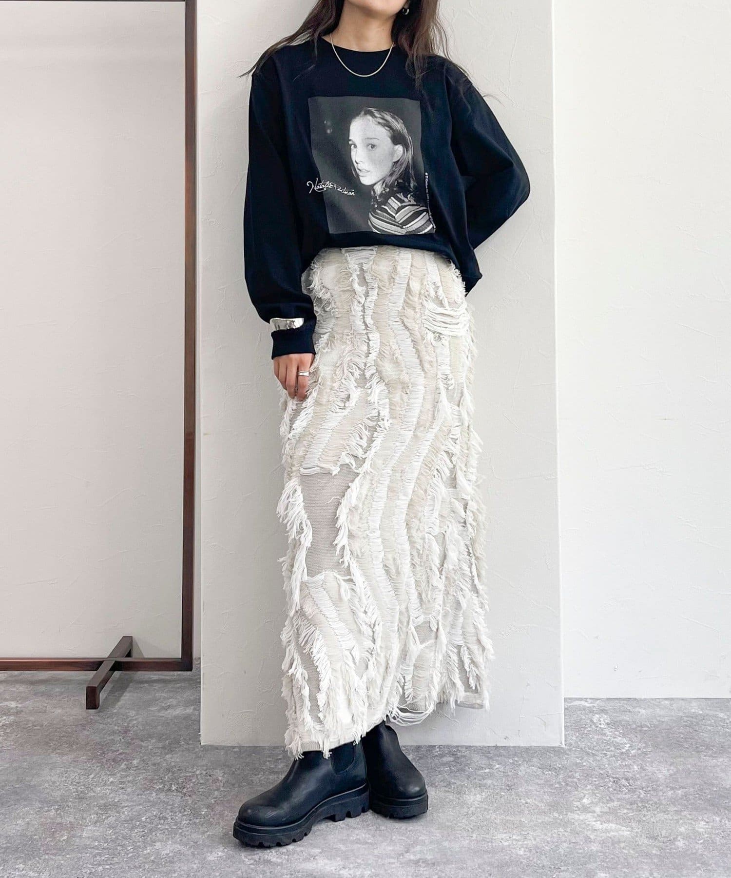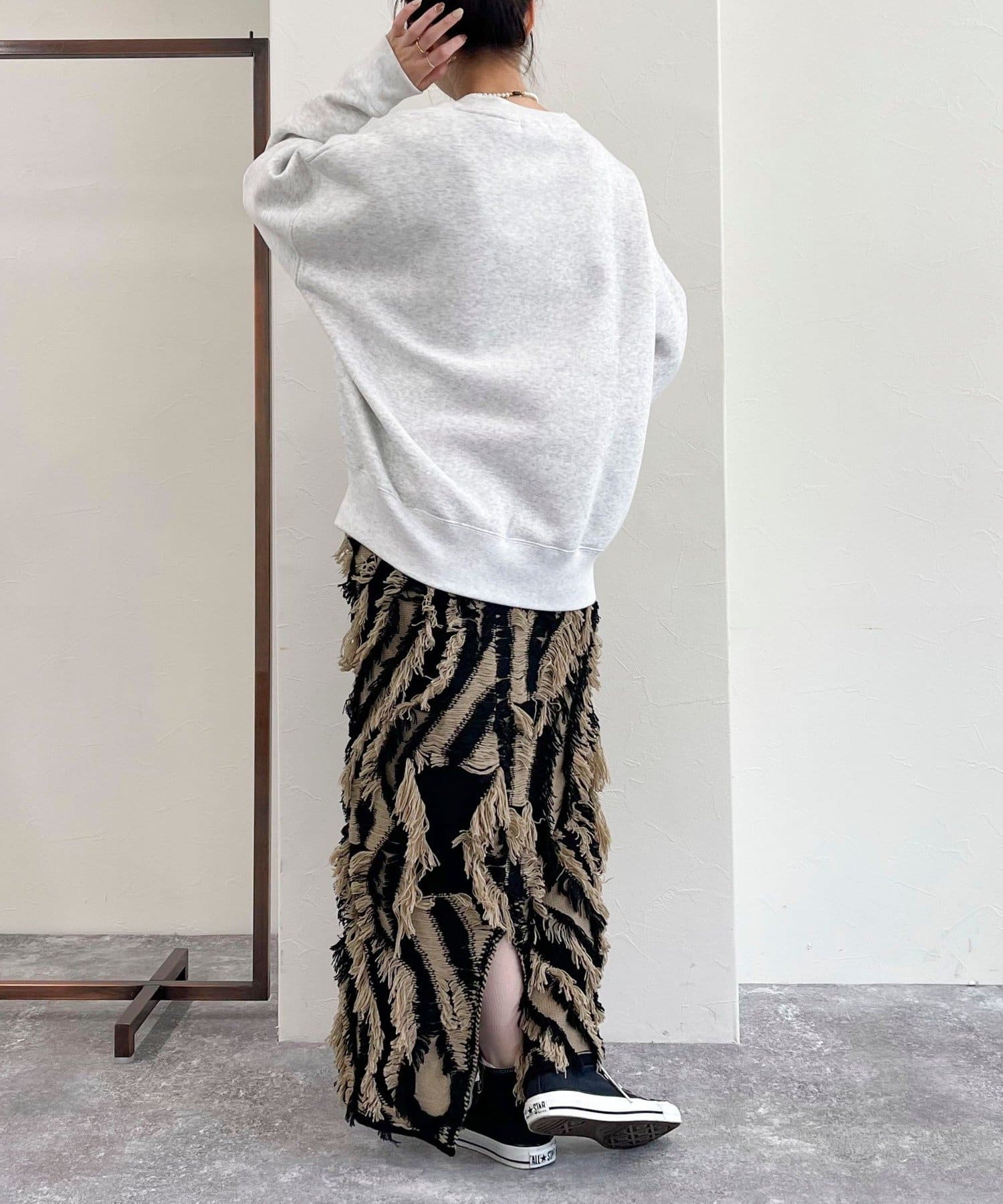 ・動きのあるジャガード地とフリンジが目を惹く華やかな1着!