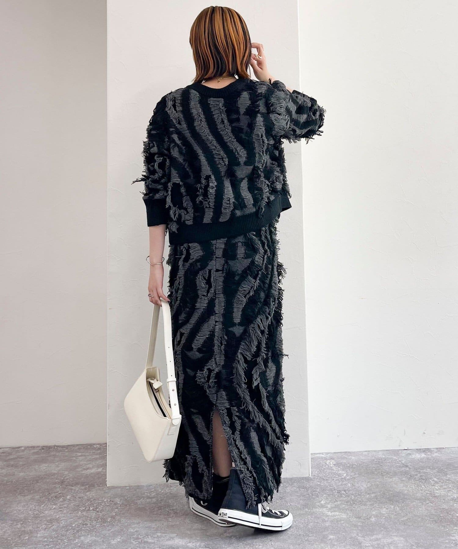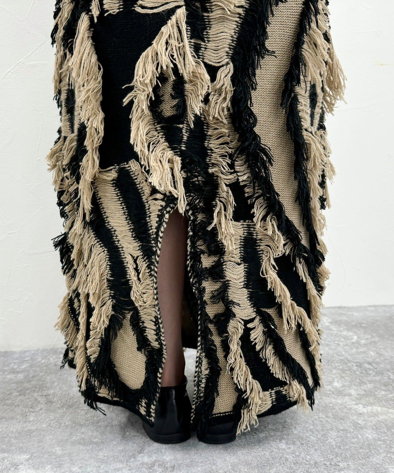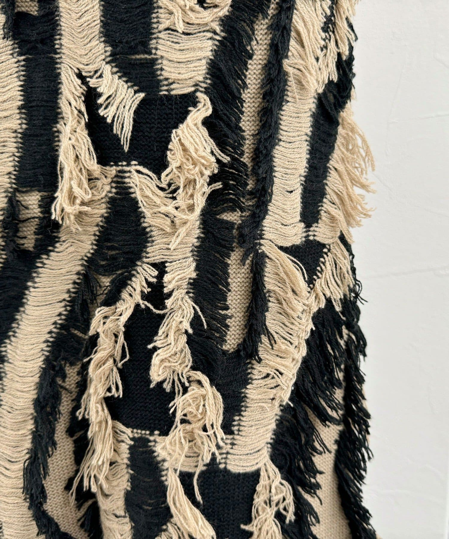 (【4-0385-5-22-001】カットフリンジジャガード2WAYカーディガン)