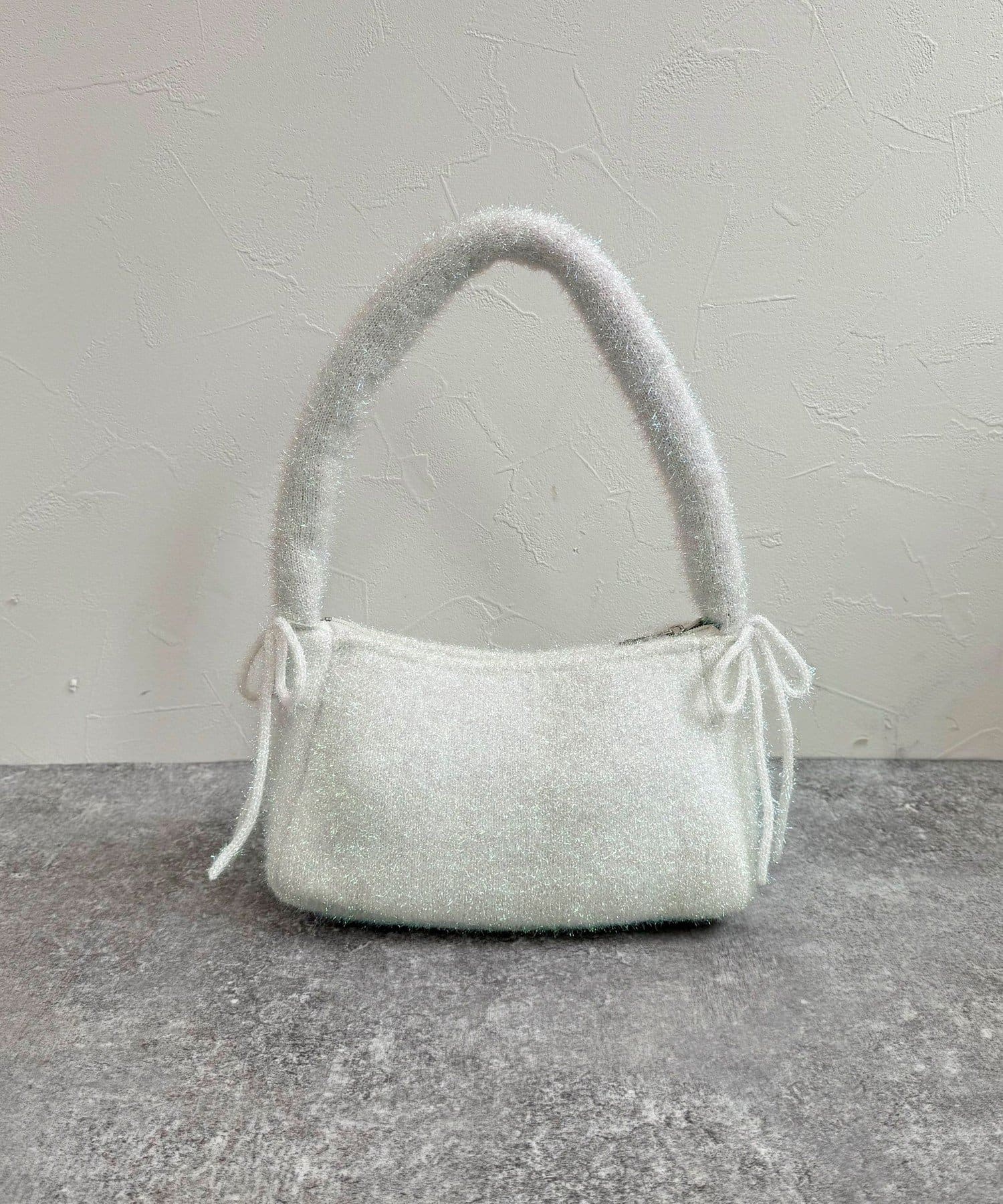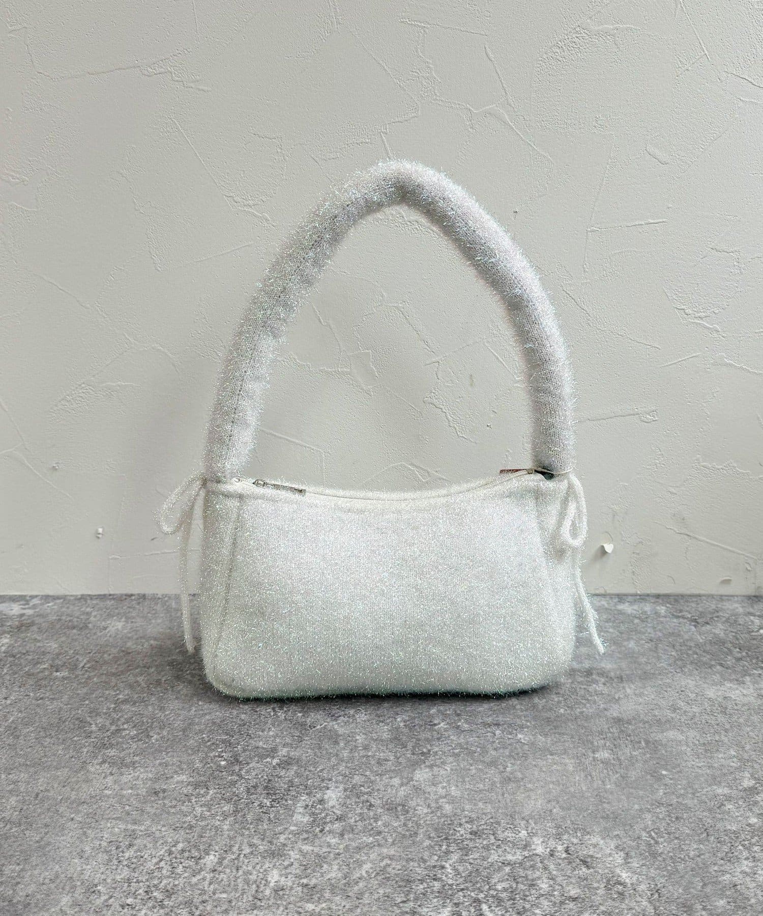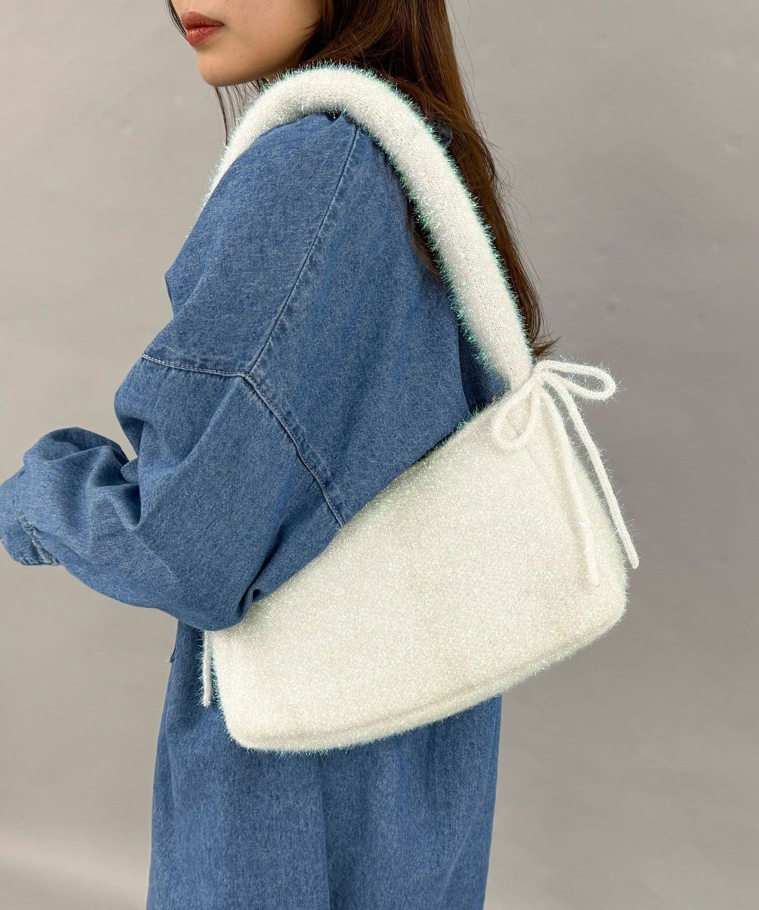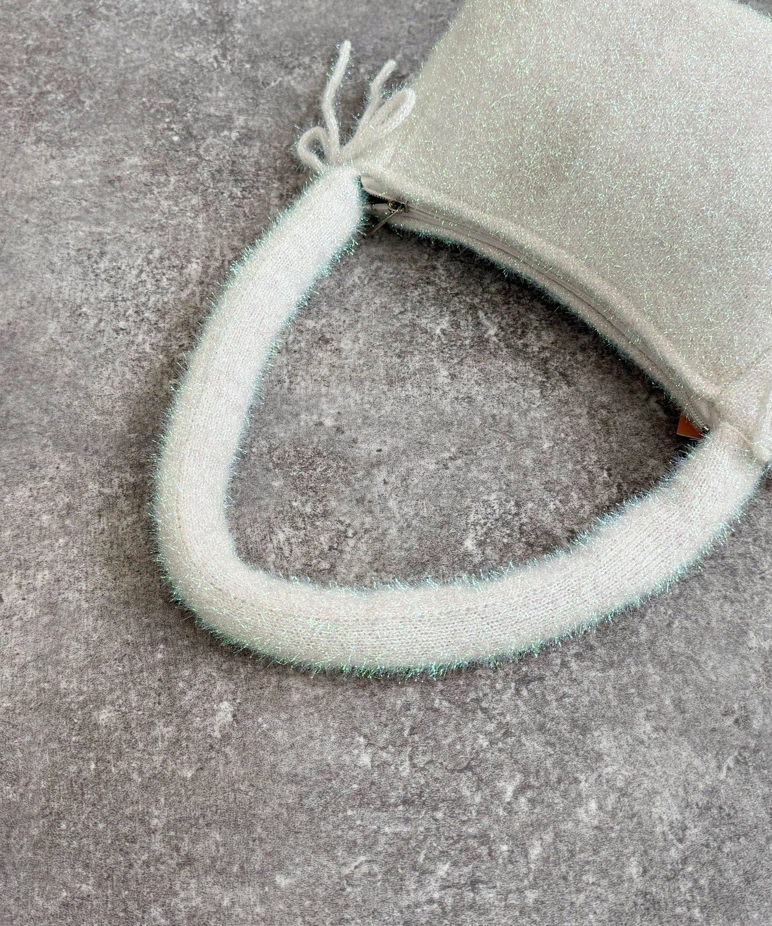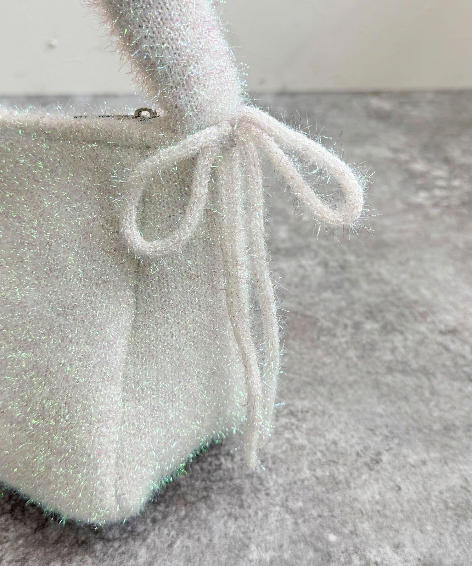 キラキラ華やかなラメニットで編まれたトレンドのハンドバッグ