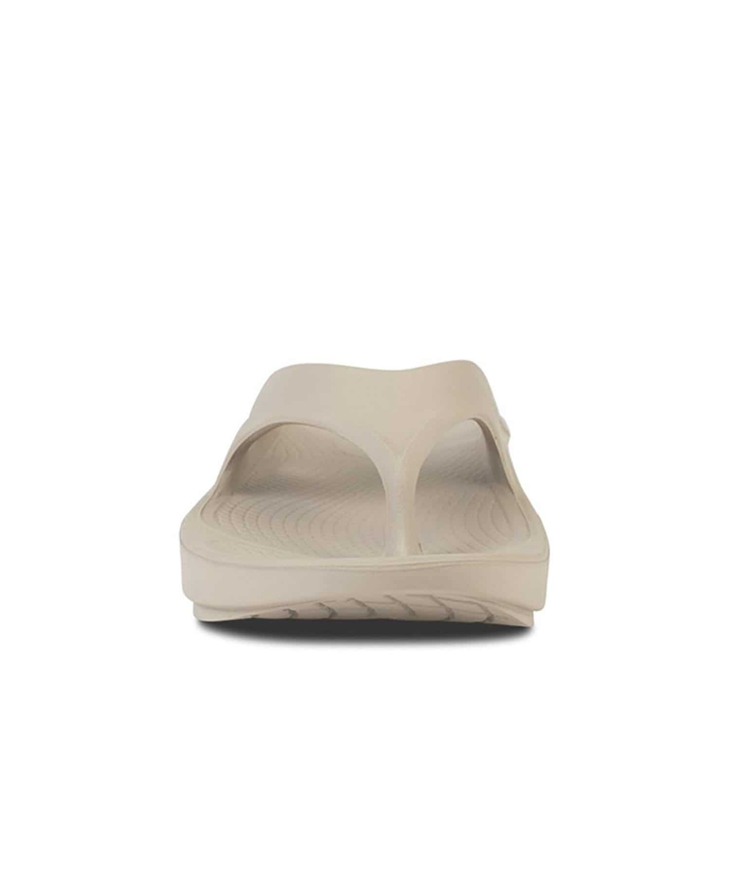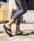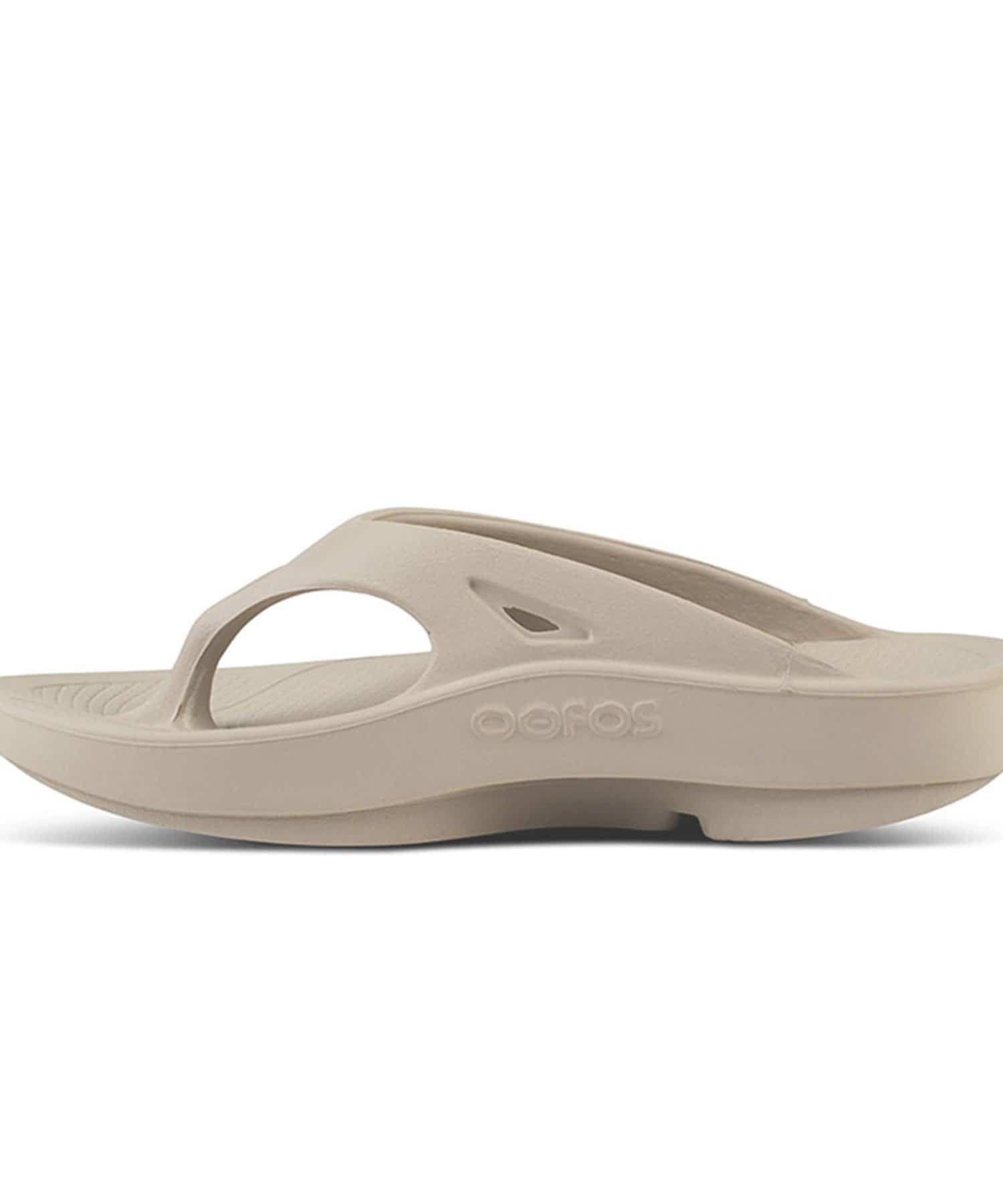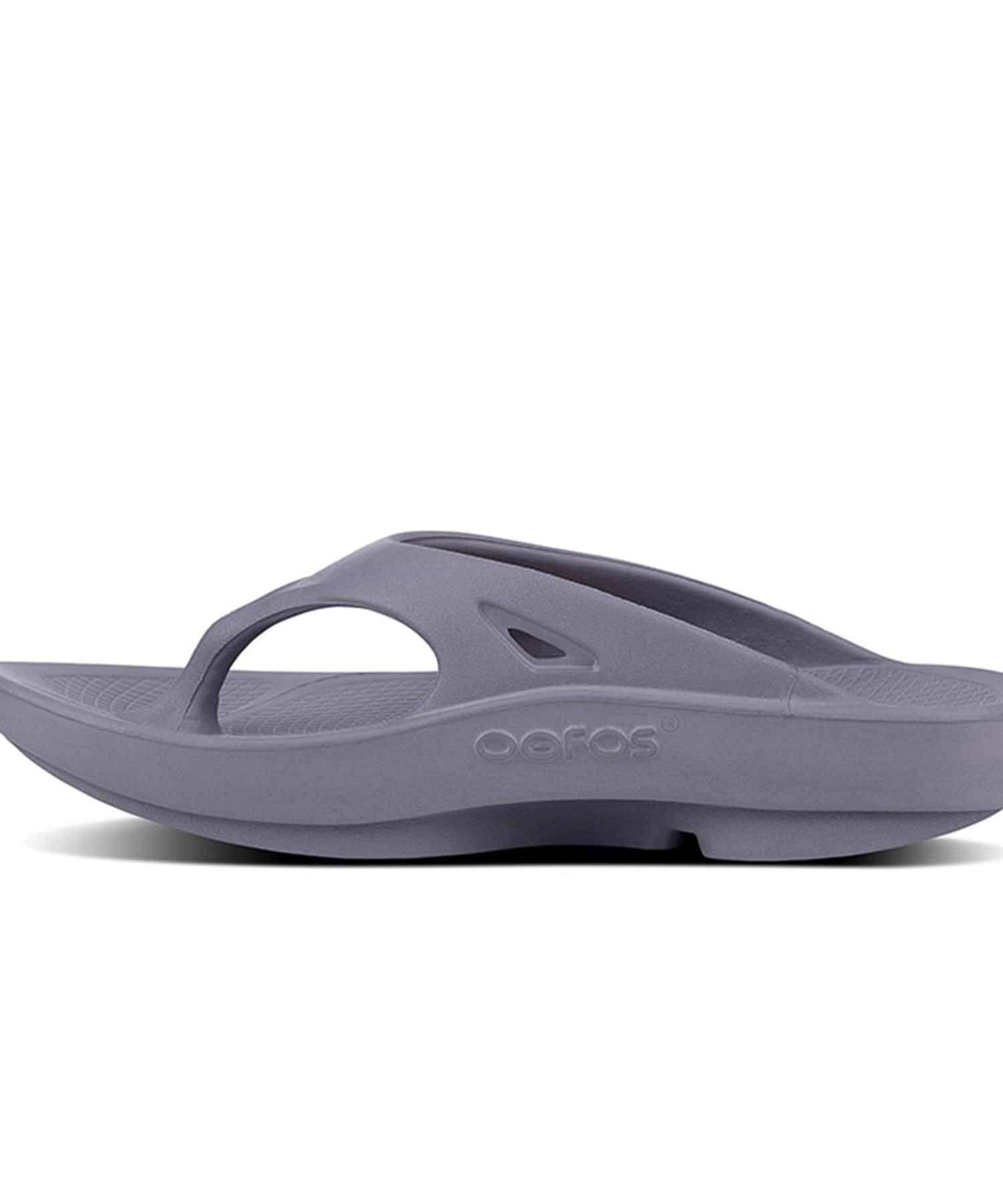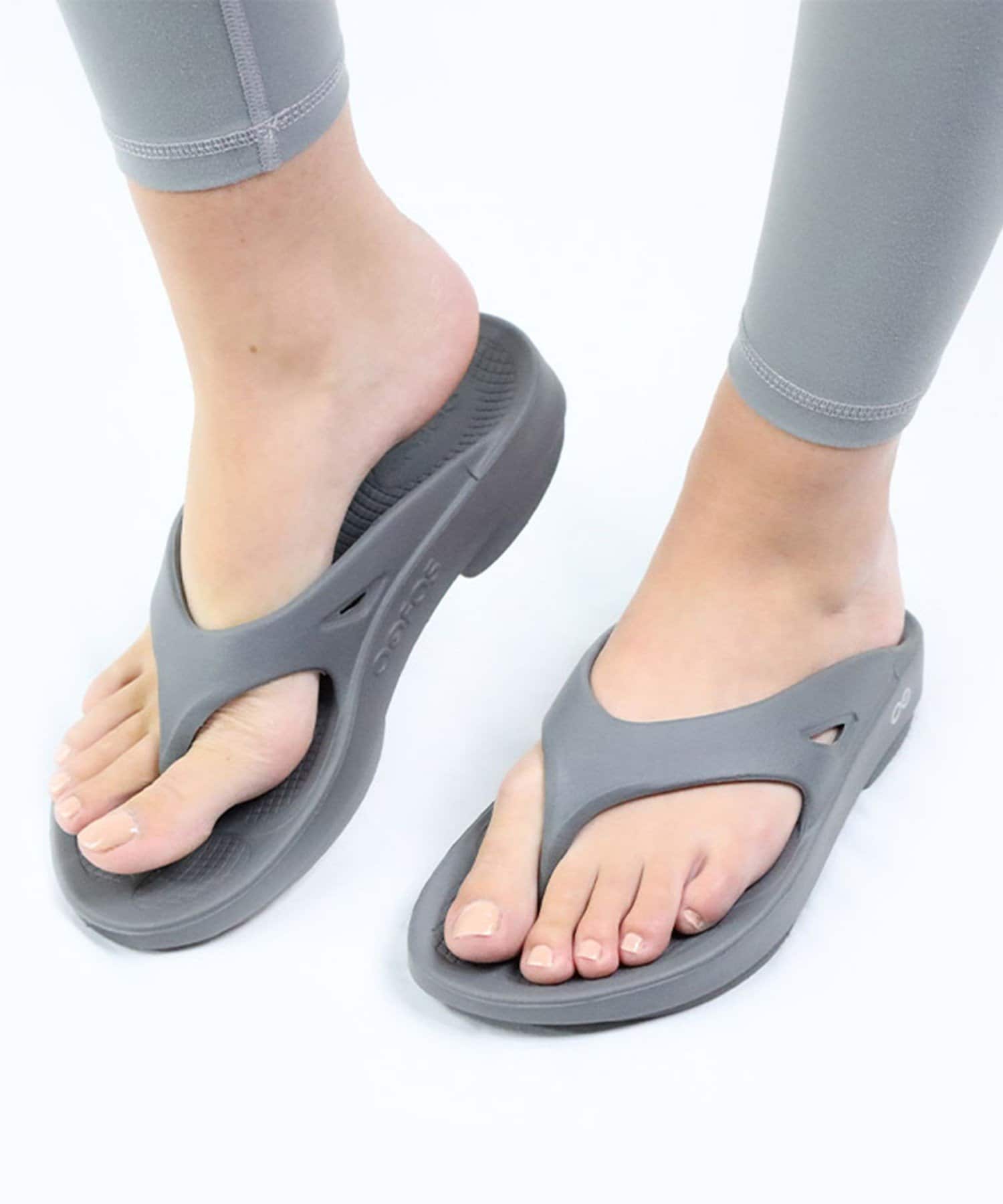 「OOFOS」は、2011 年にマサチューセッツ州でスポーツ選手や大手シューズメーカーの製品開発チームにより開発されたリカバリーシューズブランドです。製品に使われている特殊素材OOfoamは、一般的な EVA 素材のソールと異なり、衝撃の反発を 37% 抑え、着地による足裏への衝撃や膝、腰、背中にかかる負担を軽減します。人間工学に基づいた設計により、足を優しく包み込み、土踏まずをしっかりサポートします。