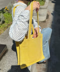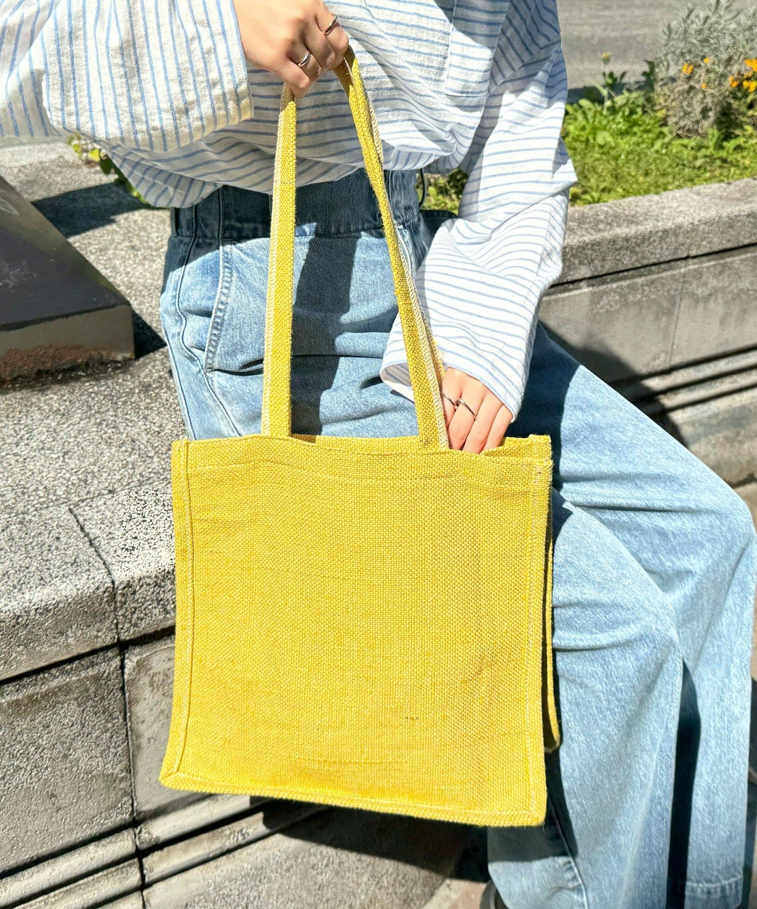 ポップなカラーが夏らしい装いのジュートトート