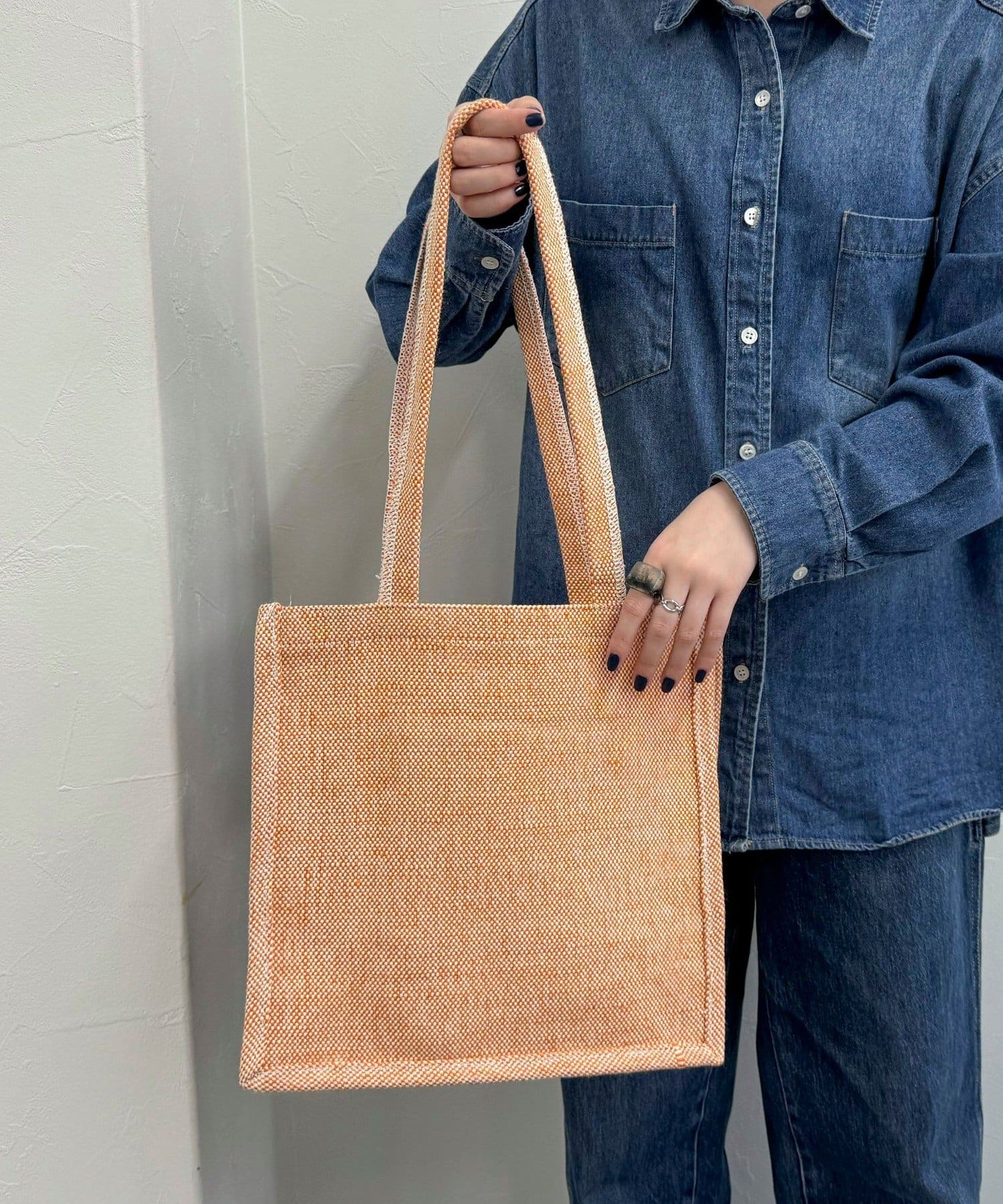 ・麻の一種であるジュートを使用したナチュラルな風合いが楽しめるスクエアシルエットのバッグです