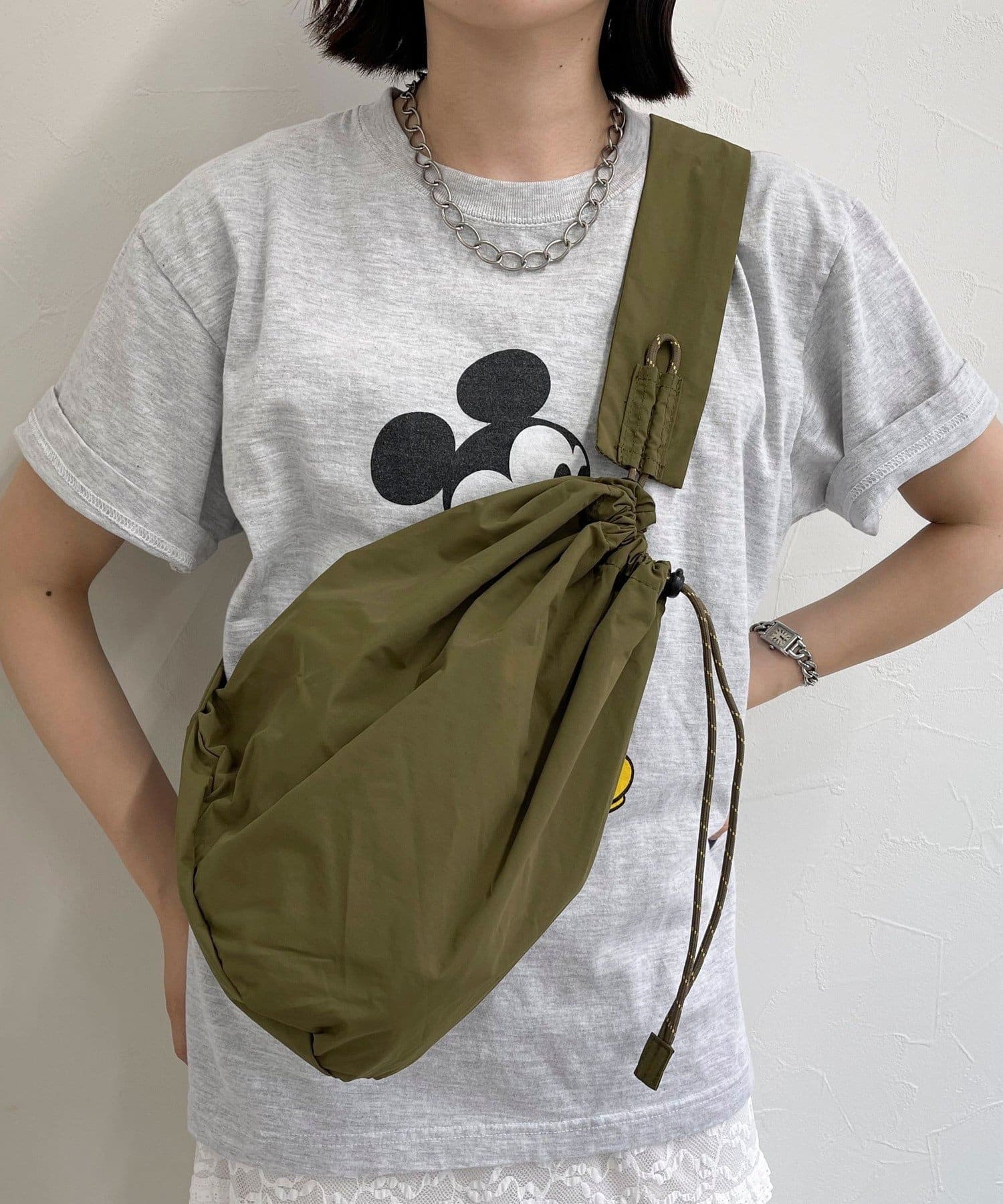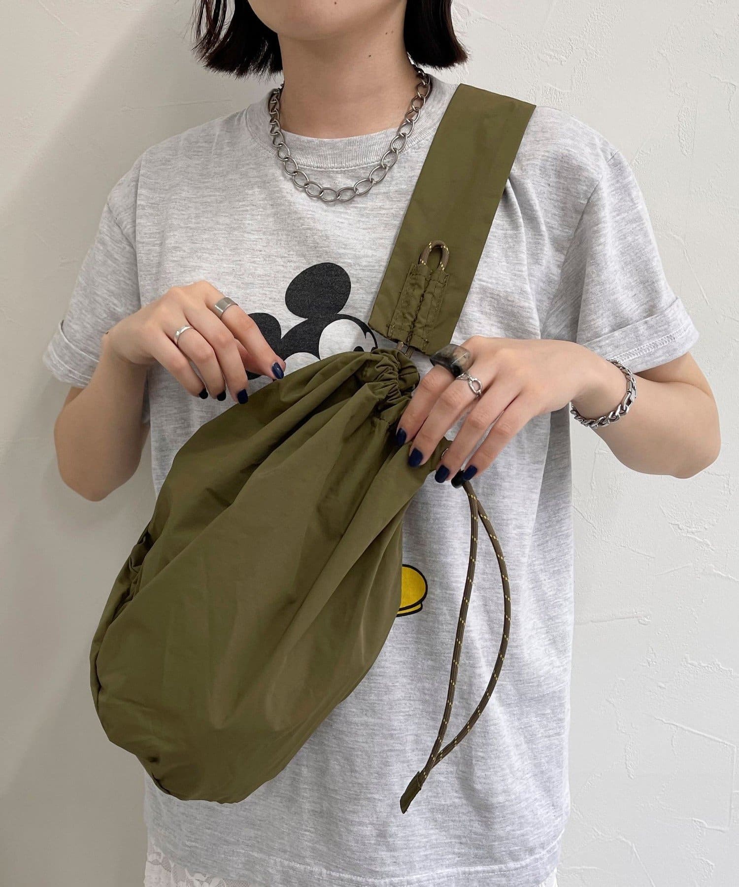 ・上の巾着口からも横のファスナーからも荷物を入れることができる仕様になっています