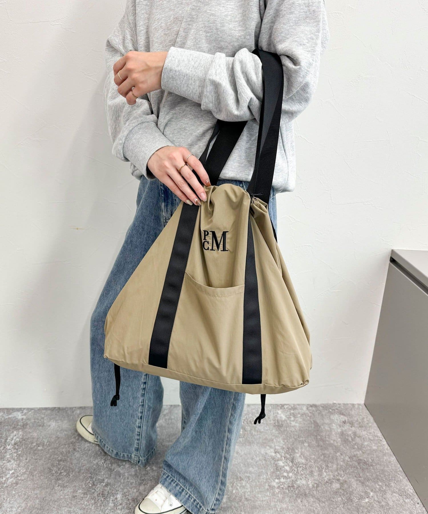・定番のブランドのイニシャル刺繍がワンポイントになったトートバッグです