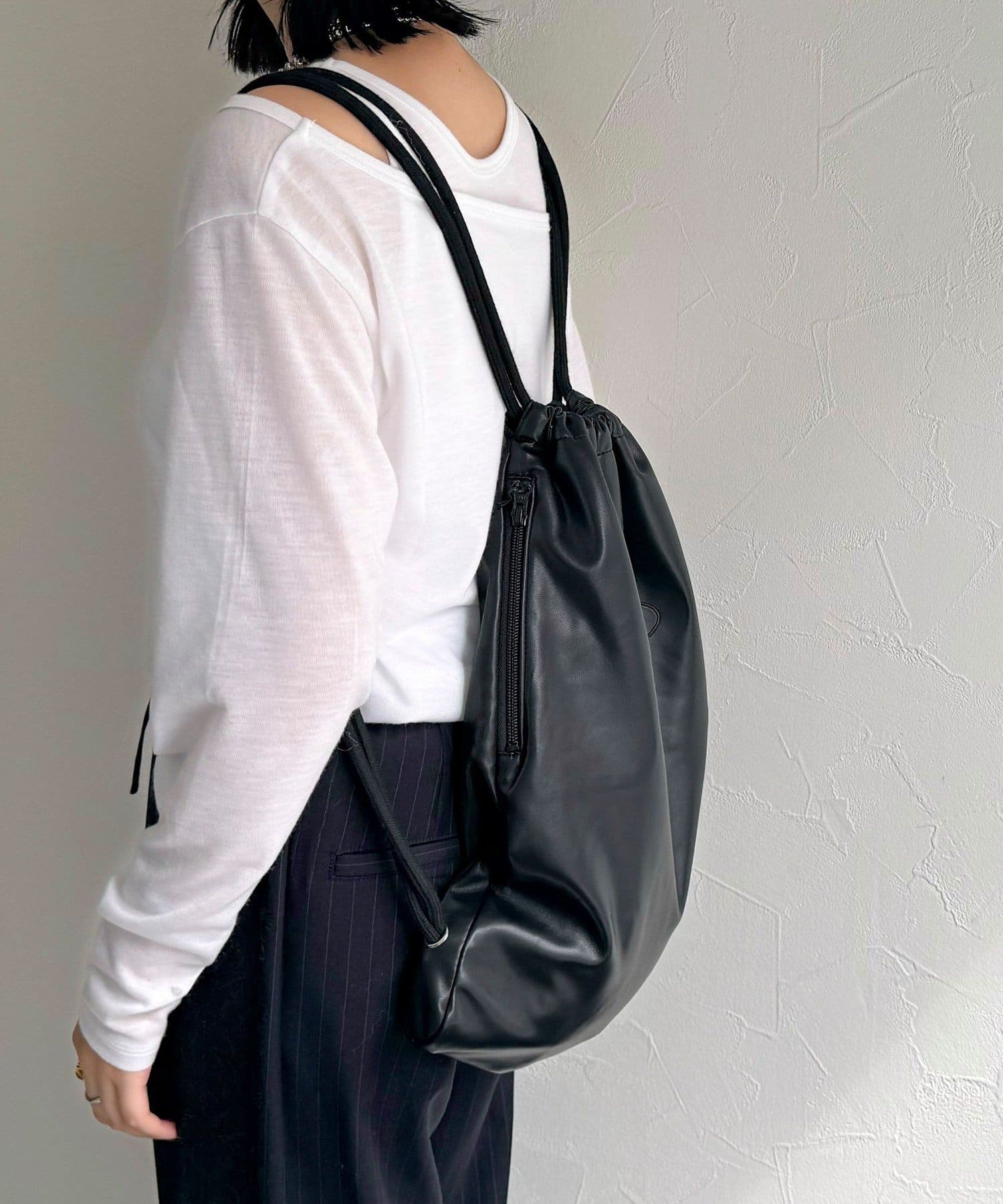 ・フロントの同色刺繍がポイントの大人っぽい雰囲気のナップサックです