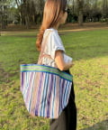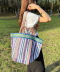 ・色鮮やかなストライプ柄が魅力的なビッグトートバッグが登場!