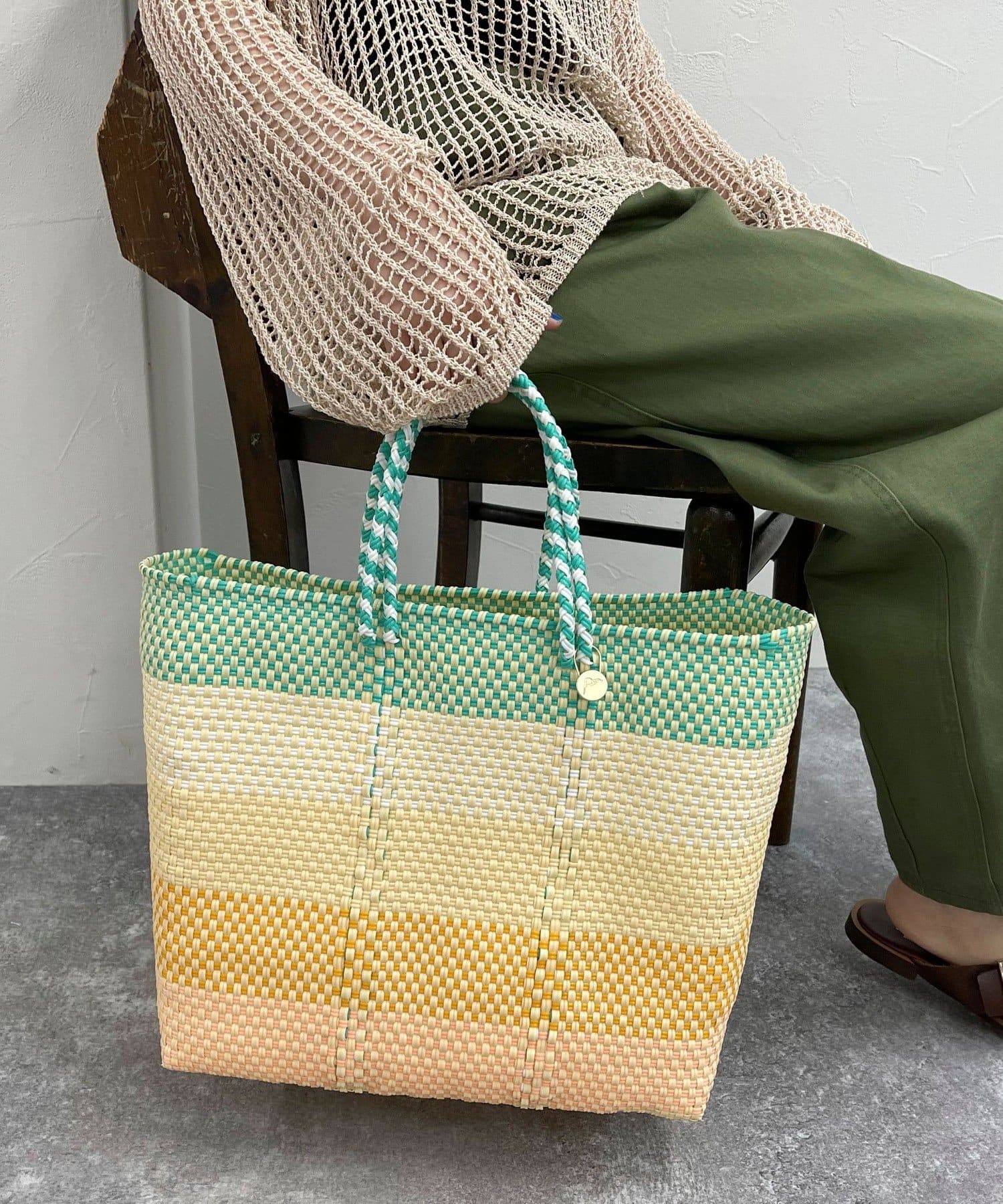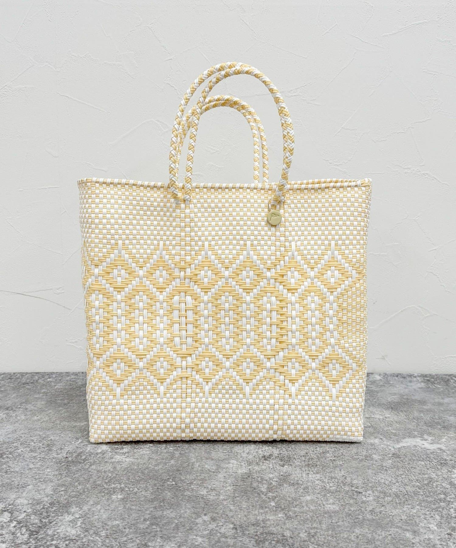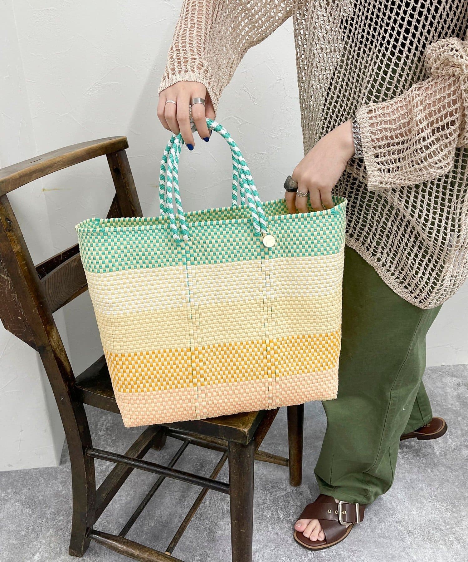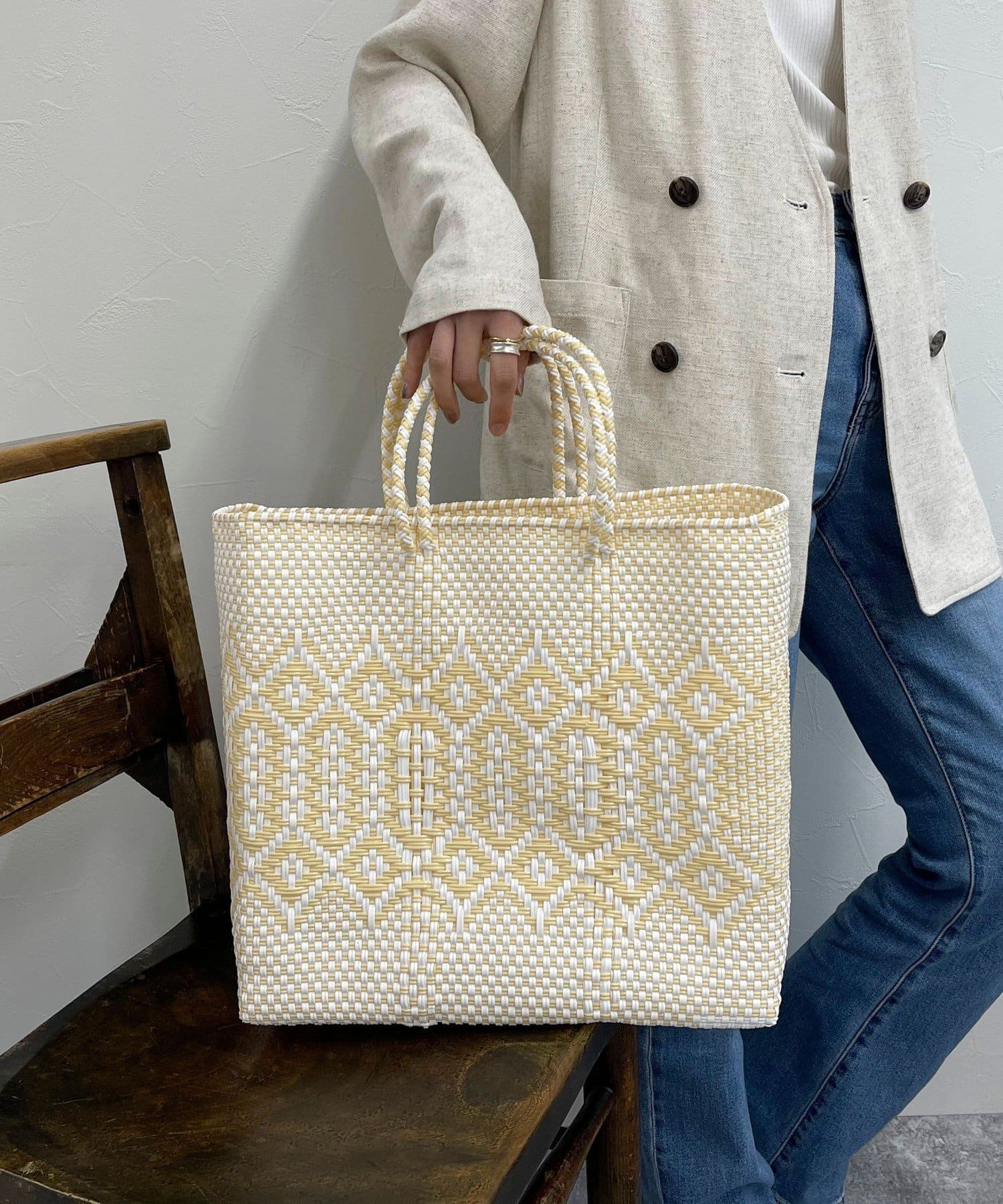 ・カラーごとに違う柄のデザインが目を惹くミディアムサイズのメルカドバッグです