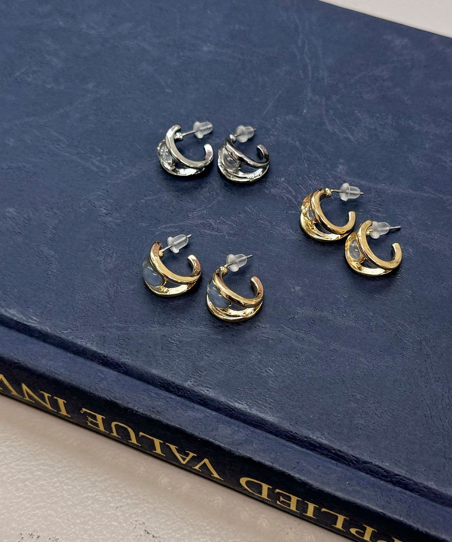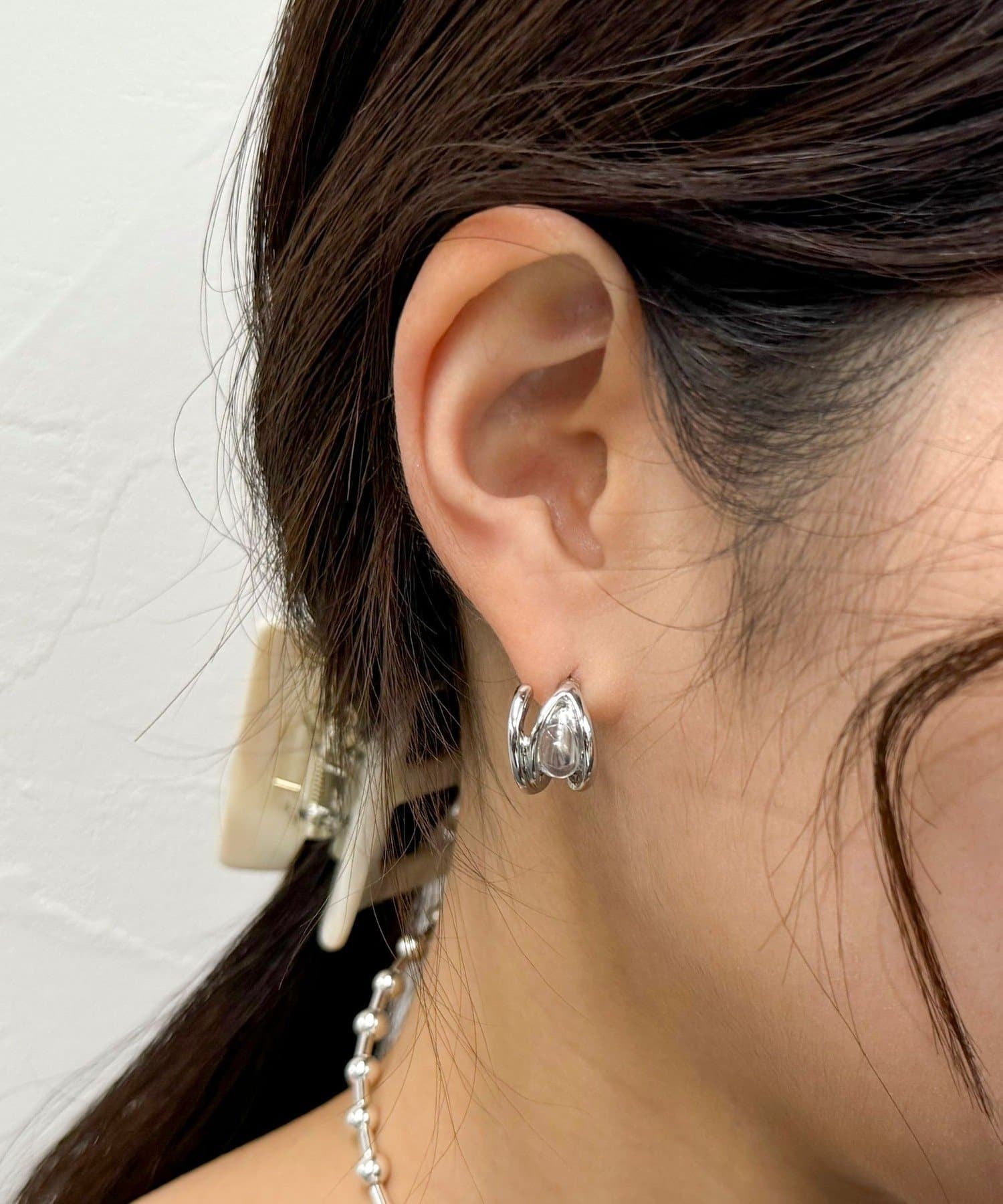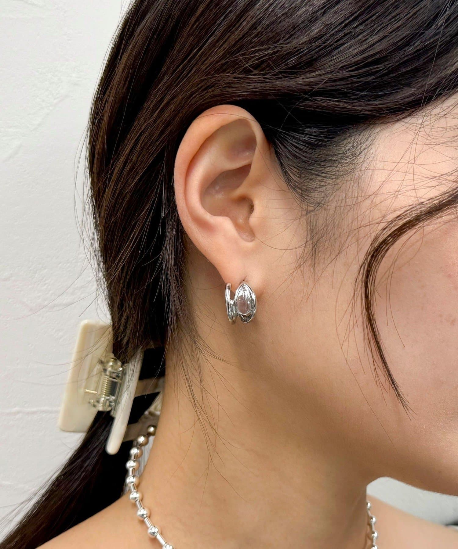 ・ころんとしたフォルムが可愛いしずくストーンCカールピアスです
