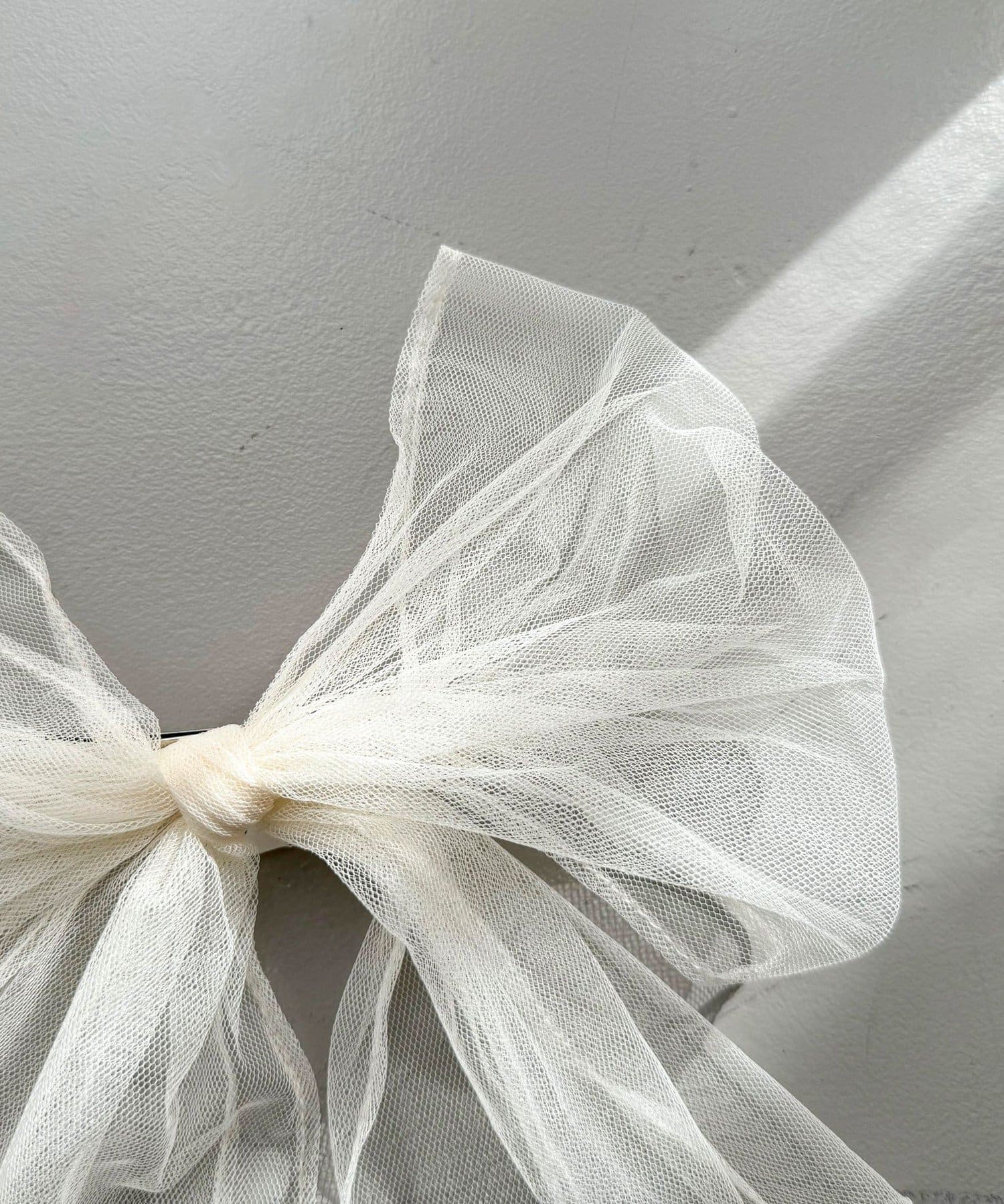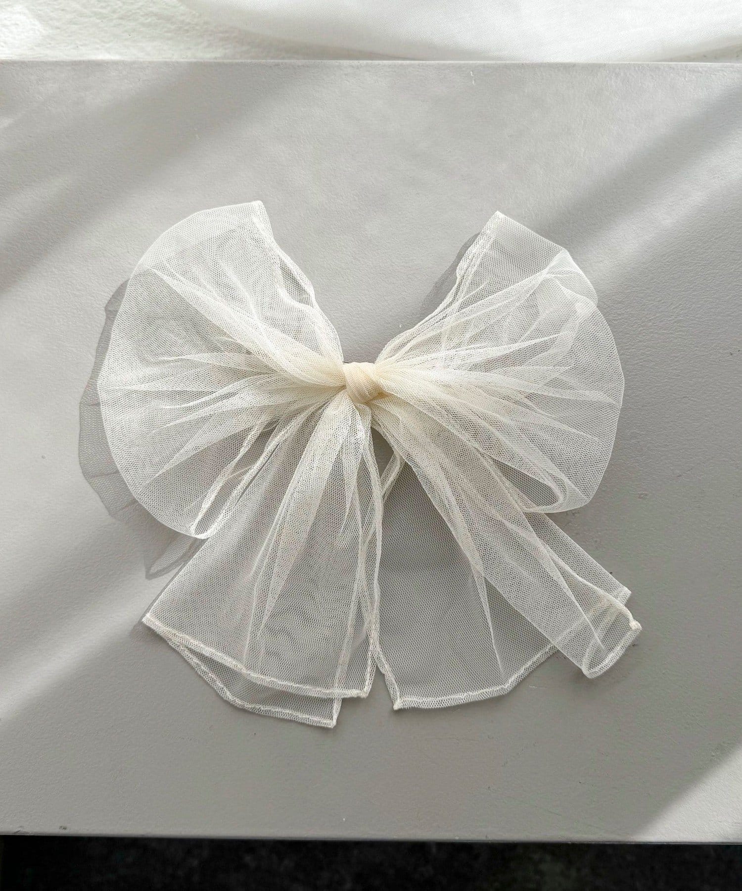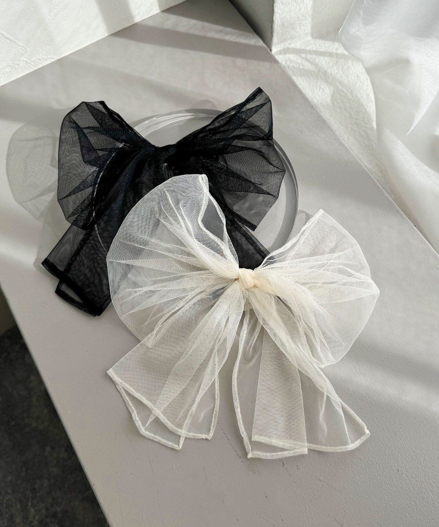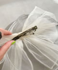 ・透け感のあるチュール素材を使ったトレンドのリボンが大人の可愛らしさを演出してくれるバレッタです