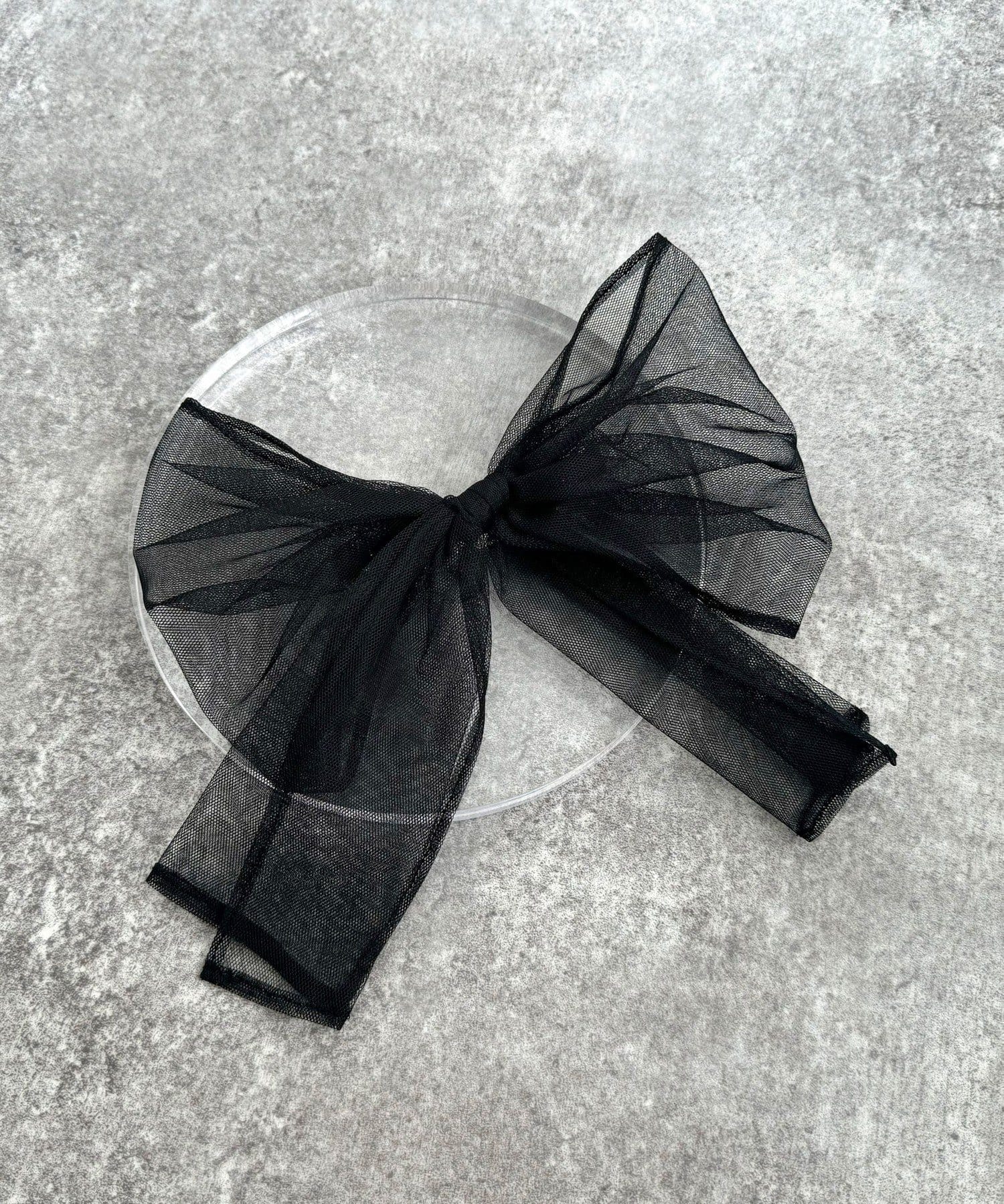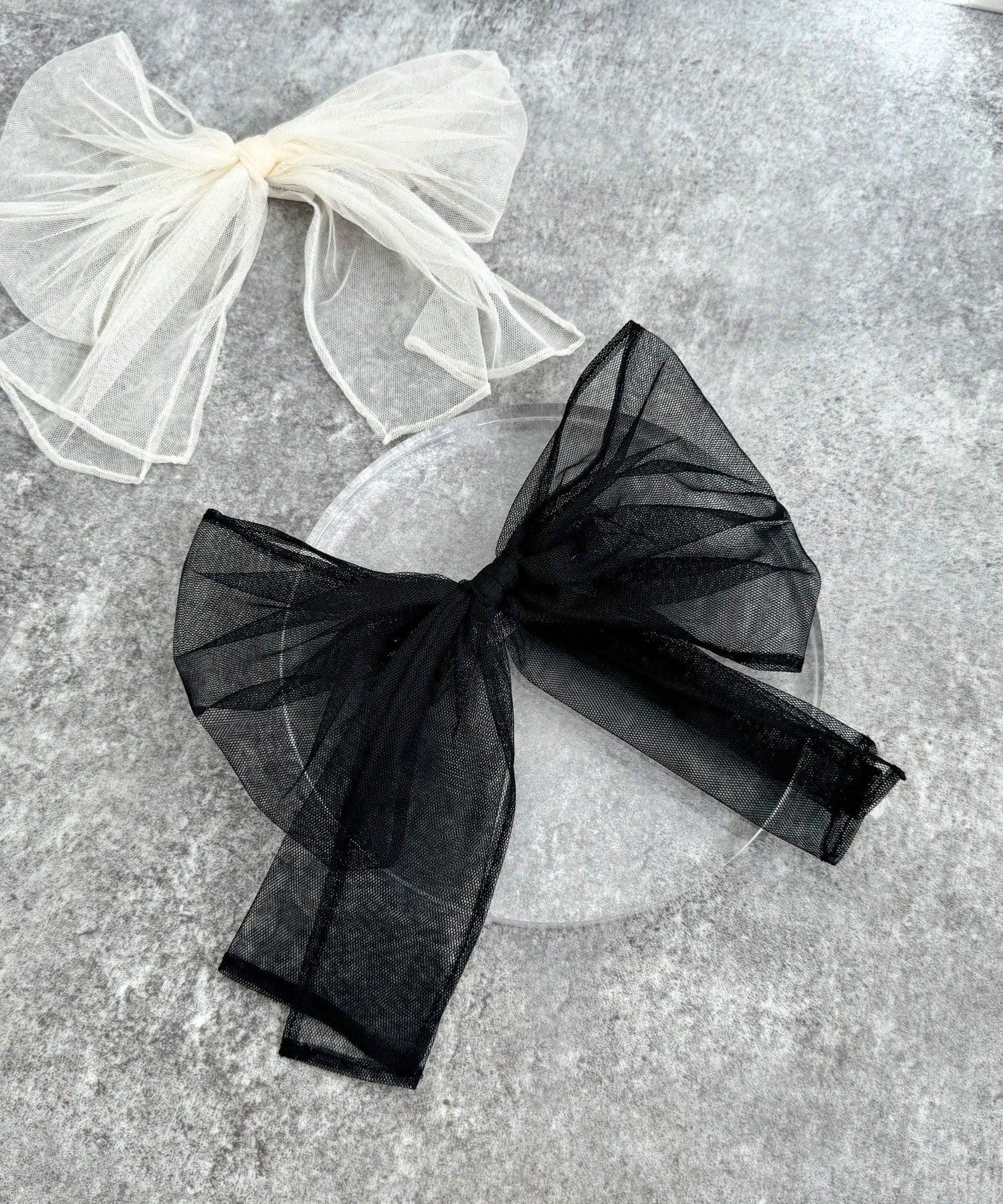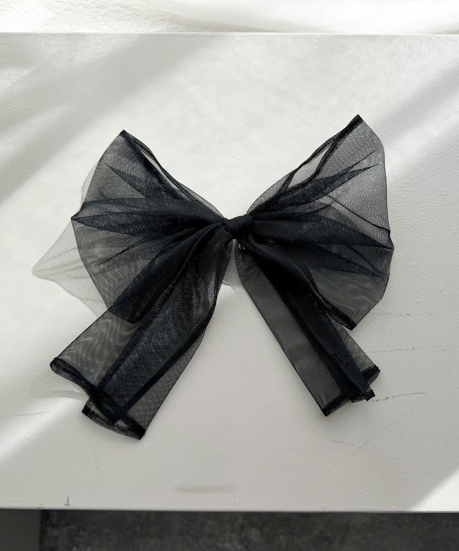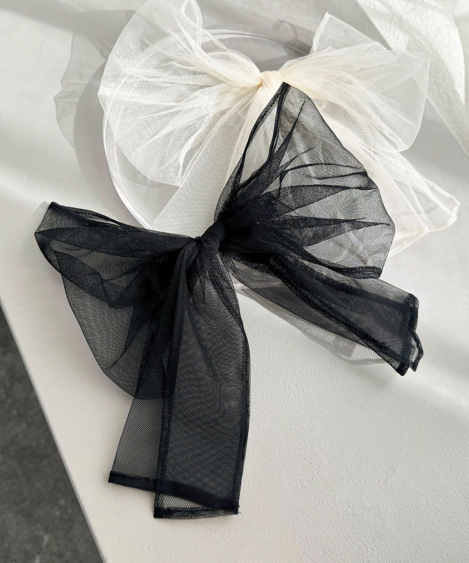 ・透け感のあるチュール素材を使ったトレンドのリボンが大人の可愛らしさを演出してくれるバレッタです