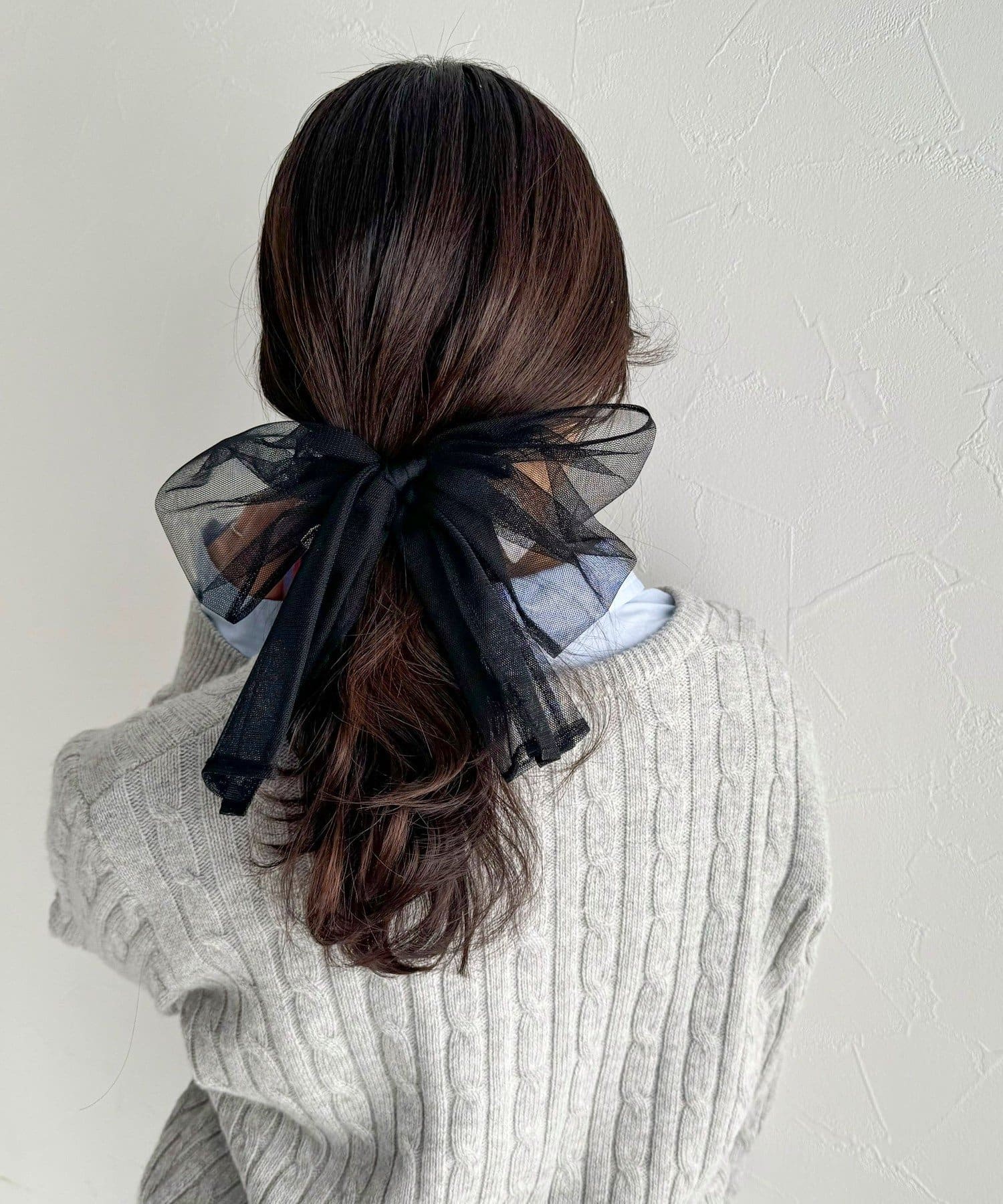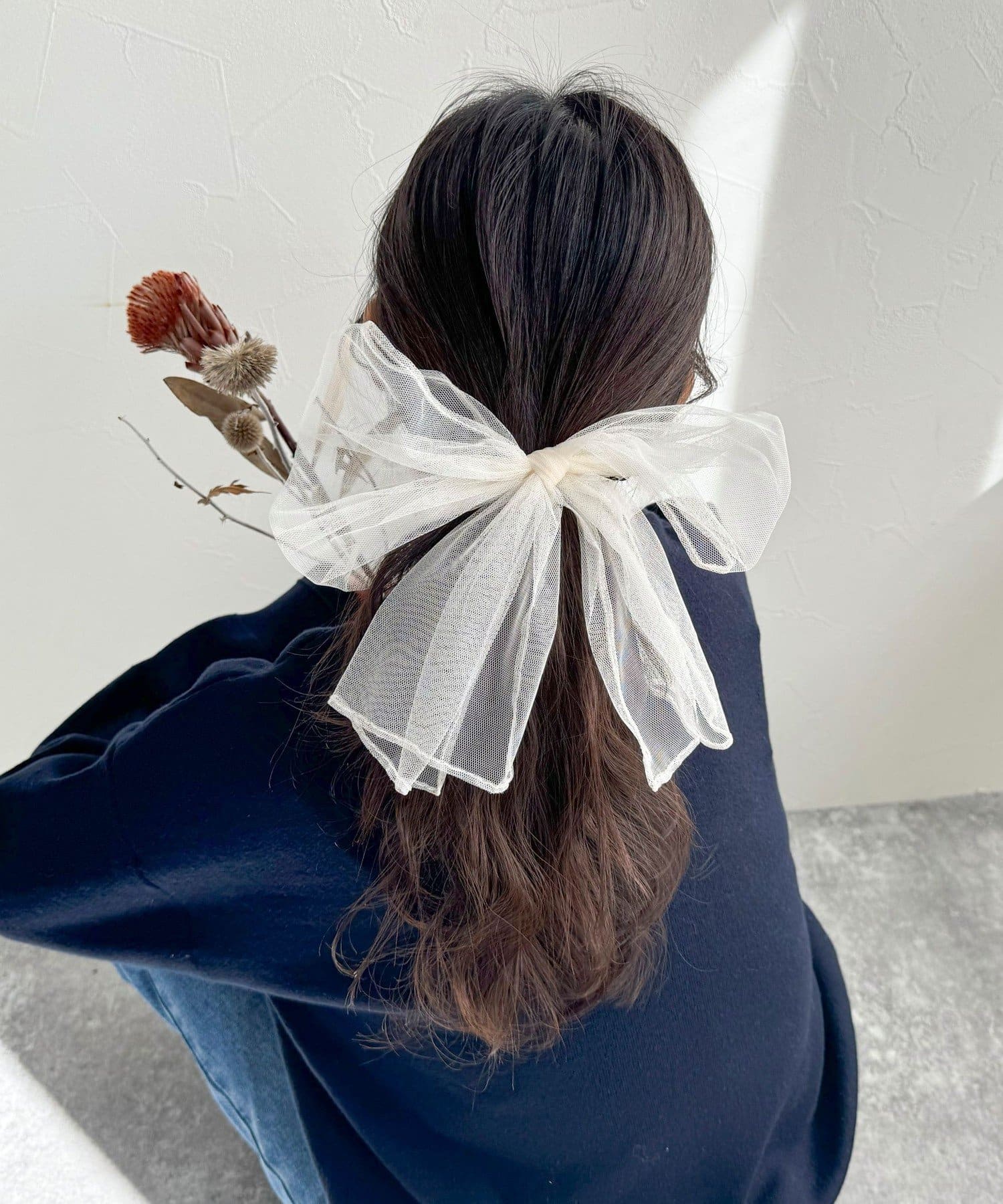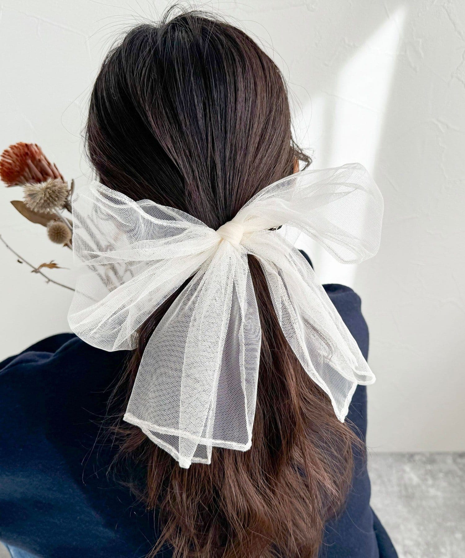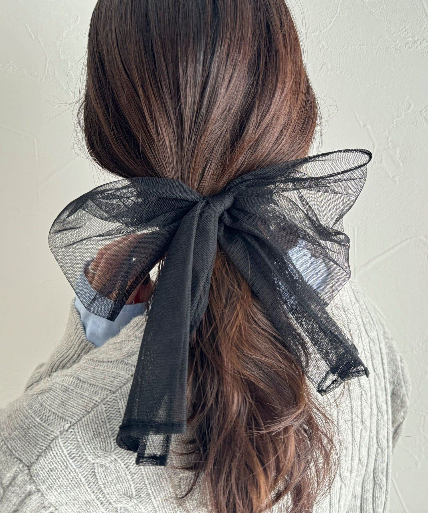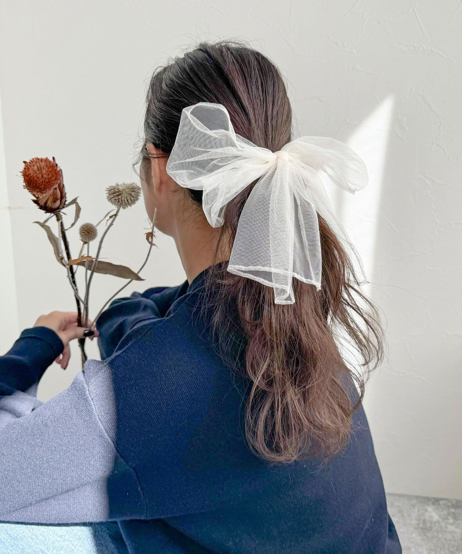 大人可愛いヘアスタイルに仕上がるチュールリボンバレッタ