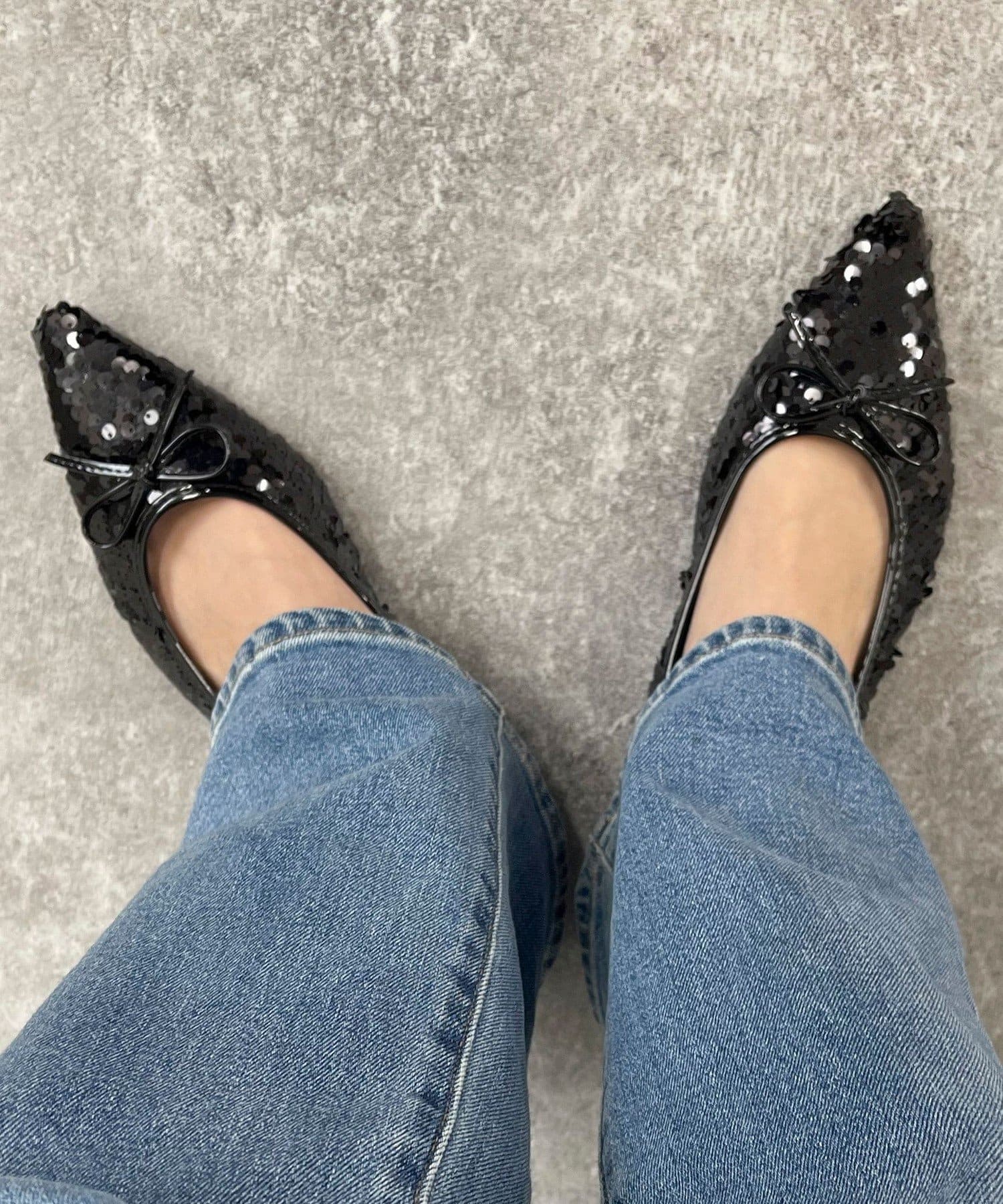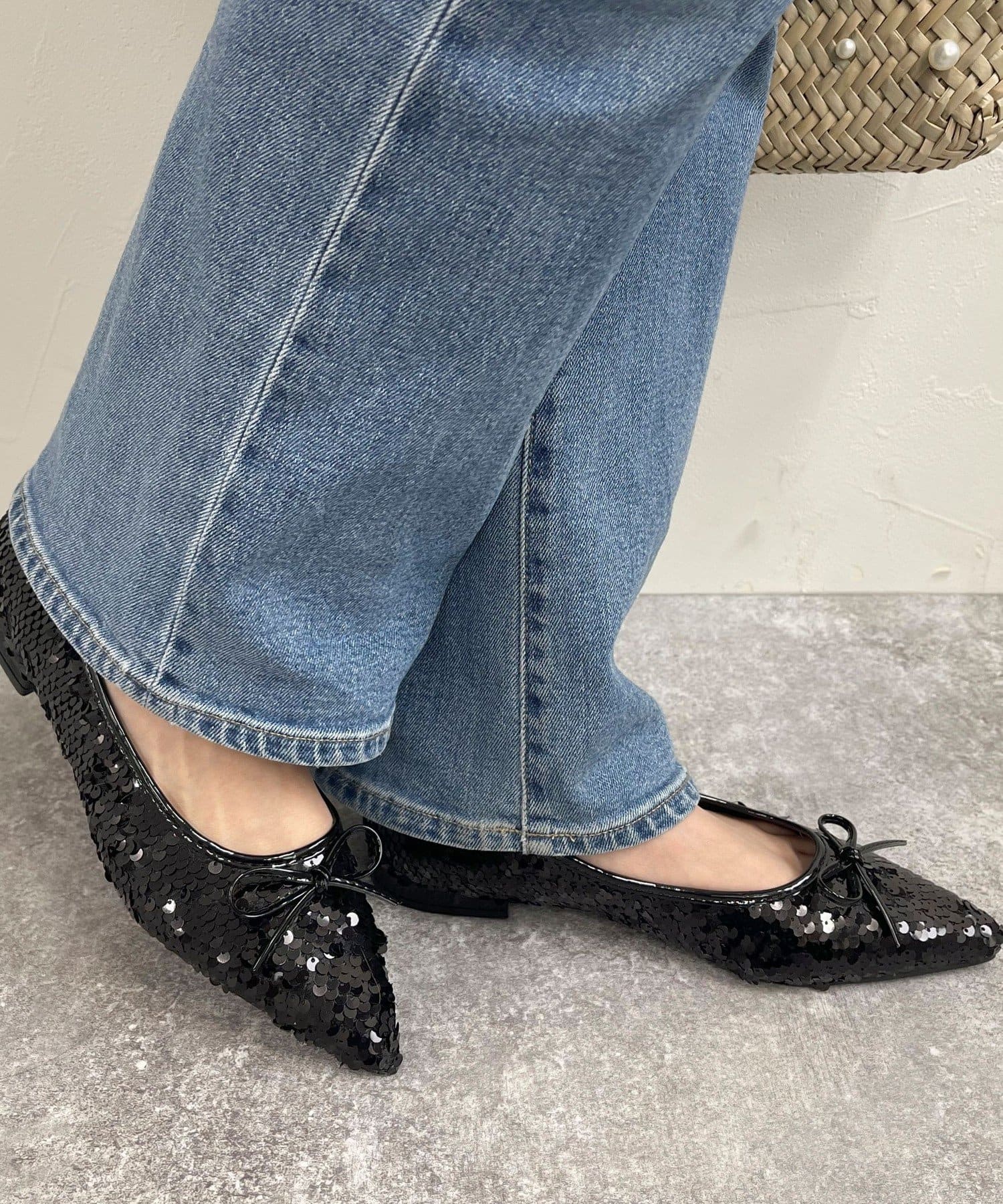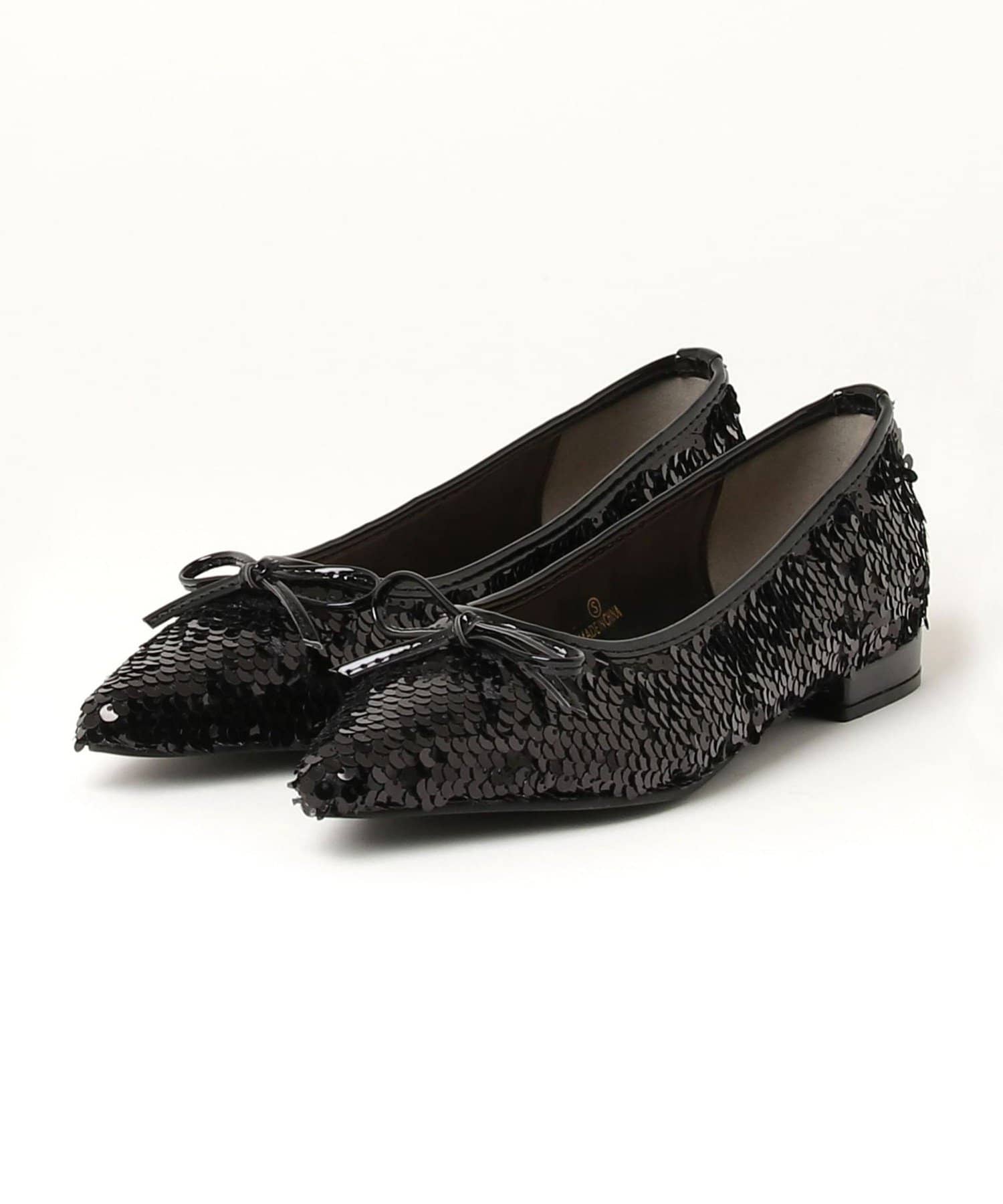 ・きらきらのスパンコール×リボンが今年らしいフラットバレエシューズ
