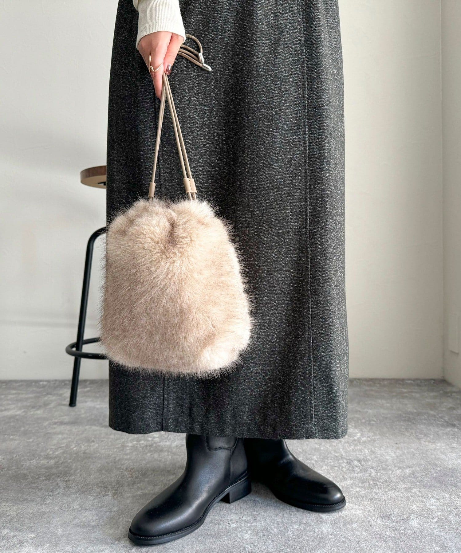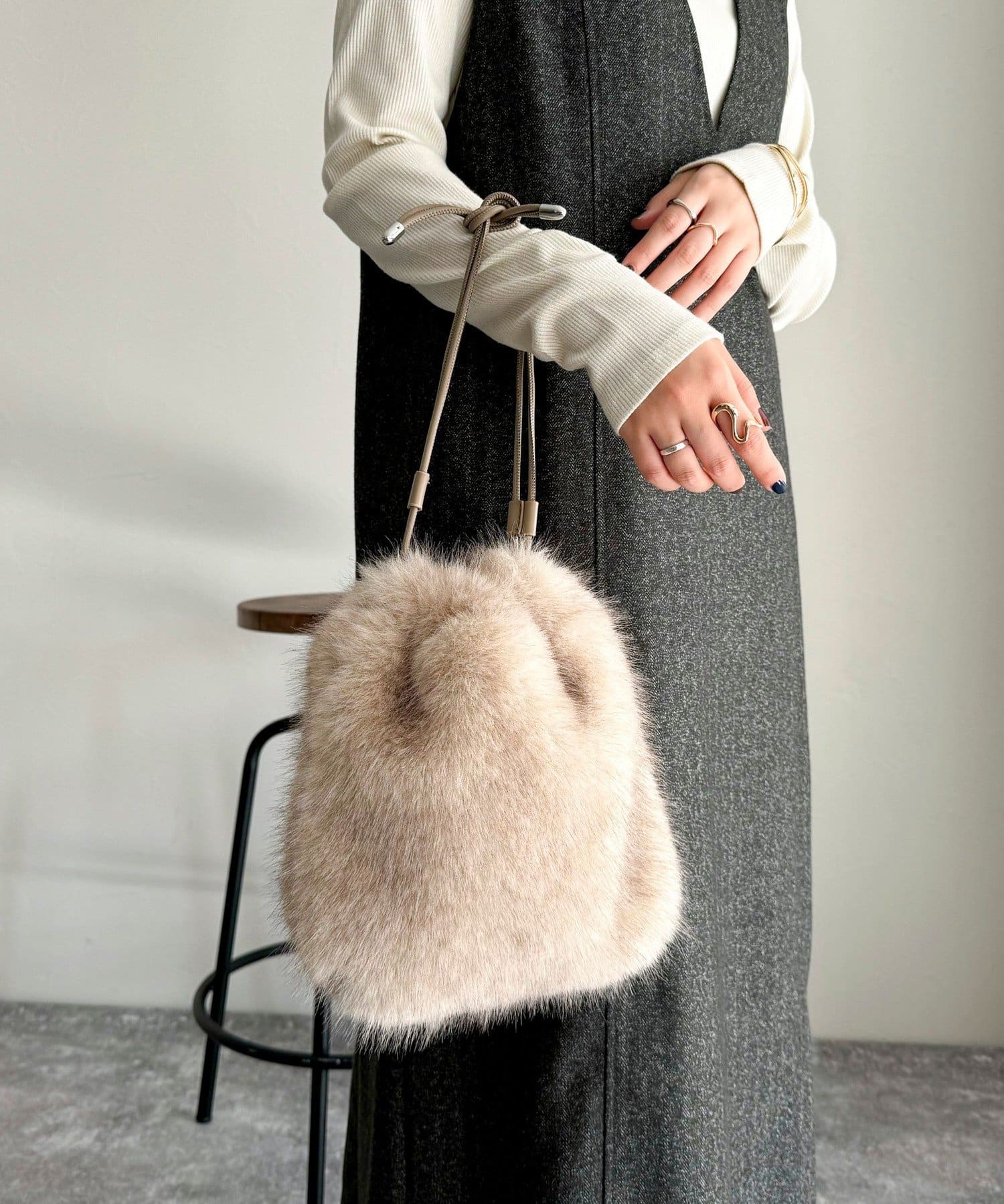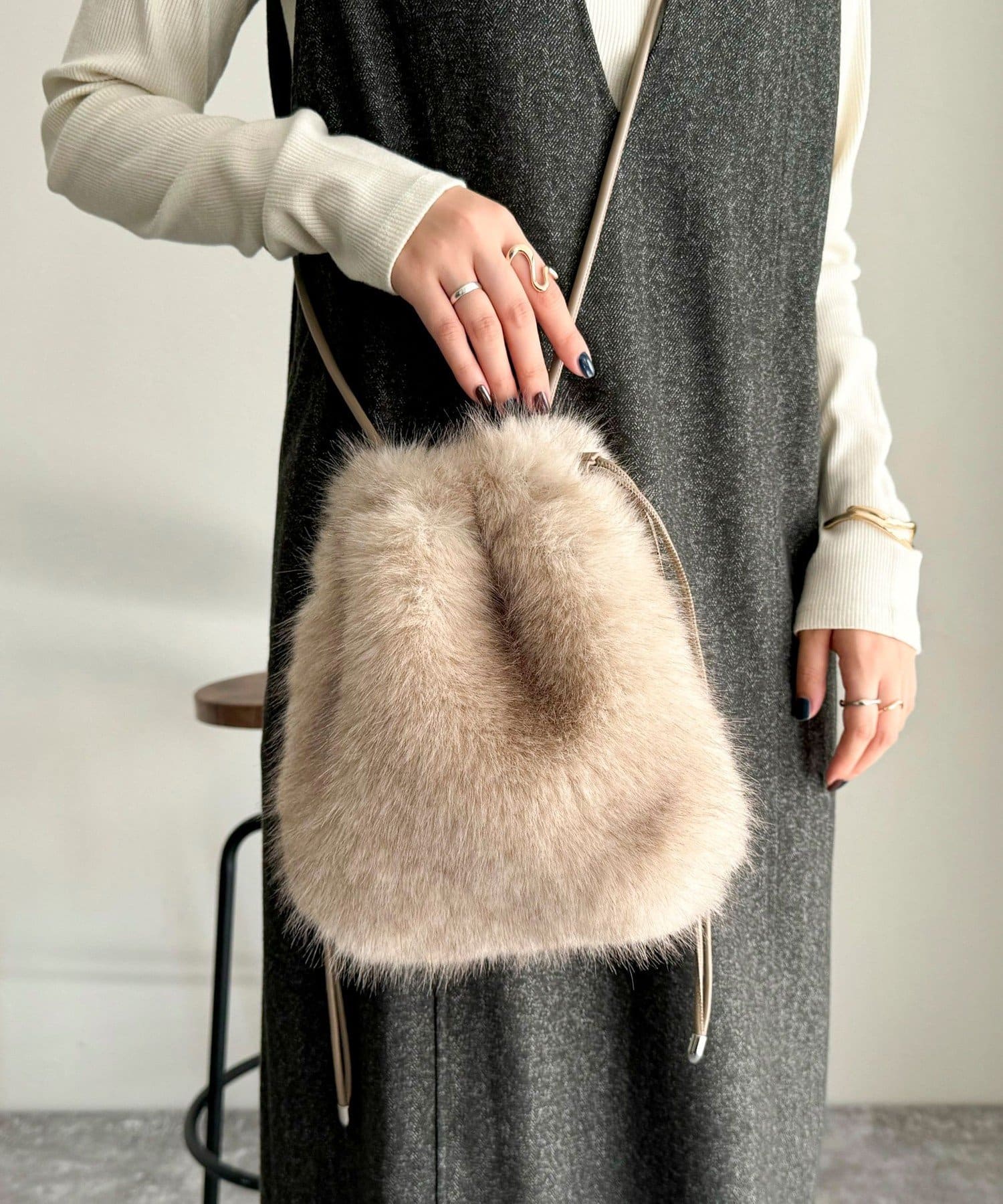 ・コーディネートにプラスするだけで秋冬のシーズンムード漂う巾着ショルダーバッグです
