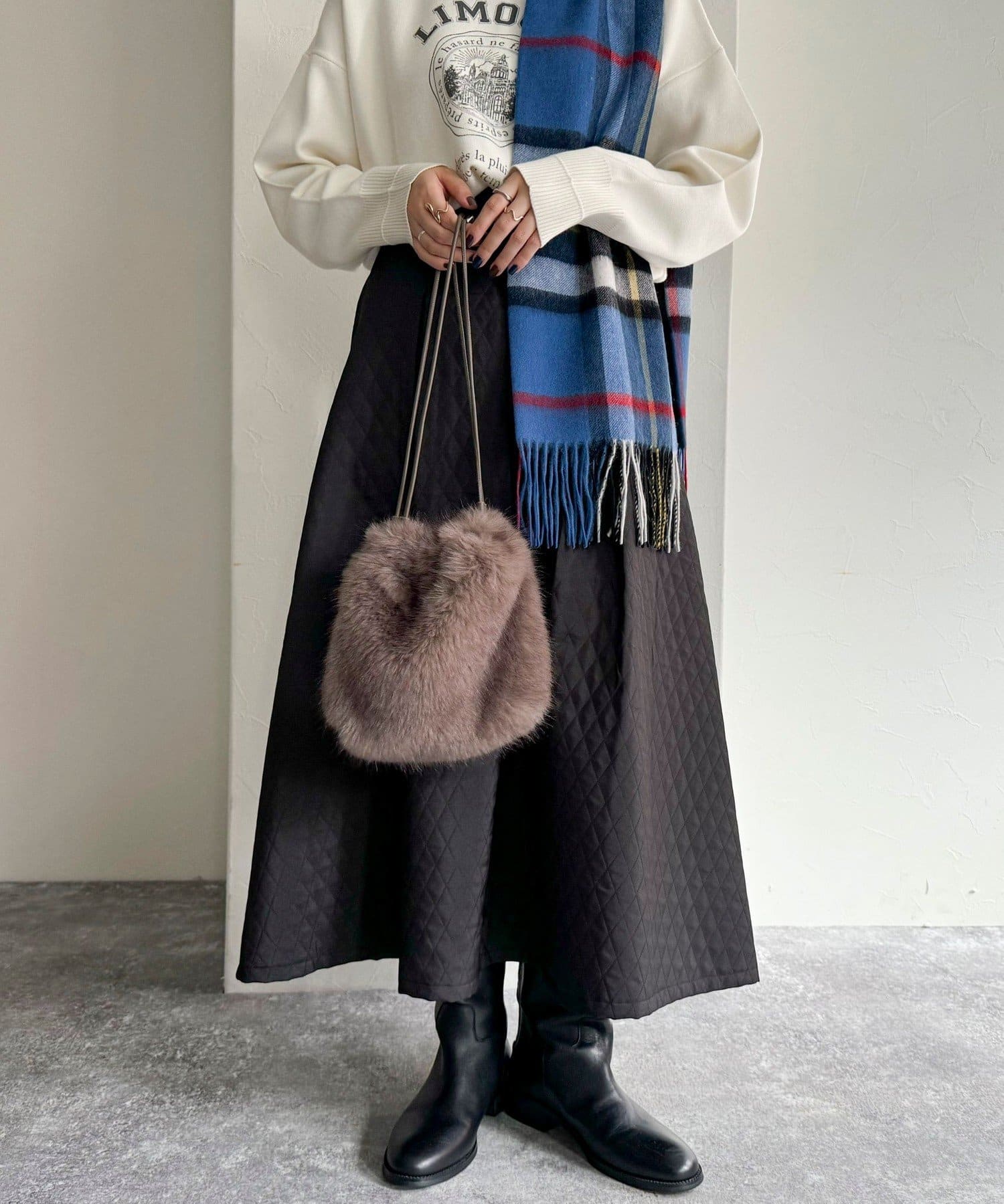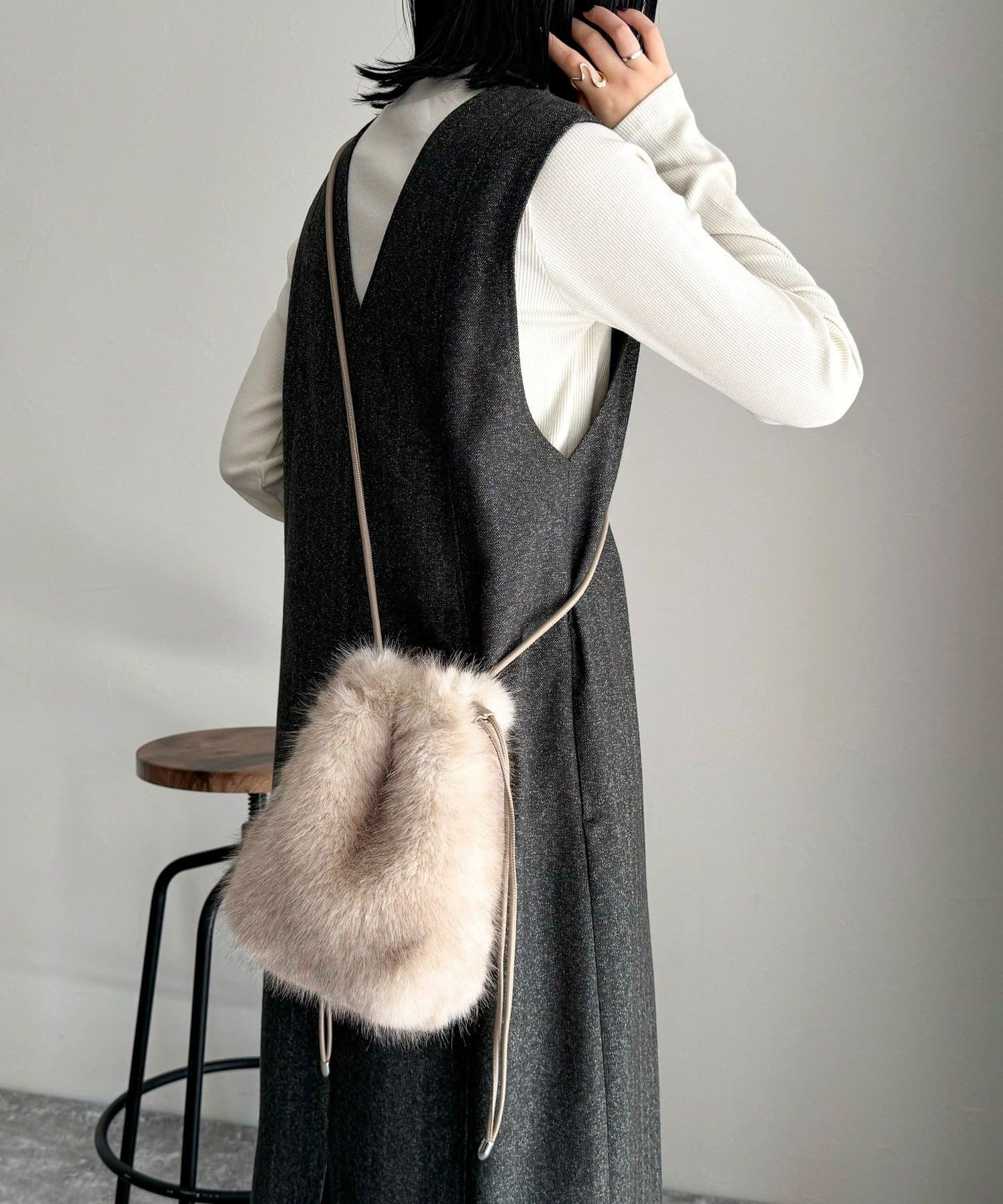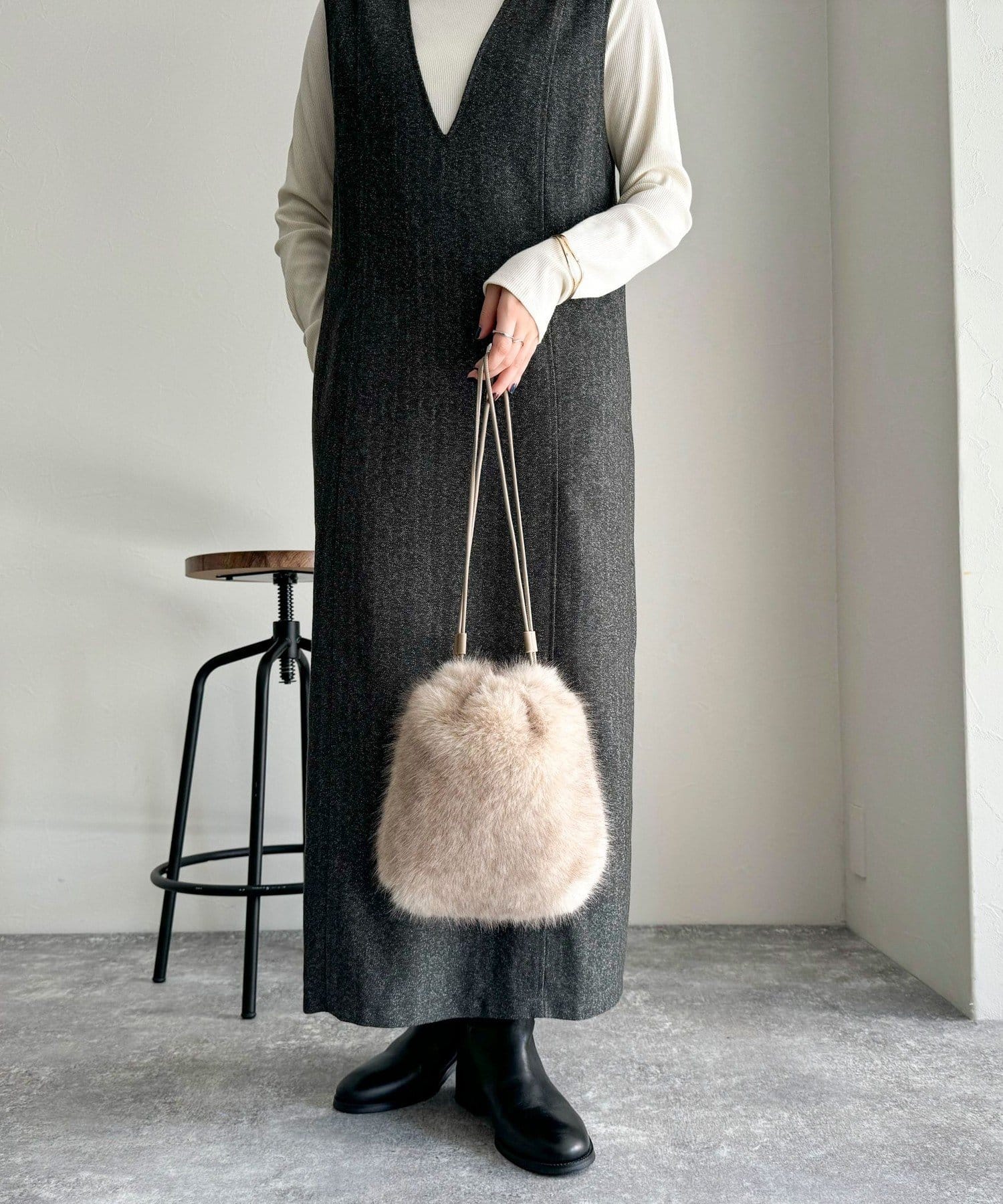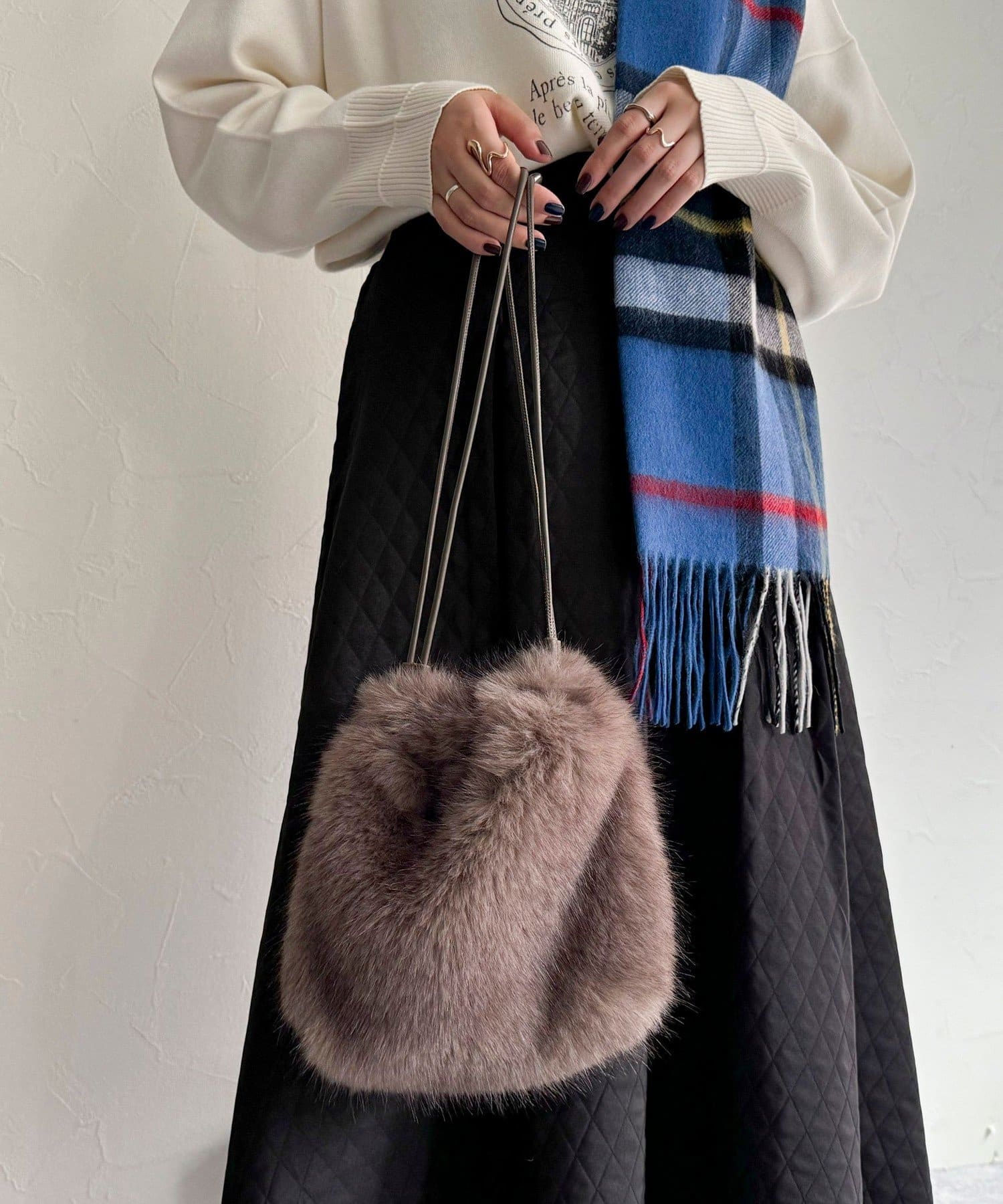 ・コーディネートにプラスするだけで秋冬のシーズンムード漂う巾着ショルダーバッグです