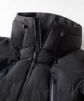 またフードをコンパクトに収納するだけでなく、雨などの悪天候下での着用も考慮しフードへの水たまりを防ぐパラフードシステムを採用。
