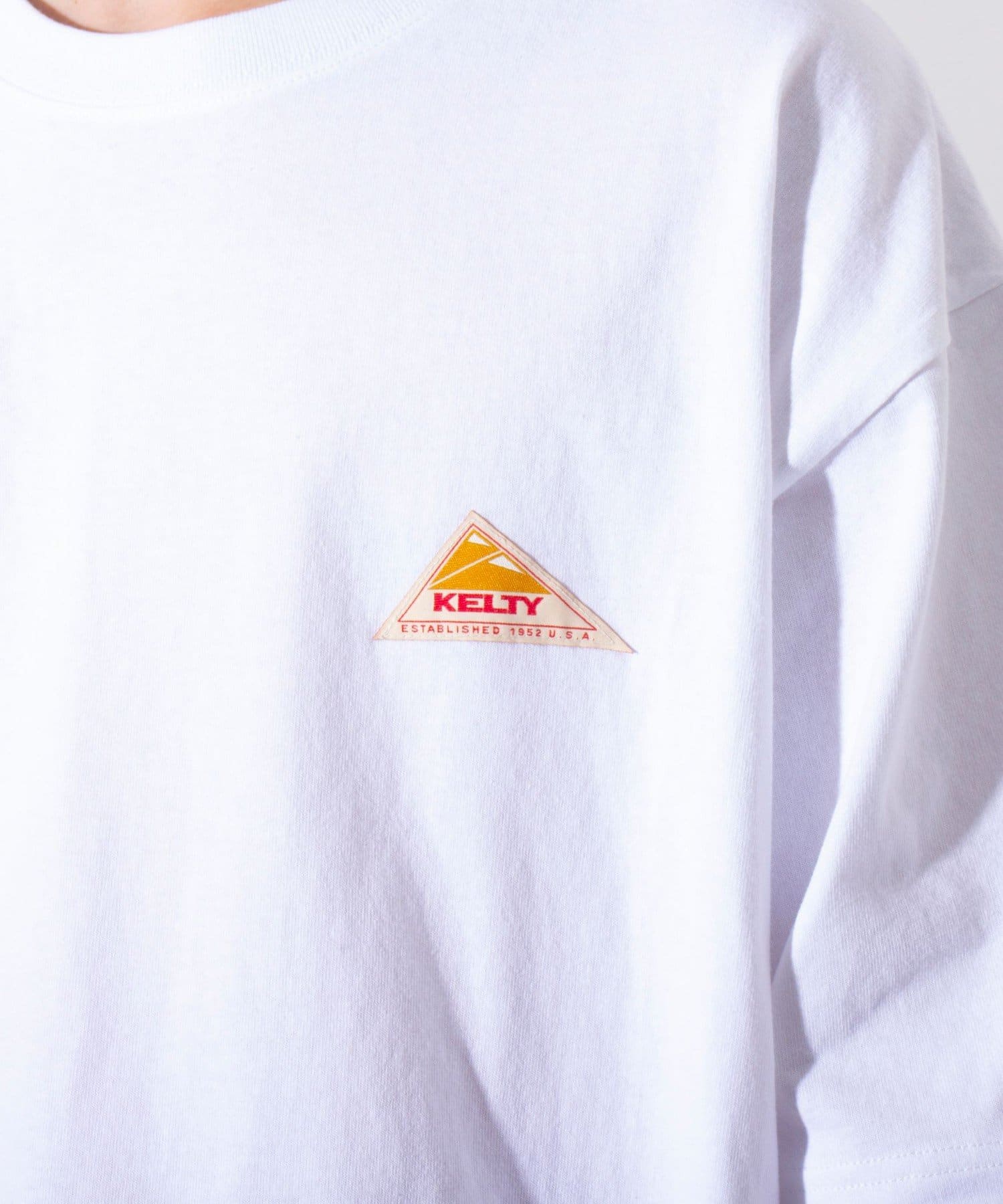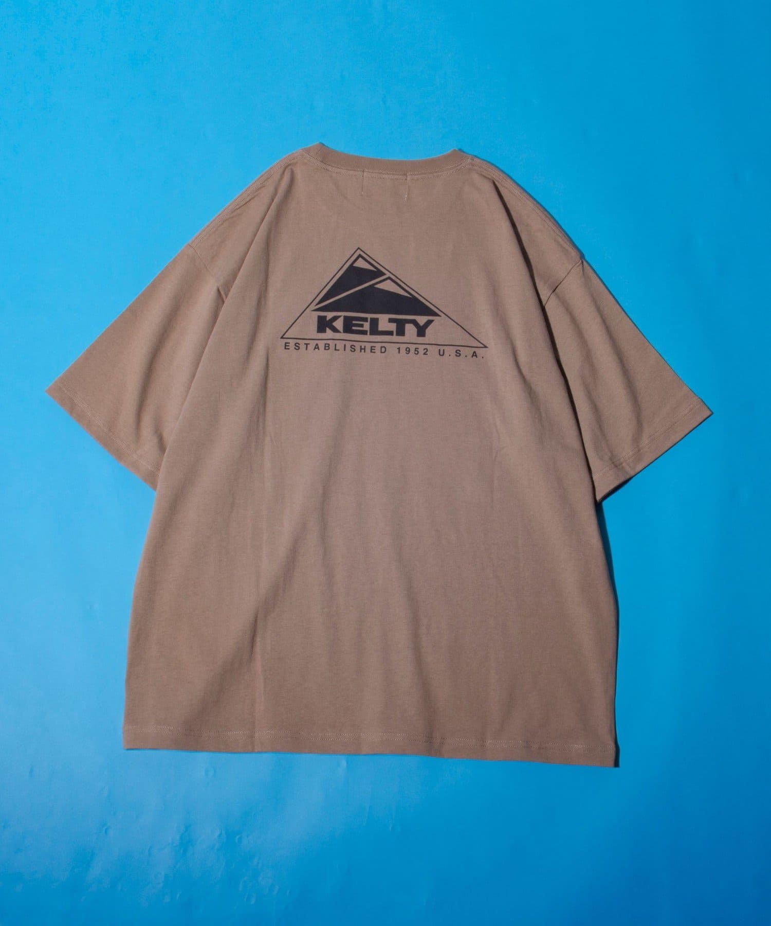 目を惹くKELTYらしいアウトドアモチーフのバックプリントロゴ、フロントはシンプルにクラシックロゴのワンポイントのデザイン。