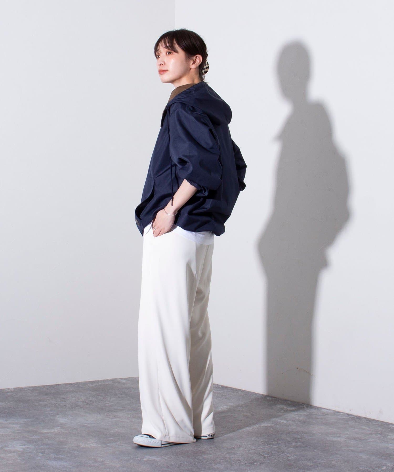 身幅にゆとりがあるので、ビッグシルエットのスウェットや厚手のサーマルの上から羽織ることも可能です。