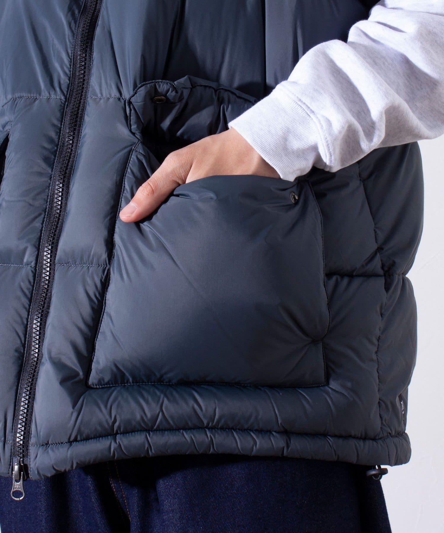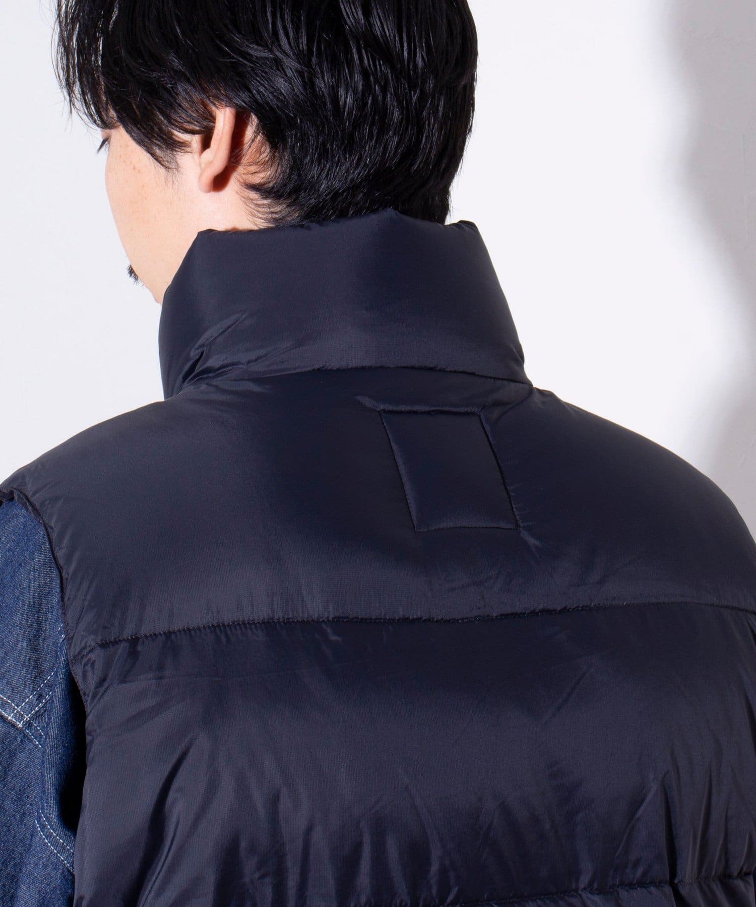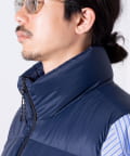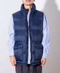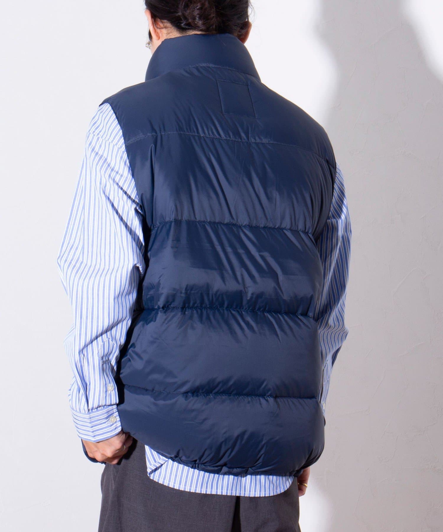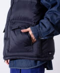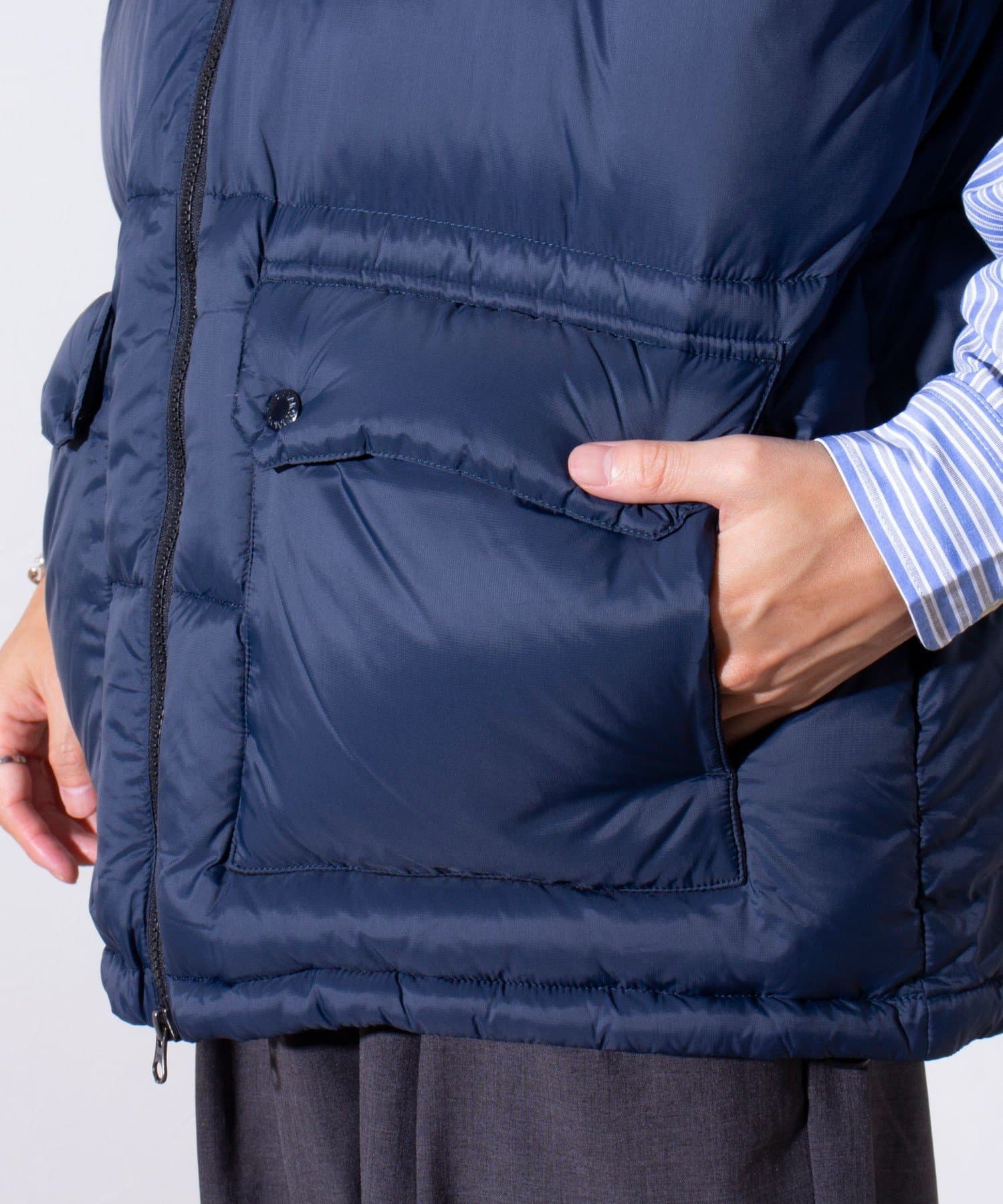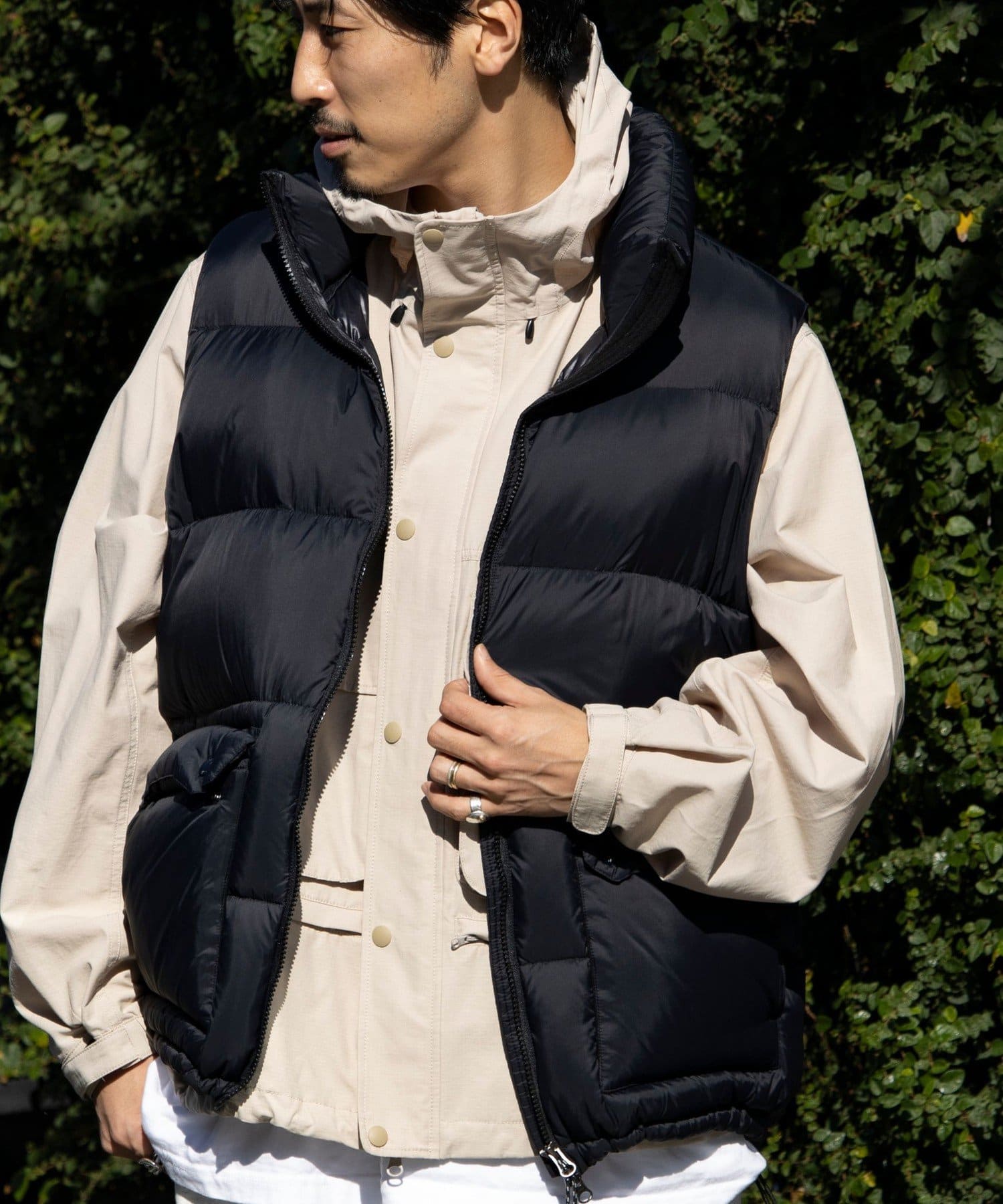 ダウンたっぷりで、ふんわり柔らかな質感と軽量さで楽な着心地の別注ダウンベスト。