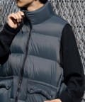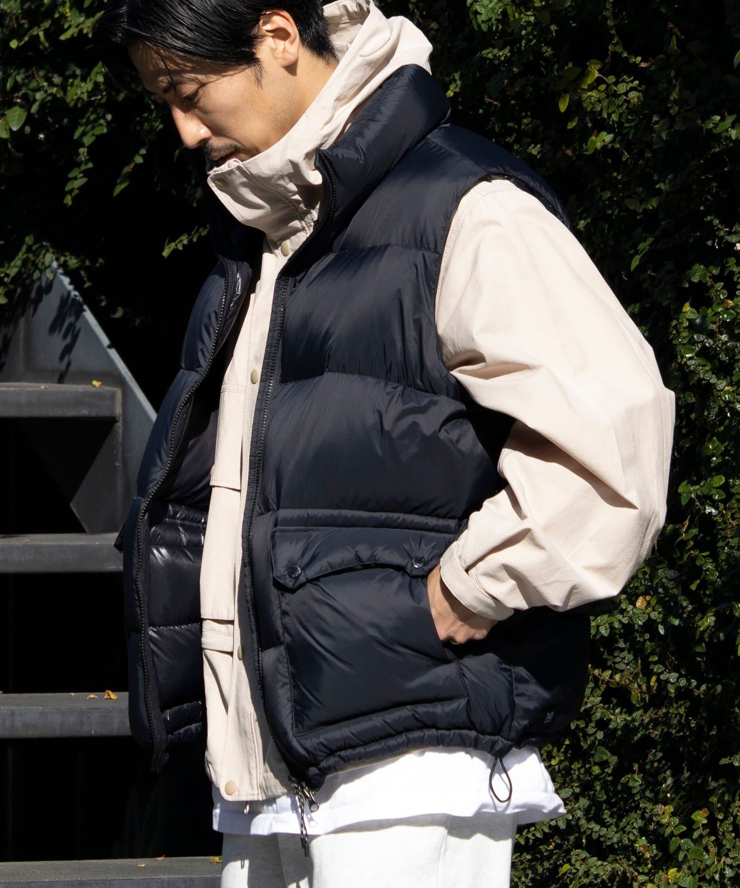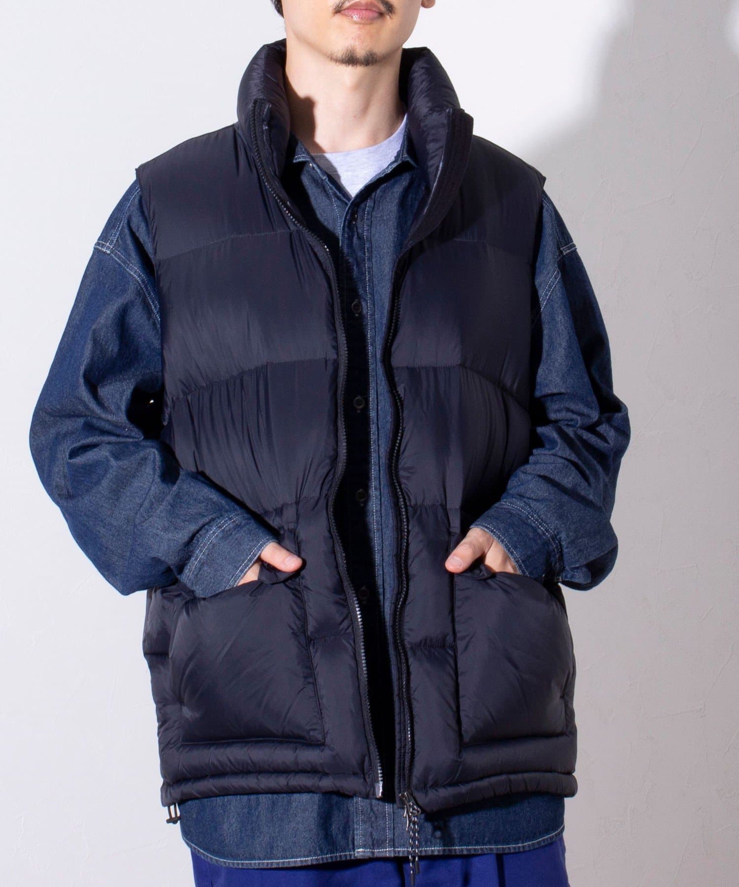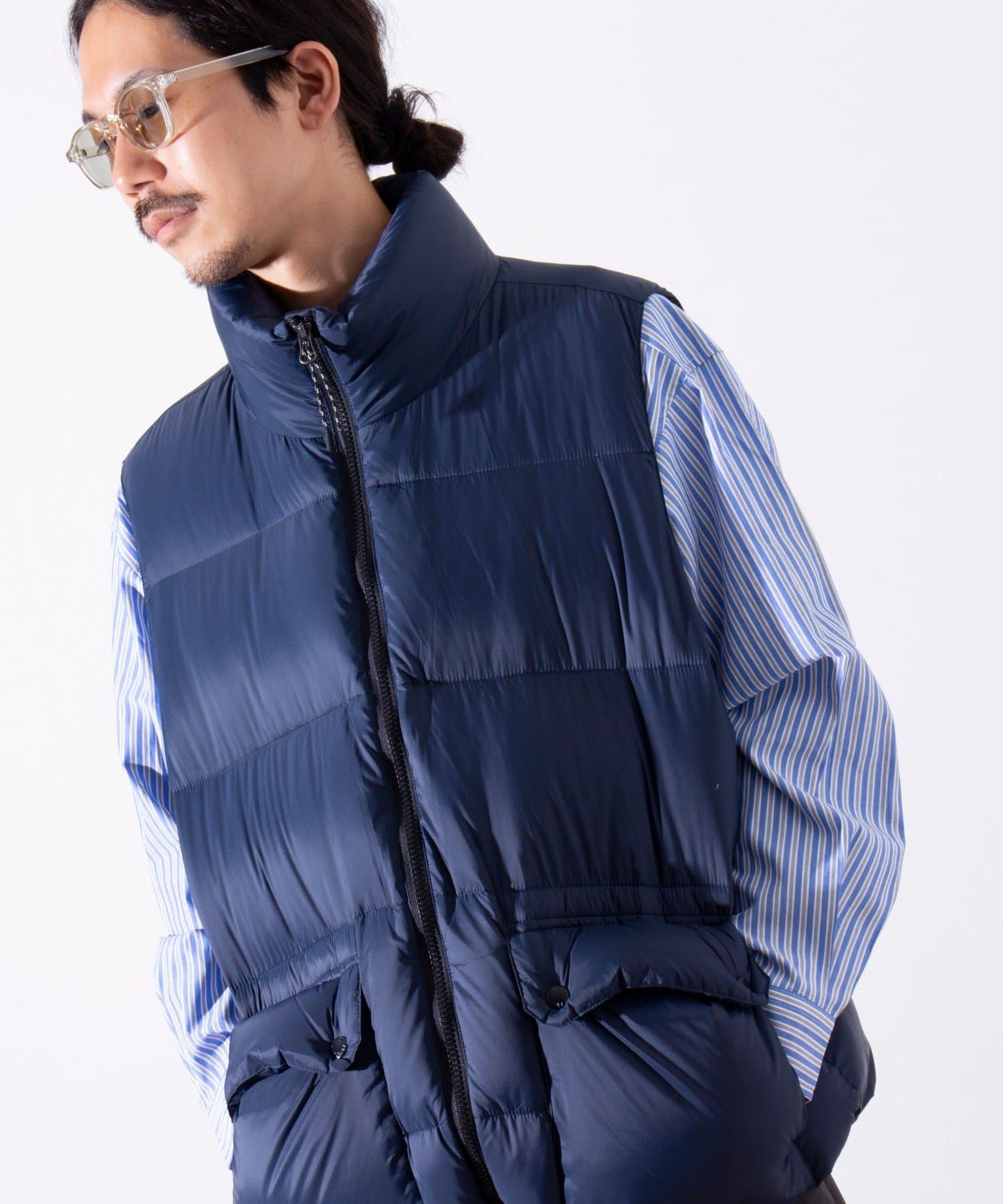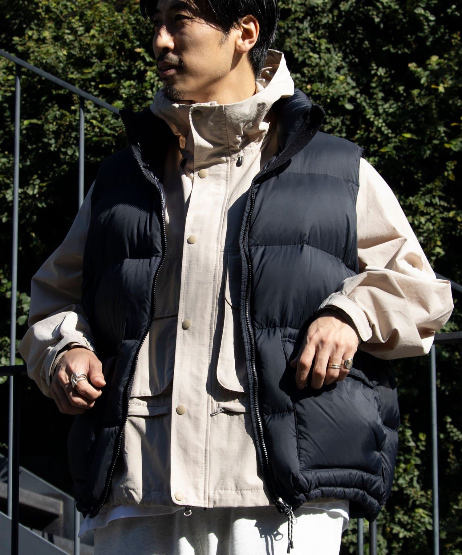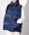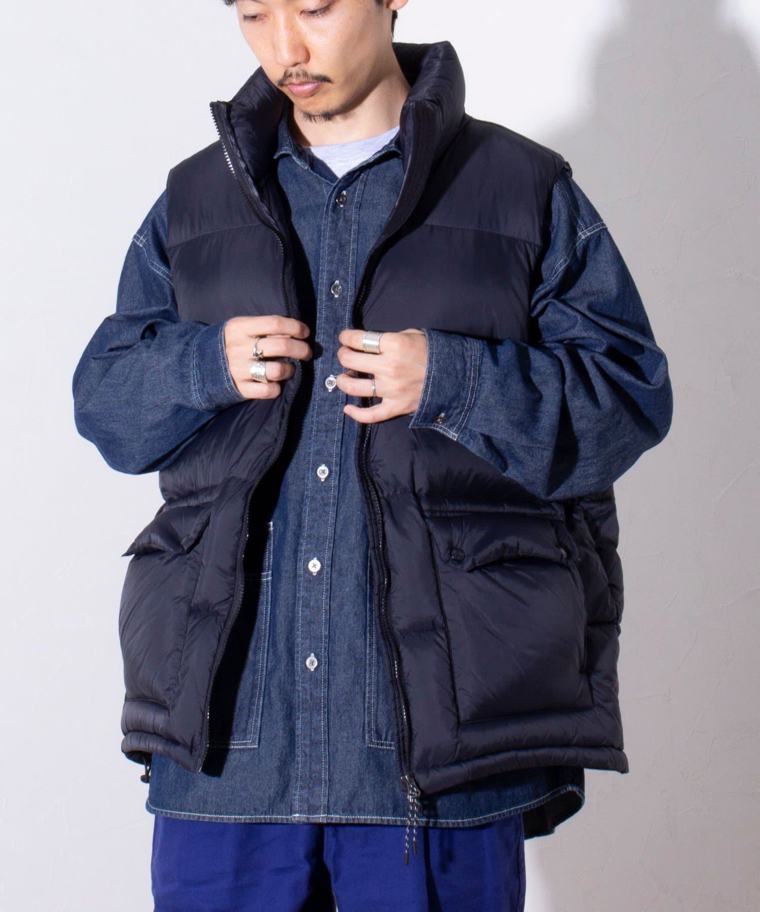 ダウンたっぷりで、ふんわり柔らかな質感と軽量さで楽な着心地の別注ダウンベスト。