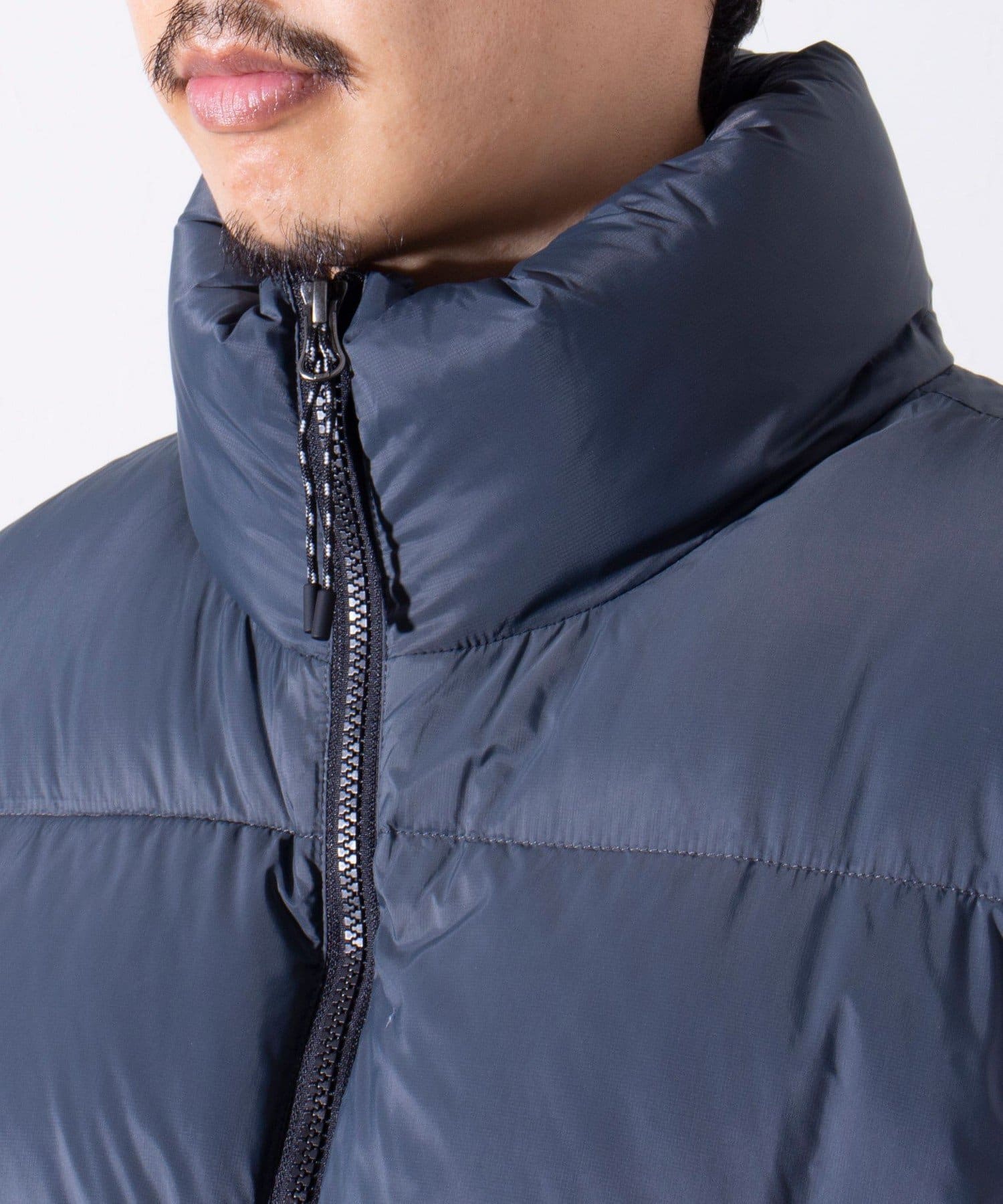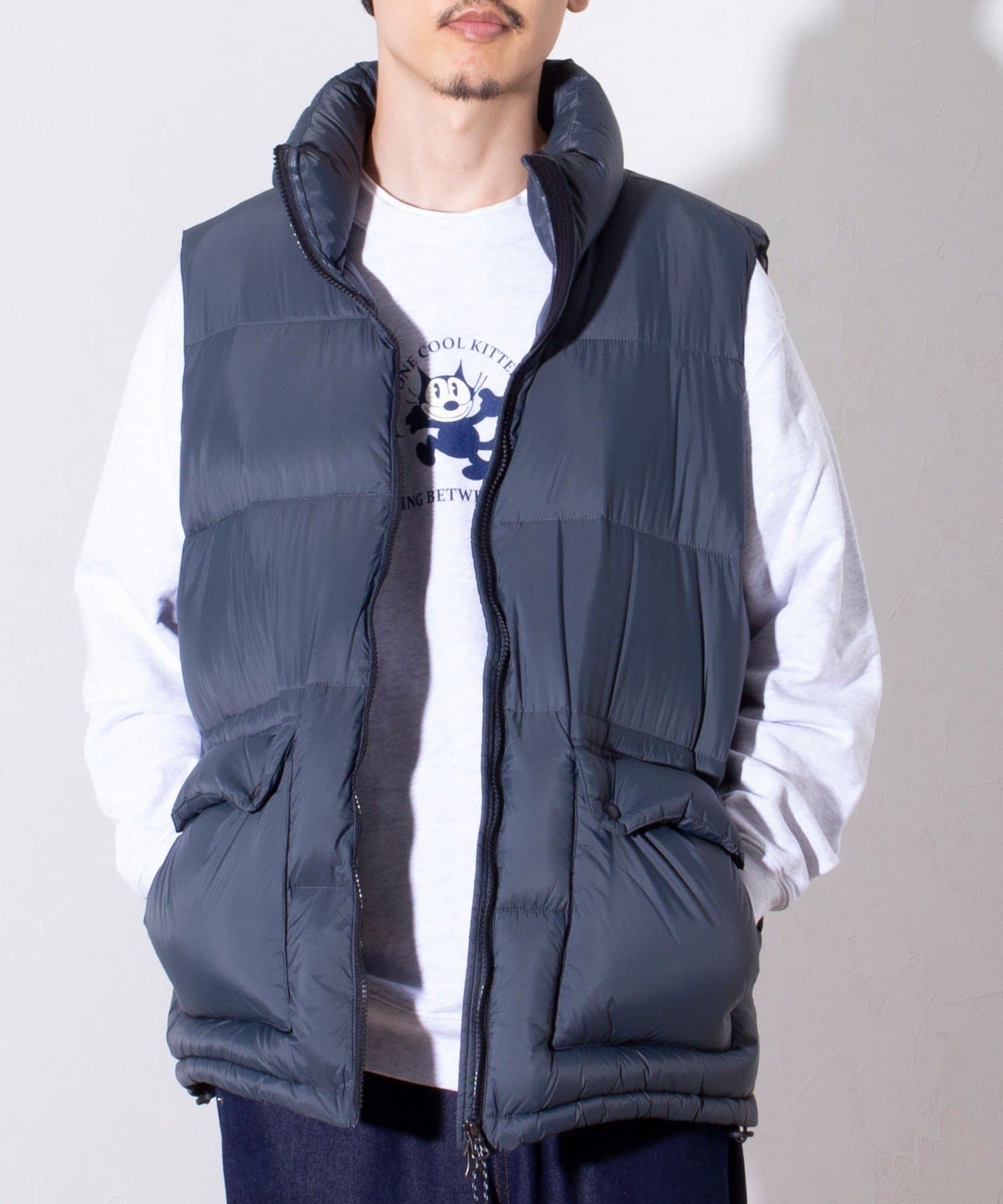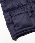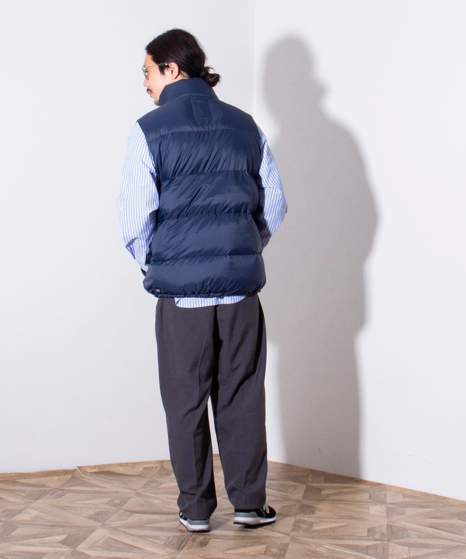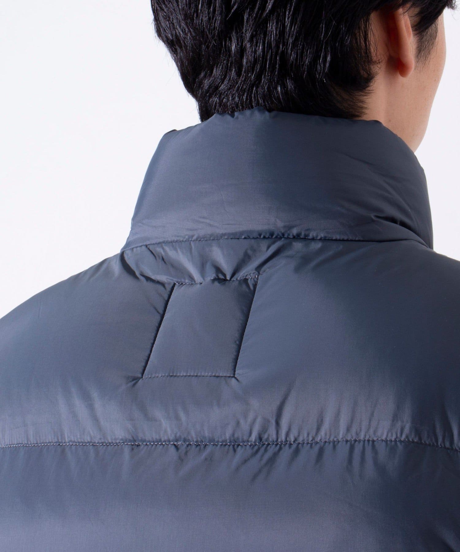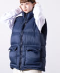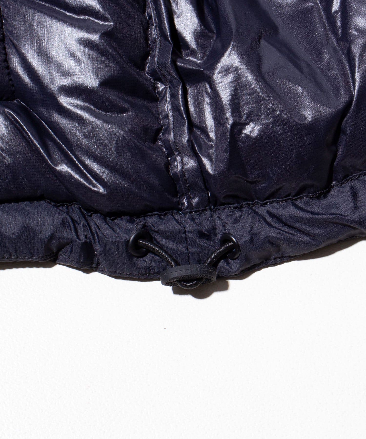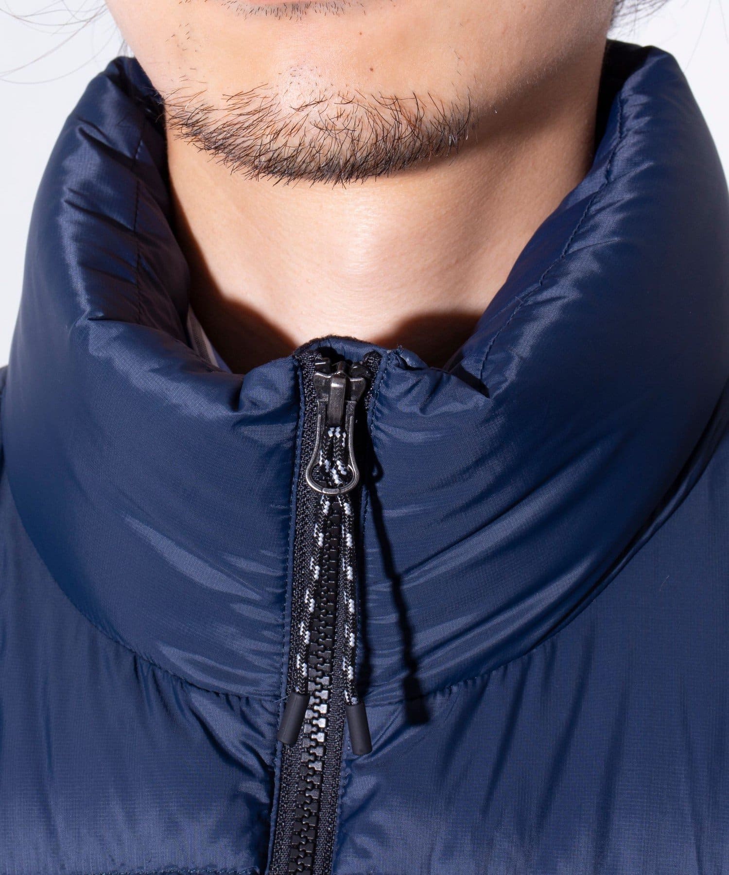 ダウンたっぷりで、ふんわり柔らかな質感と軽量さで楽な着心地の別注ダウンベスト。
