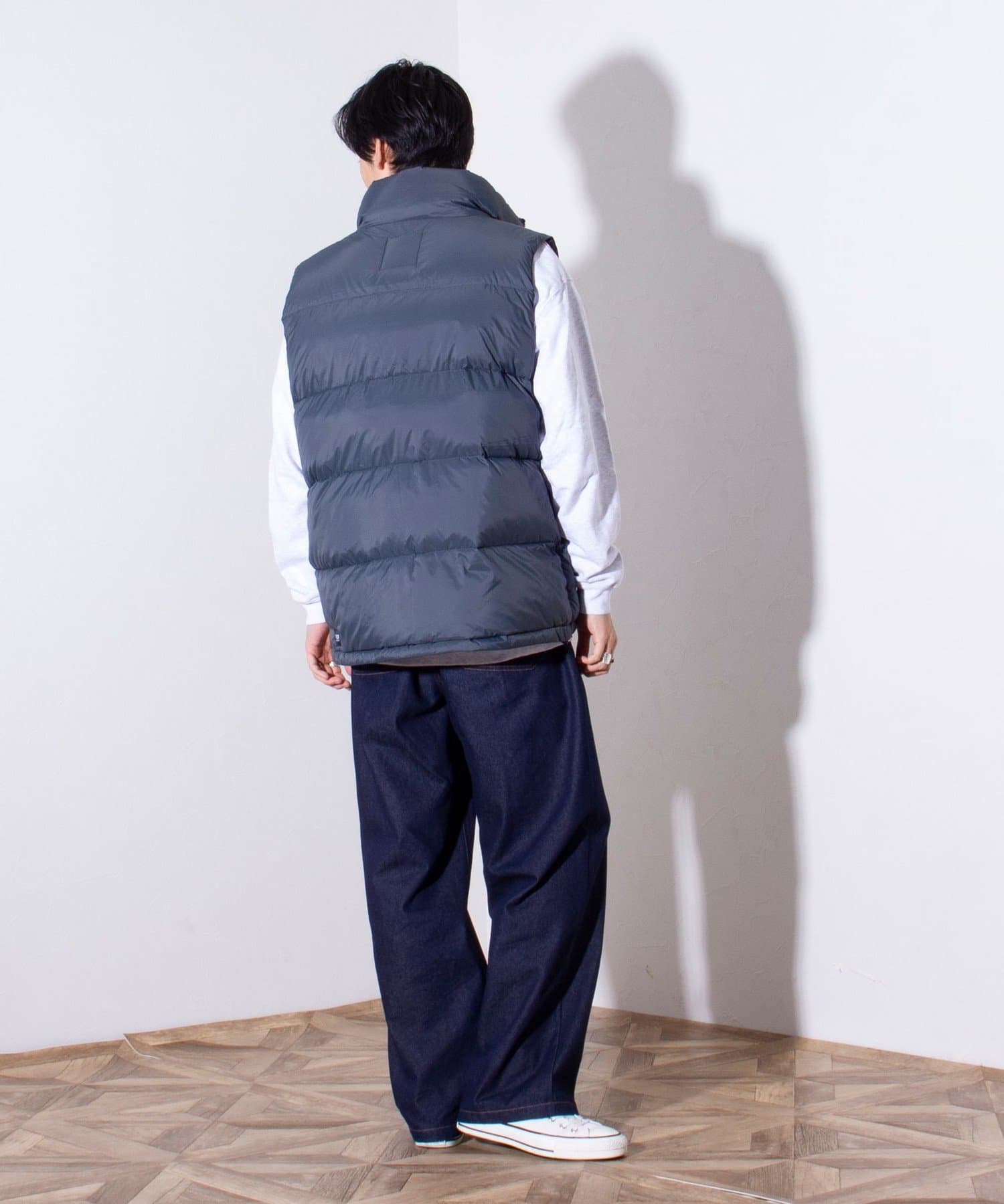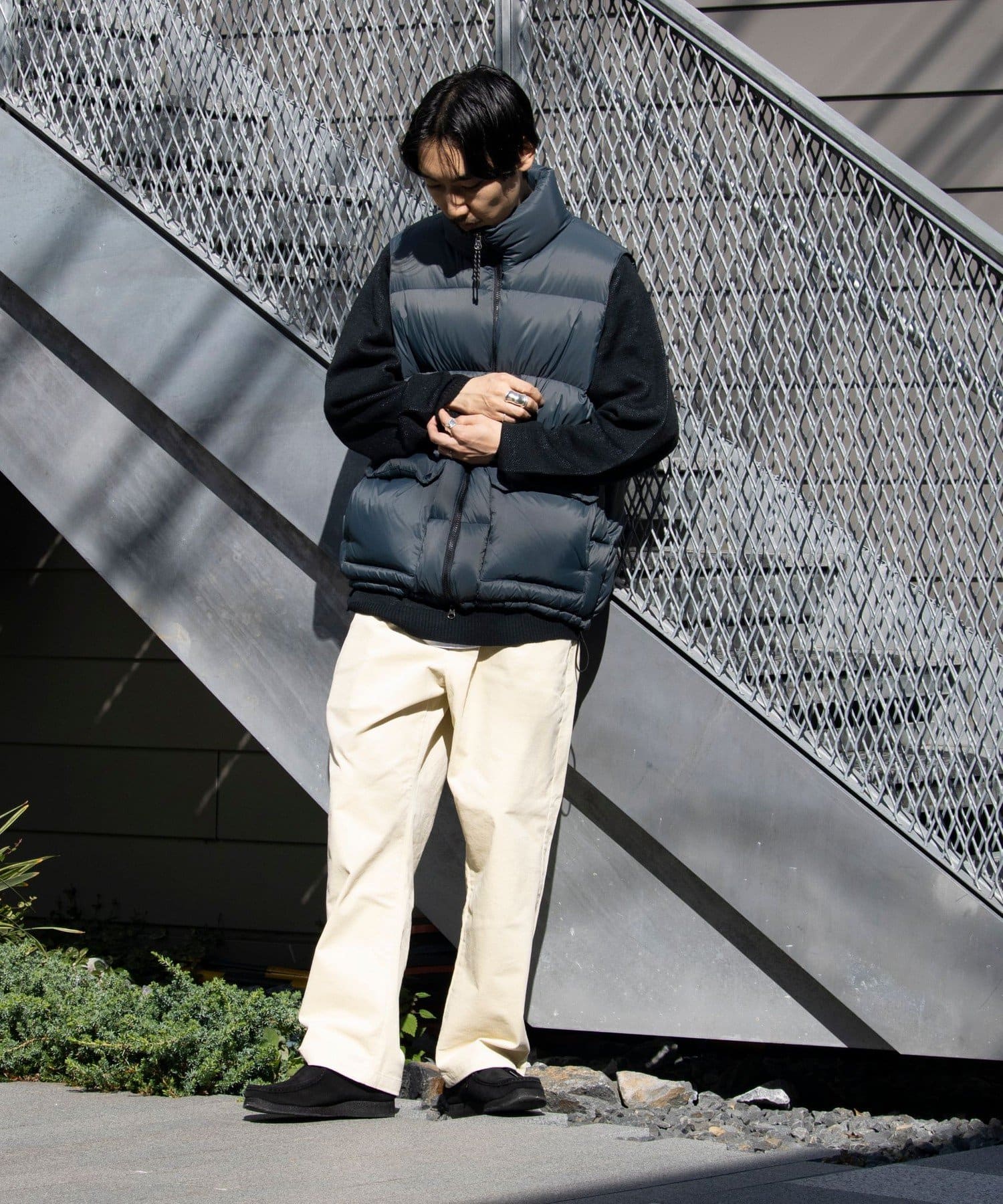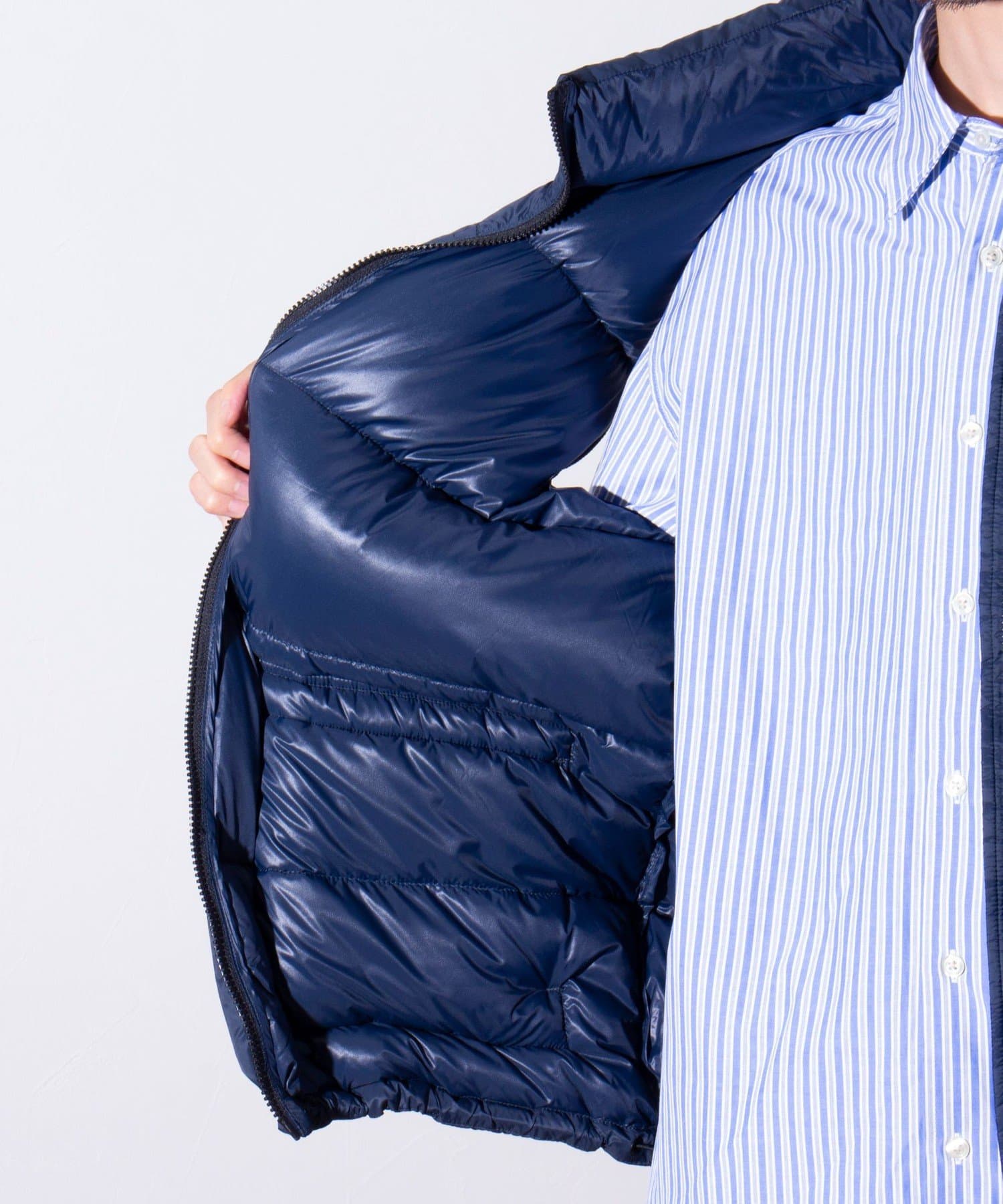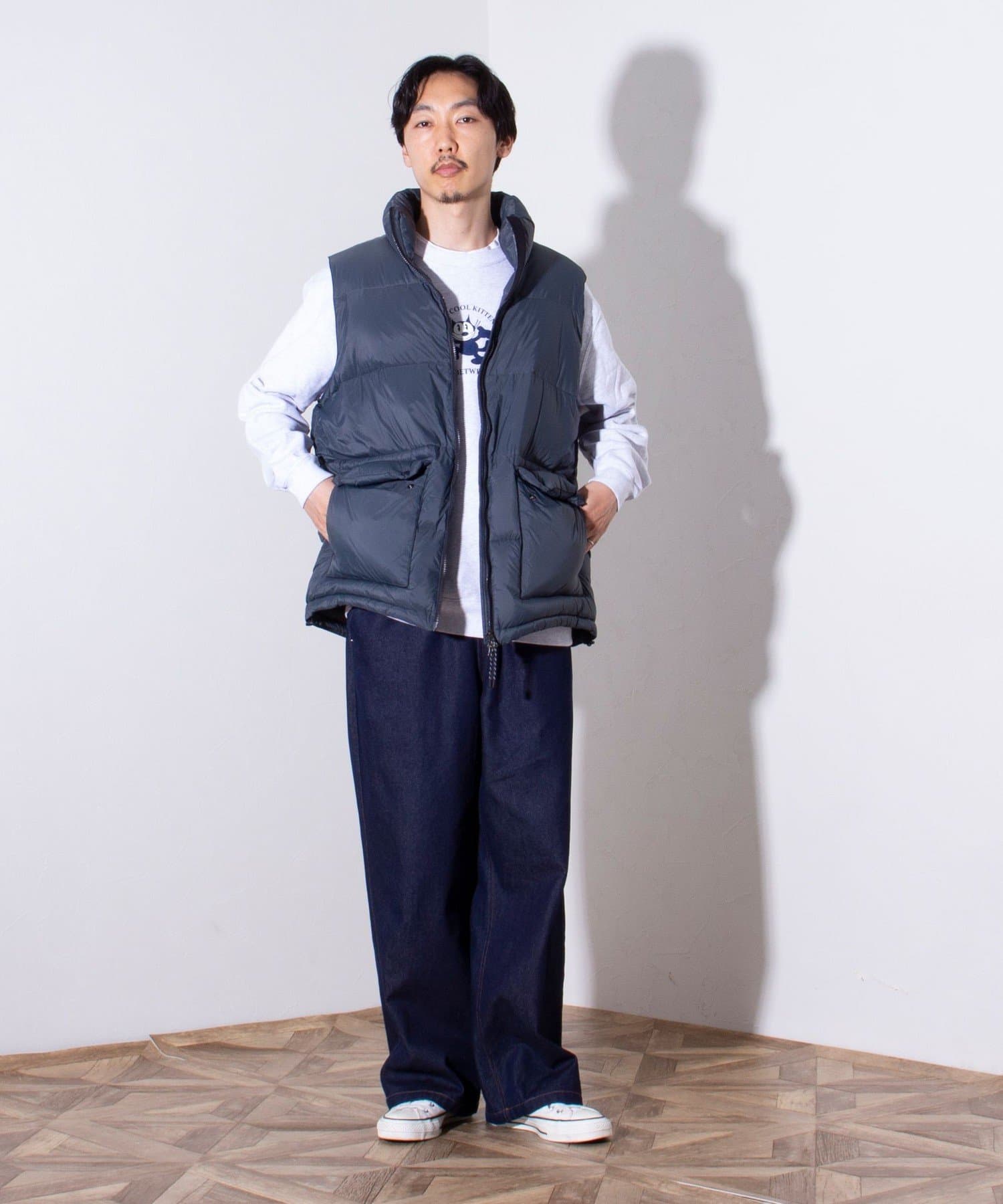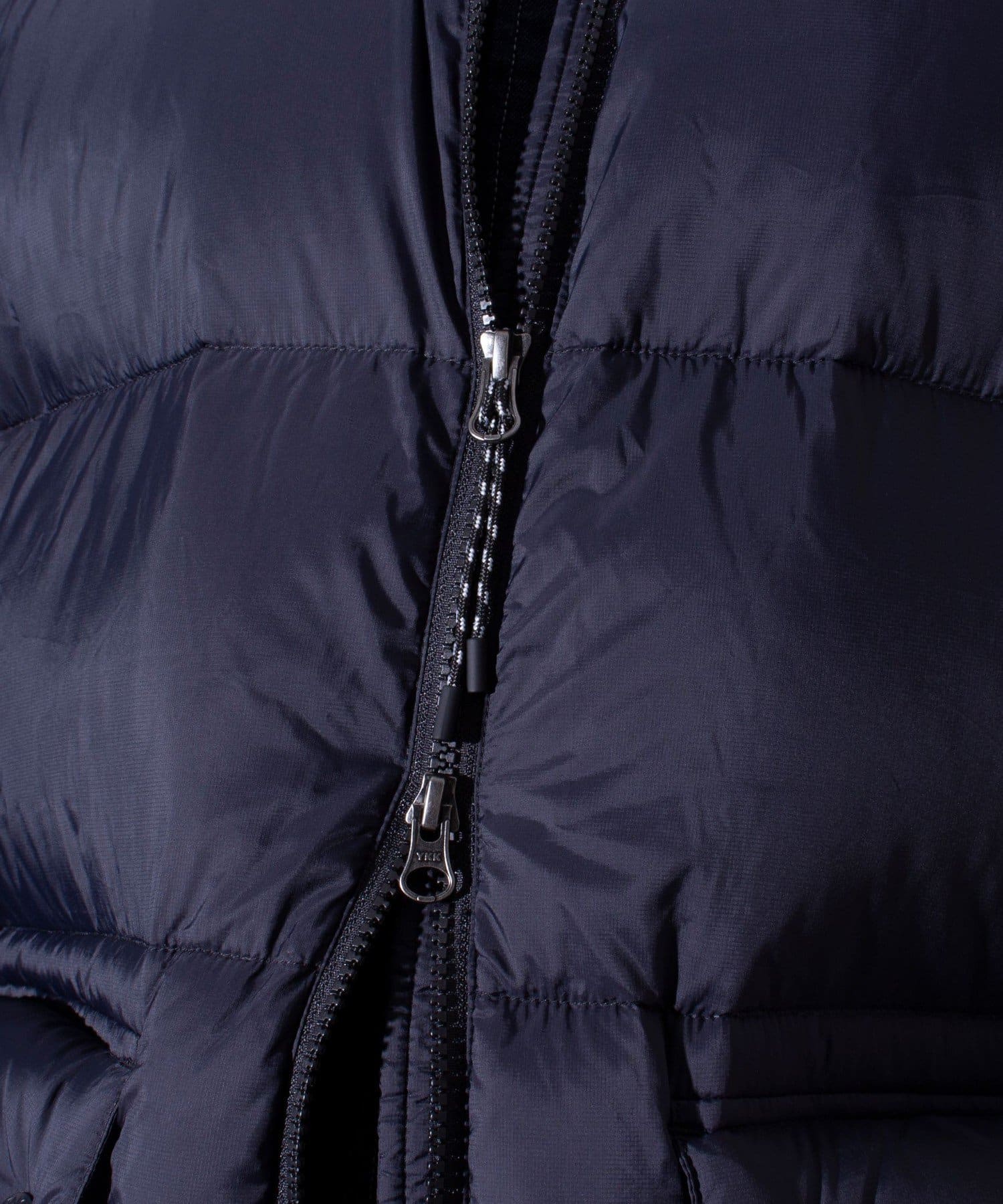 ダウンたっぷりで、ふんわり柔らかな質感と軽量さで楽な着心地の別注ダウンベスト。