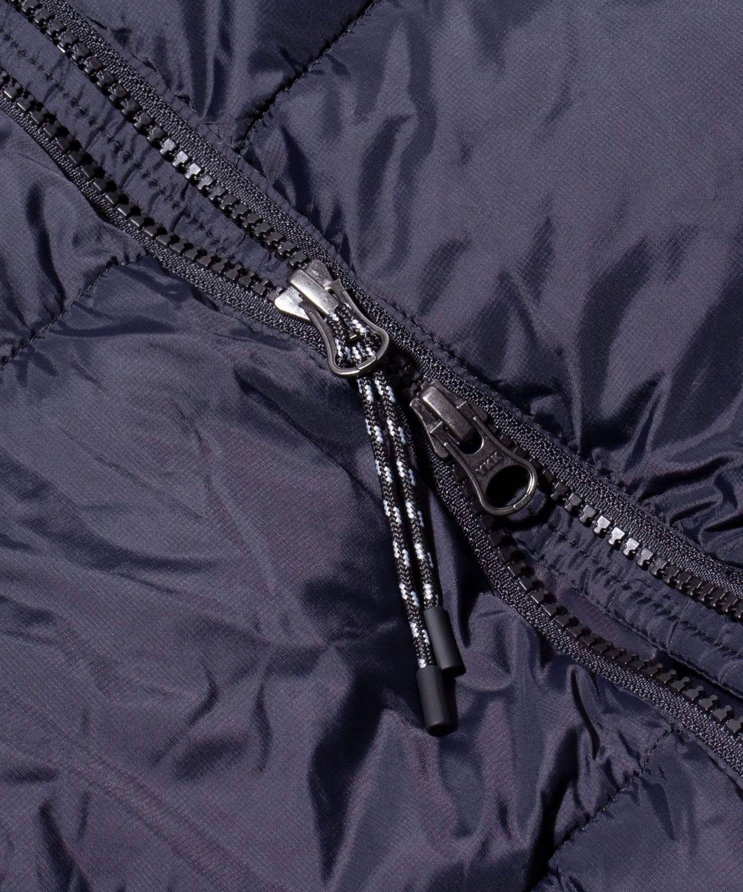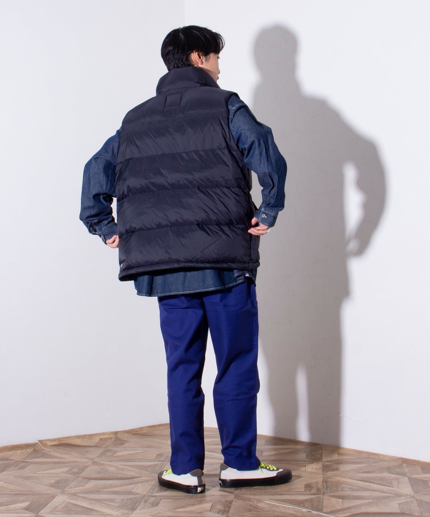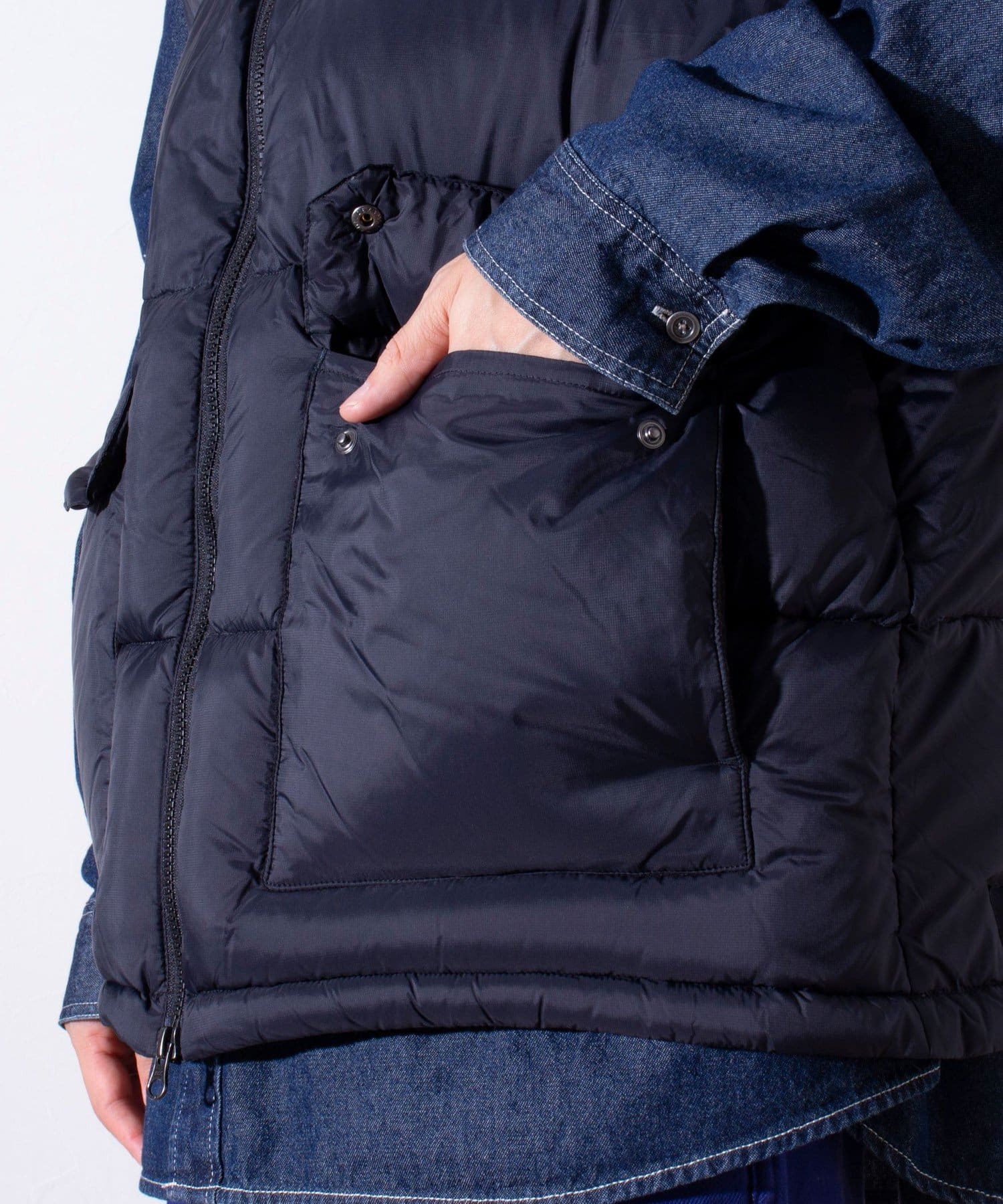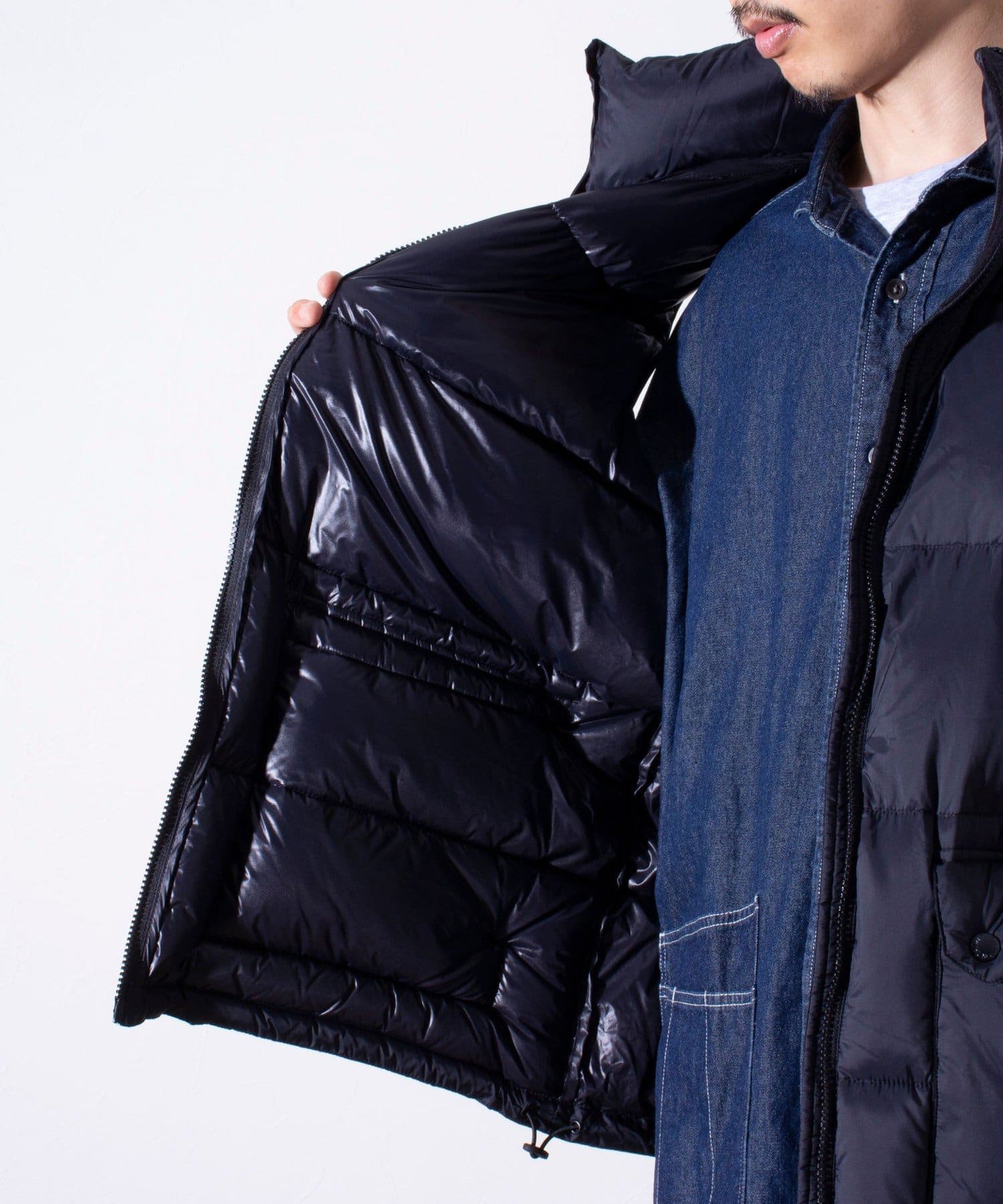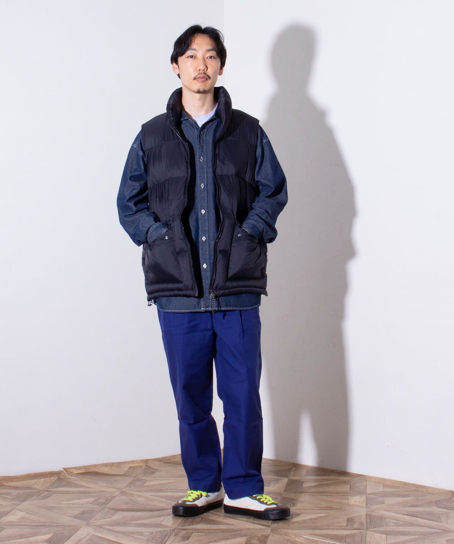 ダウンたっぷりで、ふんわり柔らかな質感と軽量さで楽な着心地の別注ダウンベスト。